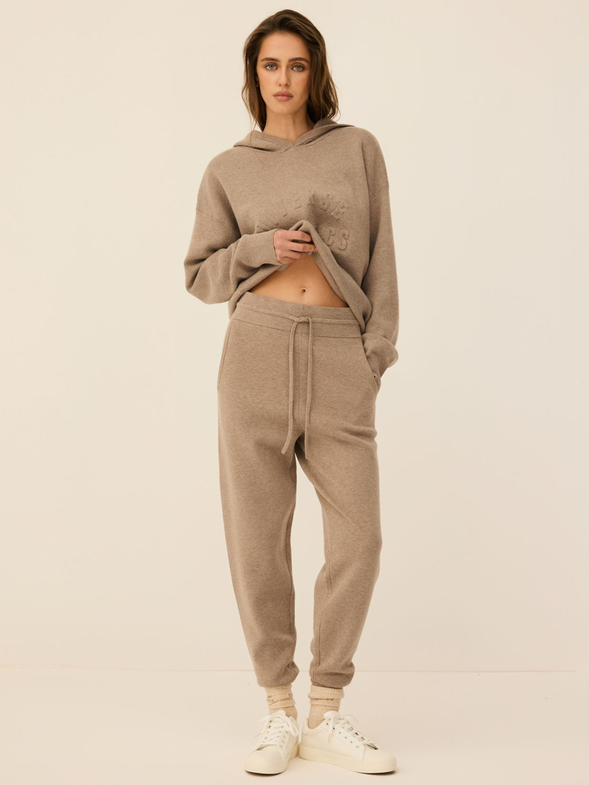 Женские спортивные брюки с высокой талией ATH JATUNI 255 / ID: 10047824 Классические женские спортивные брюки: - простой крой, - брючины с манжетами, - шнурок и резинка на талии, - высокая посадка, - боковые карманы, - изготовлены из свитерной ткани. Внешний состав: 50% вискоза 30% полиэстер 20% нейлон Уход: - стирка при максимум 30 °С - не отбеливать - не сушить в сушильной машине - гладить максимум при темп. 110 °С - не подвергать химчистке Размер: XS S М L Ширина талии: 33 35 37 39 Длина внутренней части штанины: 72 72 74 76 Ширина бедра: 29 30 31 32 Ширина нижней части штанины: 9 10 11 12