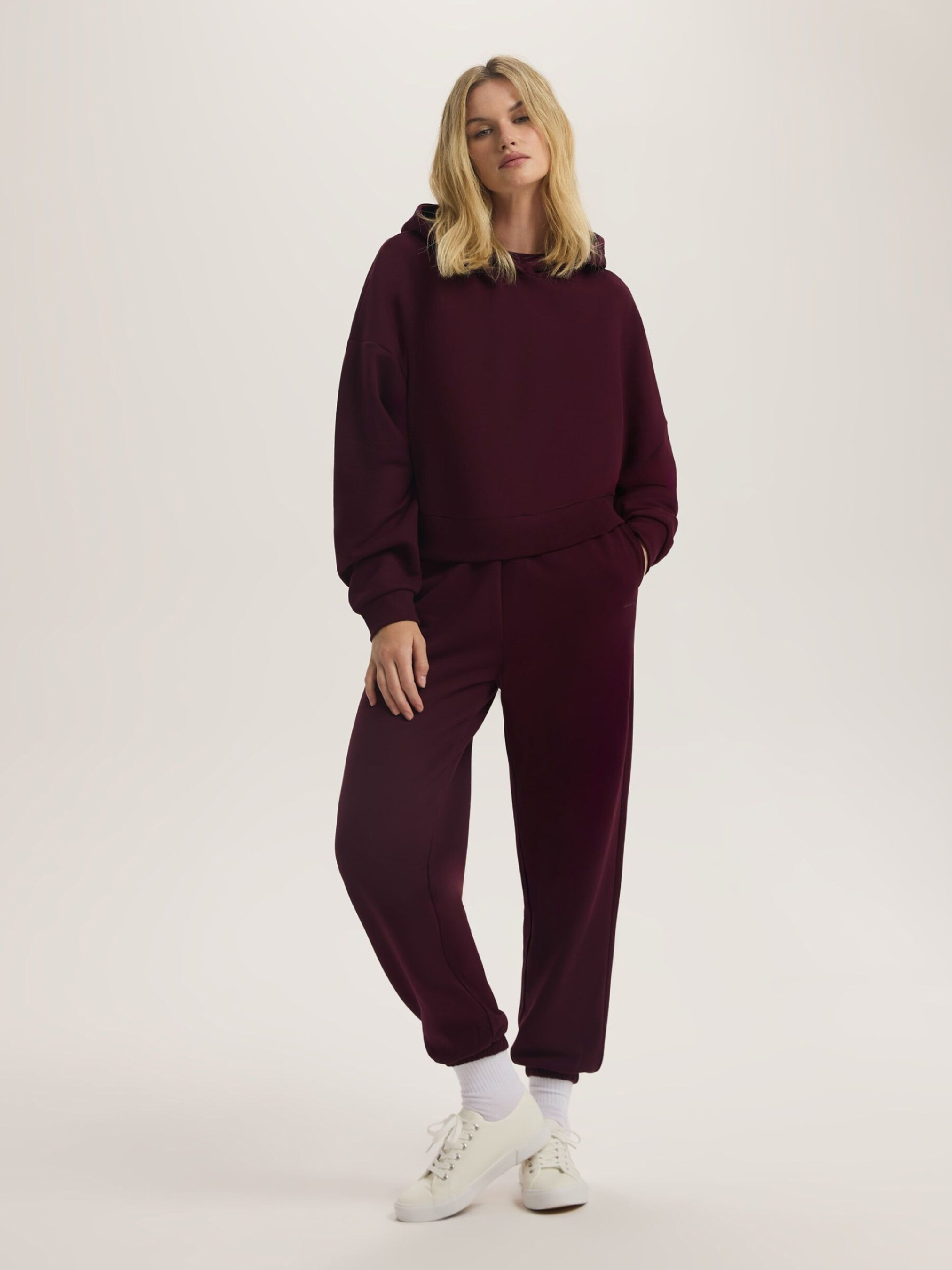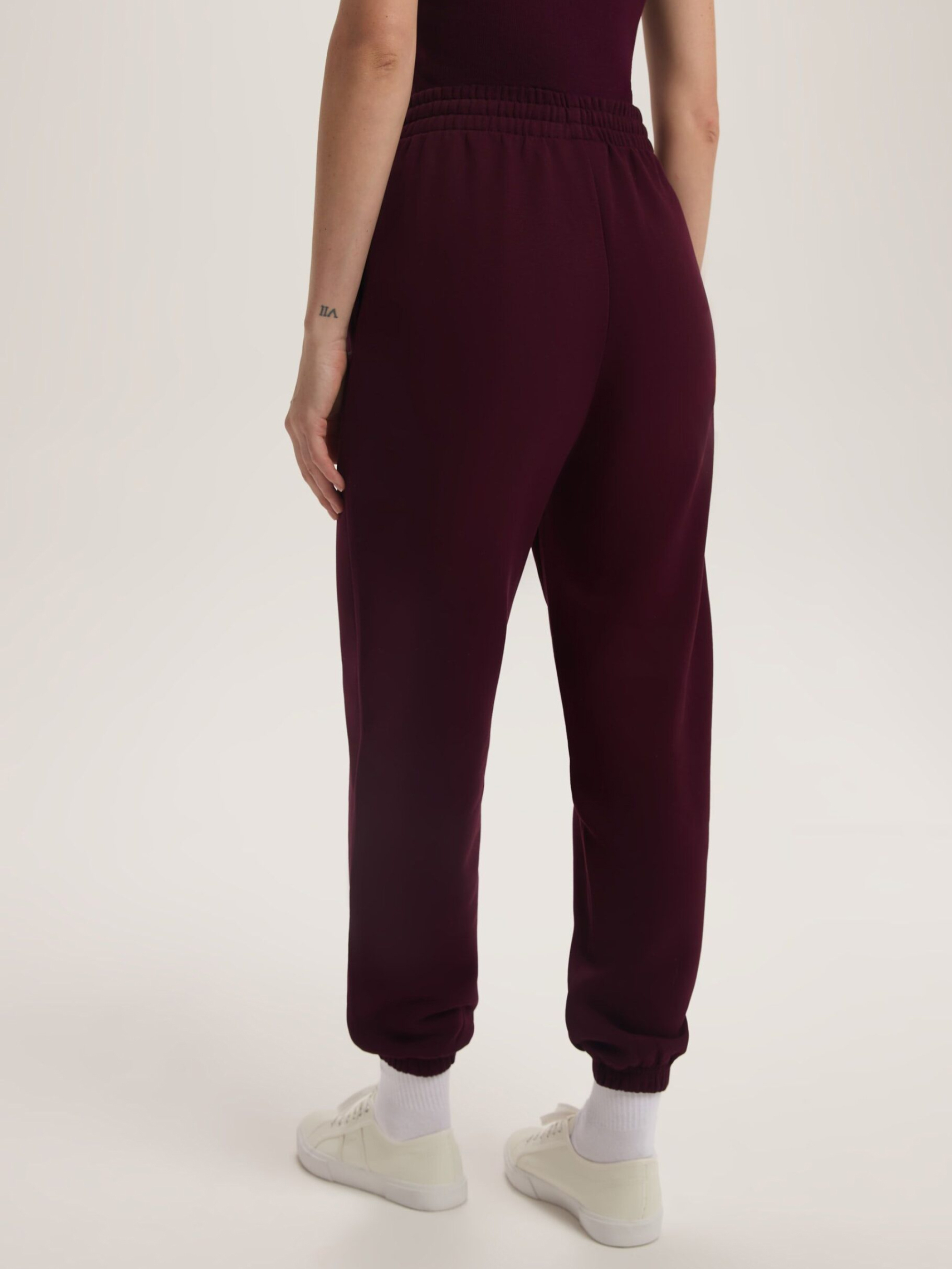 Женские свободные спортивные брюки BAGTER B / ID: 10047820 Рост модели: 180 см Размер товара: S Женские спортивные брюки: - свободного кроя, - с карманами, - дополнительная регулировка обхвата с помощью шнурка, - штанины обработаны резинкой, - изготовлены из плотного хлопкового трикотажа с добавлением хлопка, - доступны в бордовом цвете, - создают комплект с худи FURRE B того же цвета. Внешний состав: 60% хлопок 40% полиэстер Уход: - стирка при максимум 30 °С - не отбеливать - не сушить в сушильной машине - гладить максимум при темп. 150 °С - не подвергать химчистке Размер: XS S М L Ширина талии: 34 36 38 40 Длина внутренней части штанины: 71,5 71,5 73,5 75,5 Ширина бедра: 33 34 35 36 Ширина нижней части штанины: 11 12 13 14