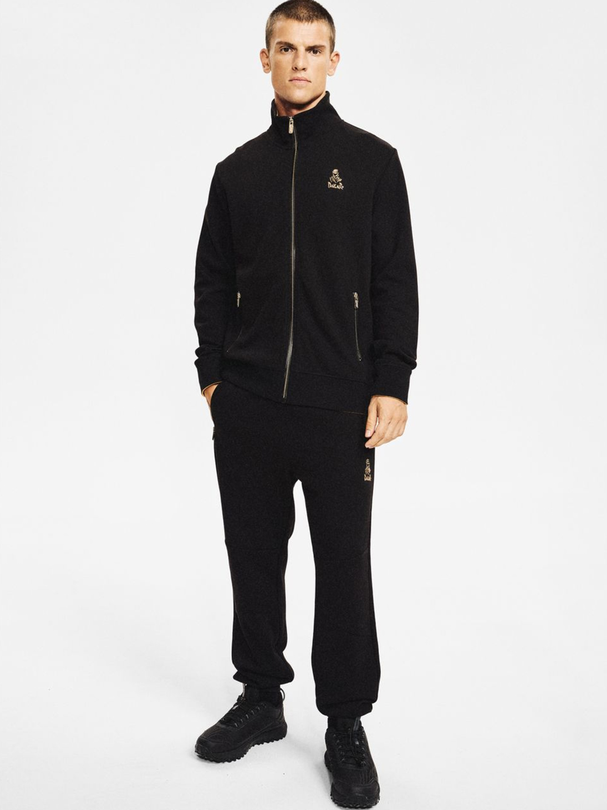 Спортивные штаны DKR VIP SP 05 / ID: 10048142 - из линии DAKAR VIP - классический крой с немного зауженными штанинами, - два боковых кармана на молниях, - дополнительный карман сзади, - золотой декоративный принт с логотипом на передней и задней части штанин, - золотые детали молний. Внешний состав 80% хлопок 20% полиэстер Уход: - стирка при максимум 30 °С - не отбеливать - не сушить в сушильной машине - гладить максимум при темп. 150 °С - не подвергать химчистке Размер: S М L XL XXL XXXL Ширина талии: 37,5 40,5 43,5 46,5 49,5 52,5 Длина внутренней части штанины: 70 72 73 75 75 75 Ширина бедра: 30.2 31.6 33 34,4 35,8 37.2 Ширина нижней части штанины: 10.5 10.5 11.5 12.9 14.3 15.7