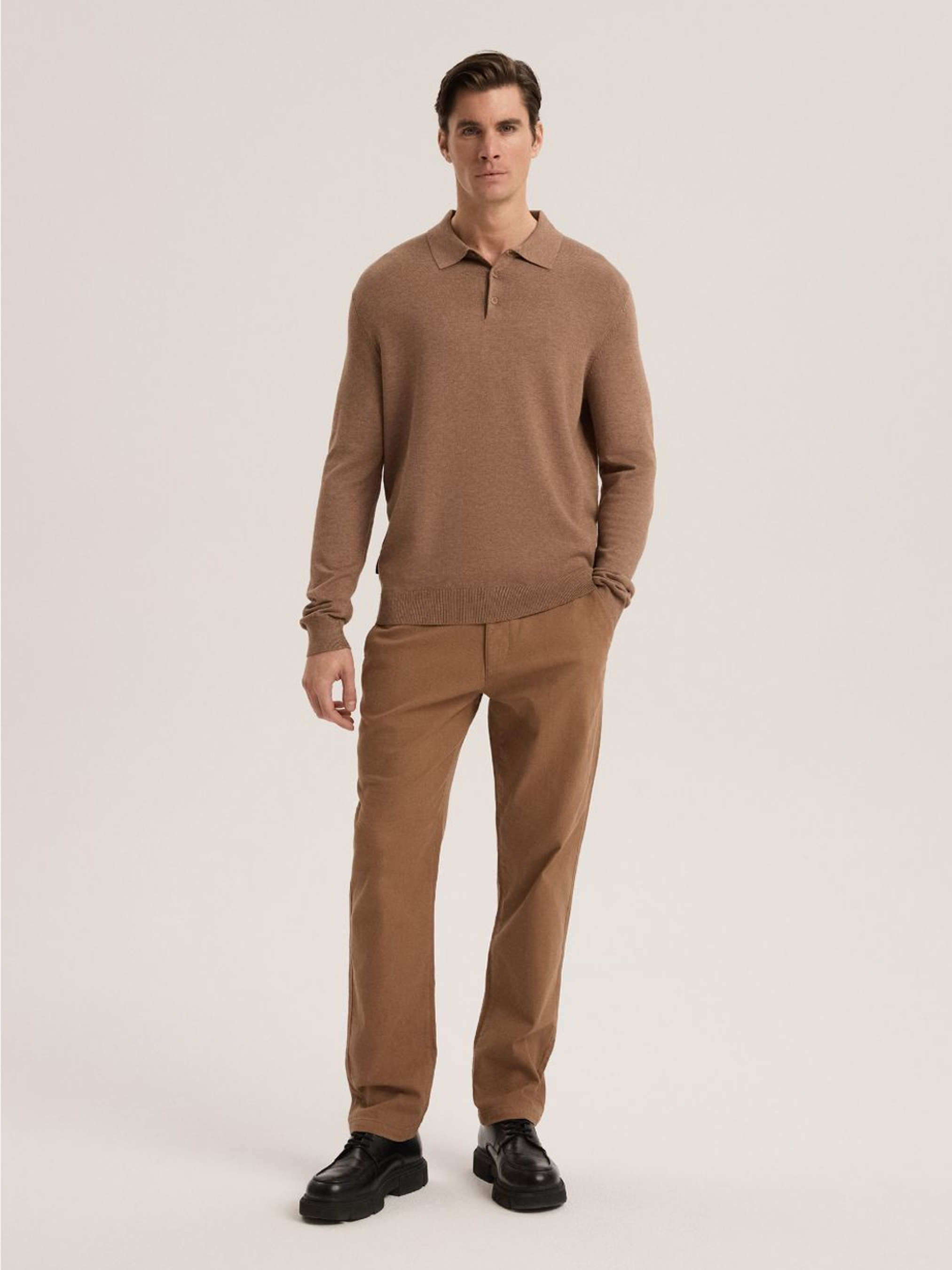 Брюки PREMSO 256 / ID: 10048082 Chino fit Мужские тканевые брюки: - приталенный крой, - два наклонных боковых кармана, - два планочных кармана сзади, - декоративная контрастная лента на талии, - застегиваются на молнию и пуговицу. Внешний состав 98% хлопок 2% эластан Уход: - стирка при максимум 30 °С - не отбеливать - не сушить в сушильной машине - гладить максимум при темп. 150 °С - не подвергать химчистке Размер: 31 32 33 34 36 Ширина талии: 43 44,5 46 47,5 50,5 Длина внутренней части штанины: 76 76 78,5 78,5 78,5 Ширина бедра: 32.3 33 33,7 34,4 35,8 Ширина нижней части штанины: 16.8 17,5 18.2 18.9 20.3