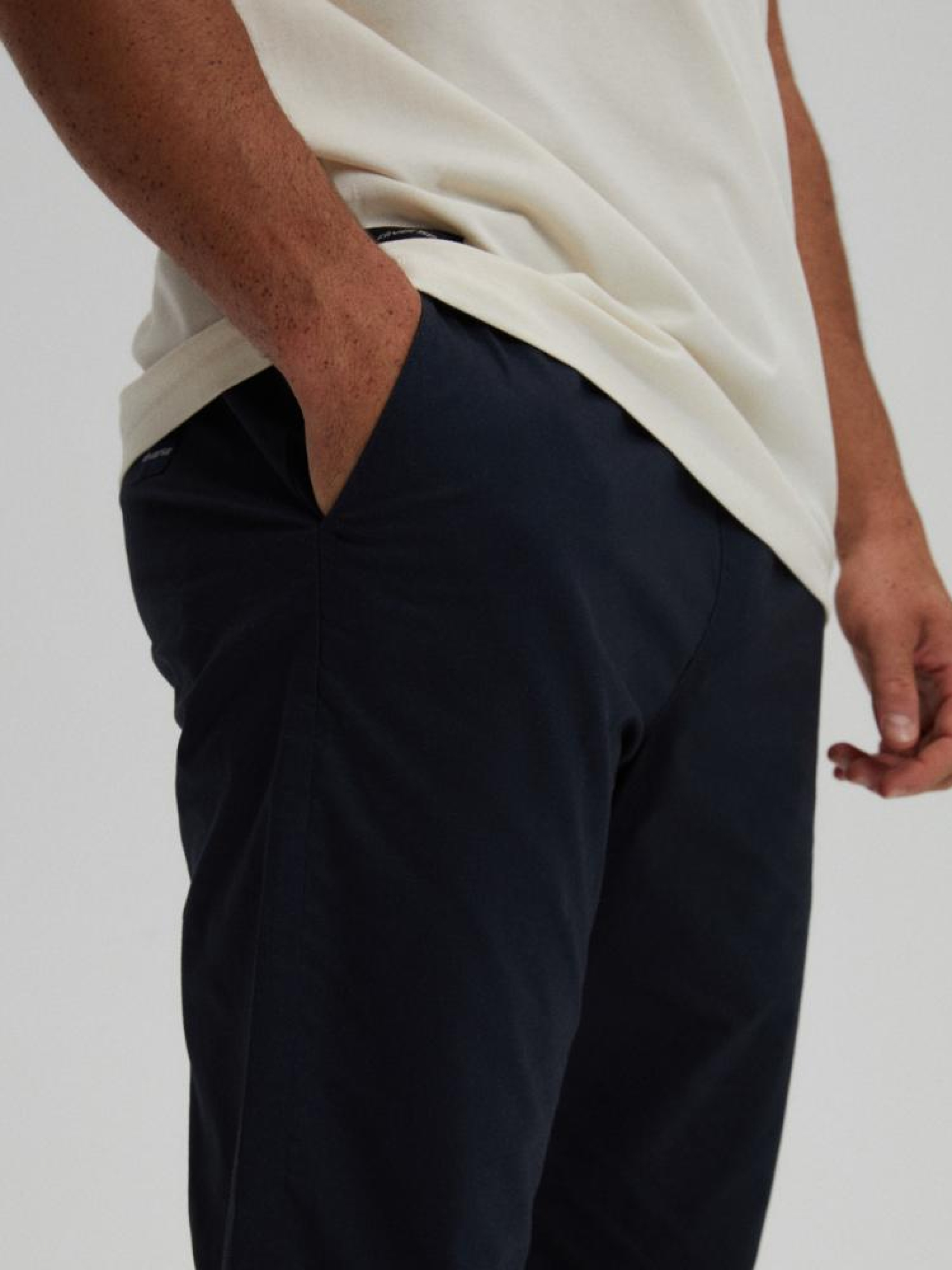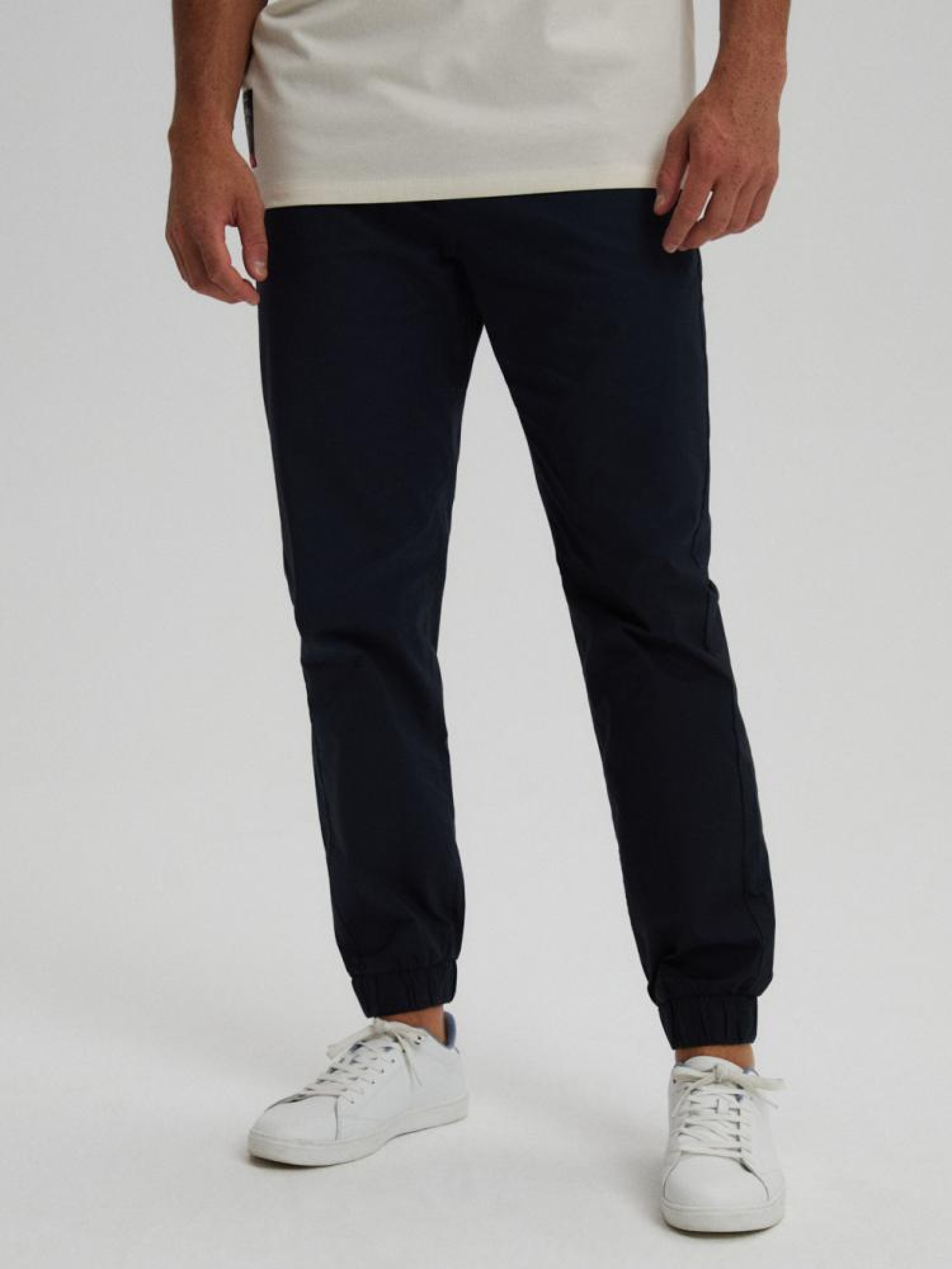 SEEN 10042861 Приталенные штаны джоггеры: - изготовлены из ткани ribstop, - полная резинка на талии и шнурок для регулировки штанов, - нижняя часть штанин обработана резинкой, - штаны имеют два кармана спереди и два сзади. Доступны в синем цвете. Сезон: осень/зима Состав: 77% хлопок 20% полиэстер 3% эластан Уход: - стирка при максимум 30 °С - не отбеливать - не сушить в сушильной машине - гладить максимум при темп. 150 °С - не химчистка Размер на модели - XL Рост модели - 187 см