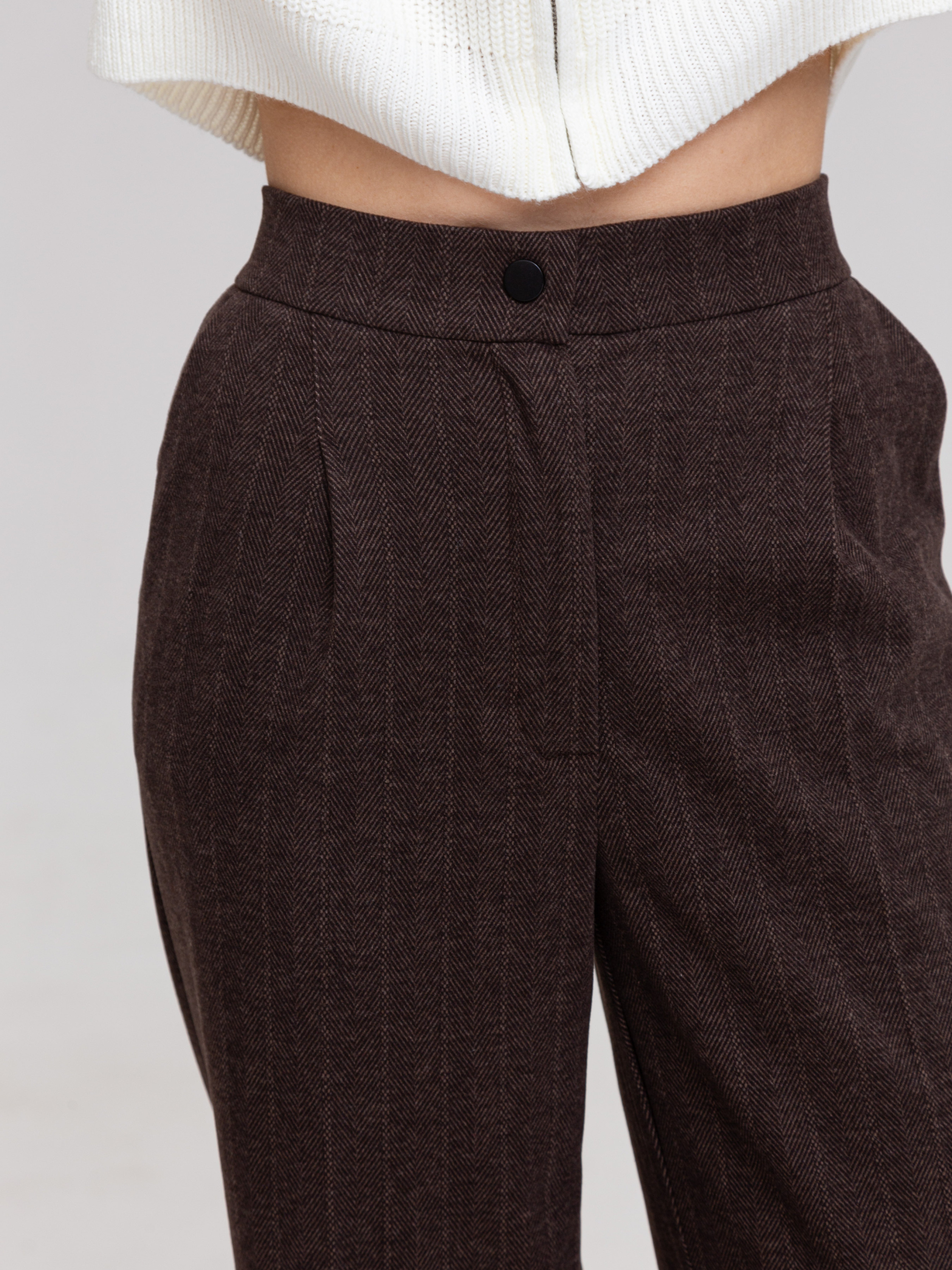 Стильні брюки виготовлені з високоякісної костюмної тканини, що складається з 76% поліестеру, 20% акрилу та 4% спандексу. Завдяки високому вмісту поліестеру, тканина стійка до зминання та зберігає форму, що робить ці брюки чудовим вибором для щоденного носіння. Основні переваги: Висока посадка забезпечує комфорт і підкреслює талію, додаючи образу елегантності. Еластичність завдяки спандексу дозволяє рухатися вільно, забезпечуючи комфорт протягом усього дня. Костюмна тканина надає брюкам класичного вигляду, роблячи їх універсальними для поєднання як з повсякденним, так і з офіційним гардеробом. Ідеальний варіант для осінньо-зимового сезону: тканина добре зберігає тепло, забезпечуючи комфорт навіть у холодну погоду. Поради щодо догляду: Прання: Рекомендується ручне прання або делікатний режим при температурі до 30°C. Сушка: Уникайте машинної сушки; найкраще сушити у розправленому вигляді на рівній поверхні, щоб зберегти форму Прасування: Прасуйте на середньому режимі, використовуючи захисну тканину, щоб уникнути пошкоджень. Ці брюки стануть чудовим доповненням до вашого гардероба, забезпечуючи як стильний вигляд, так і практичність.