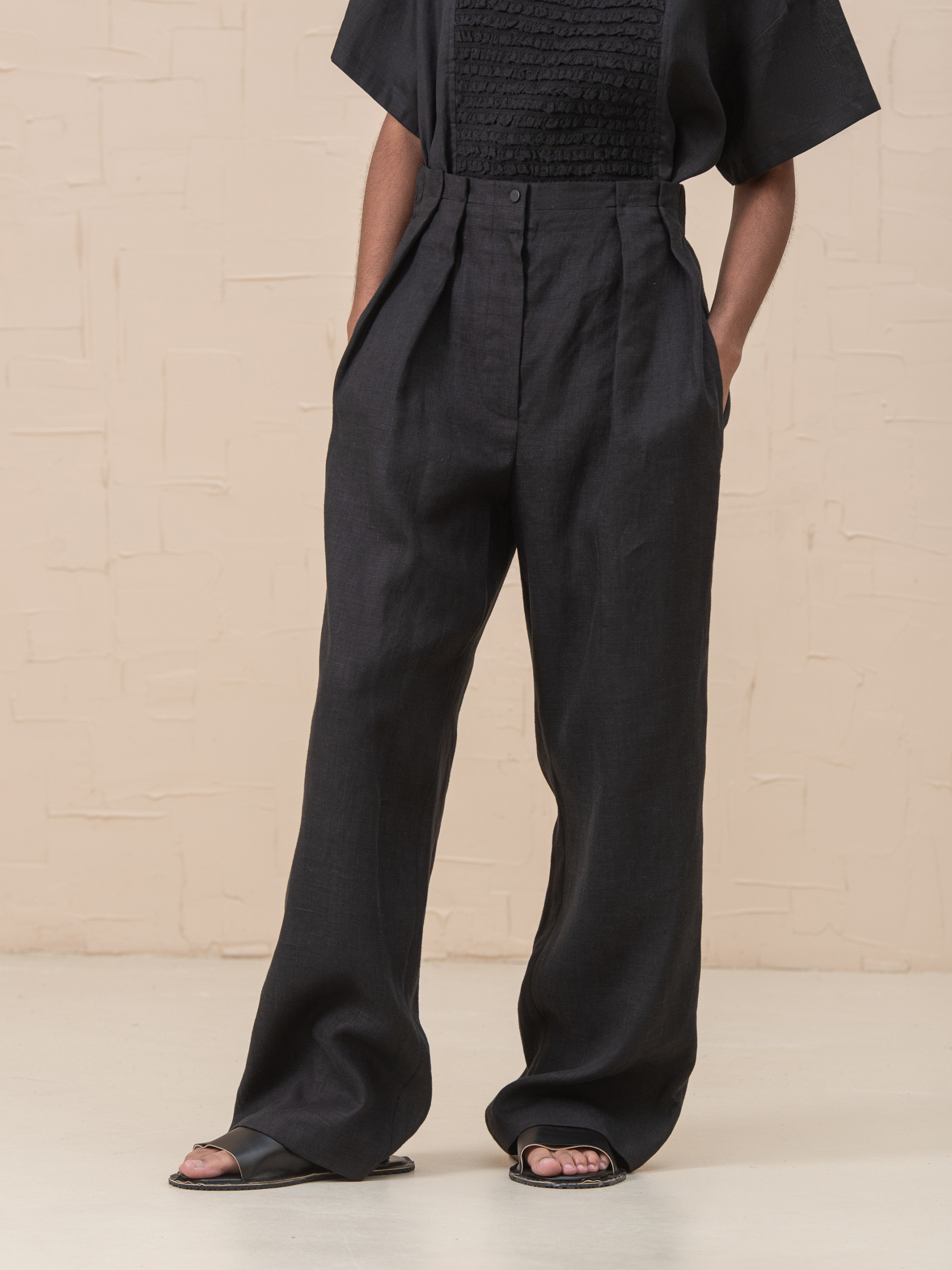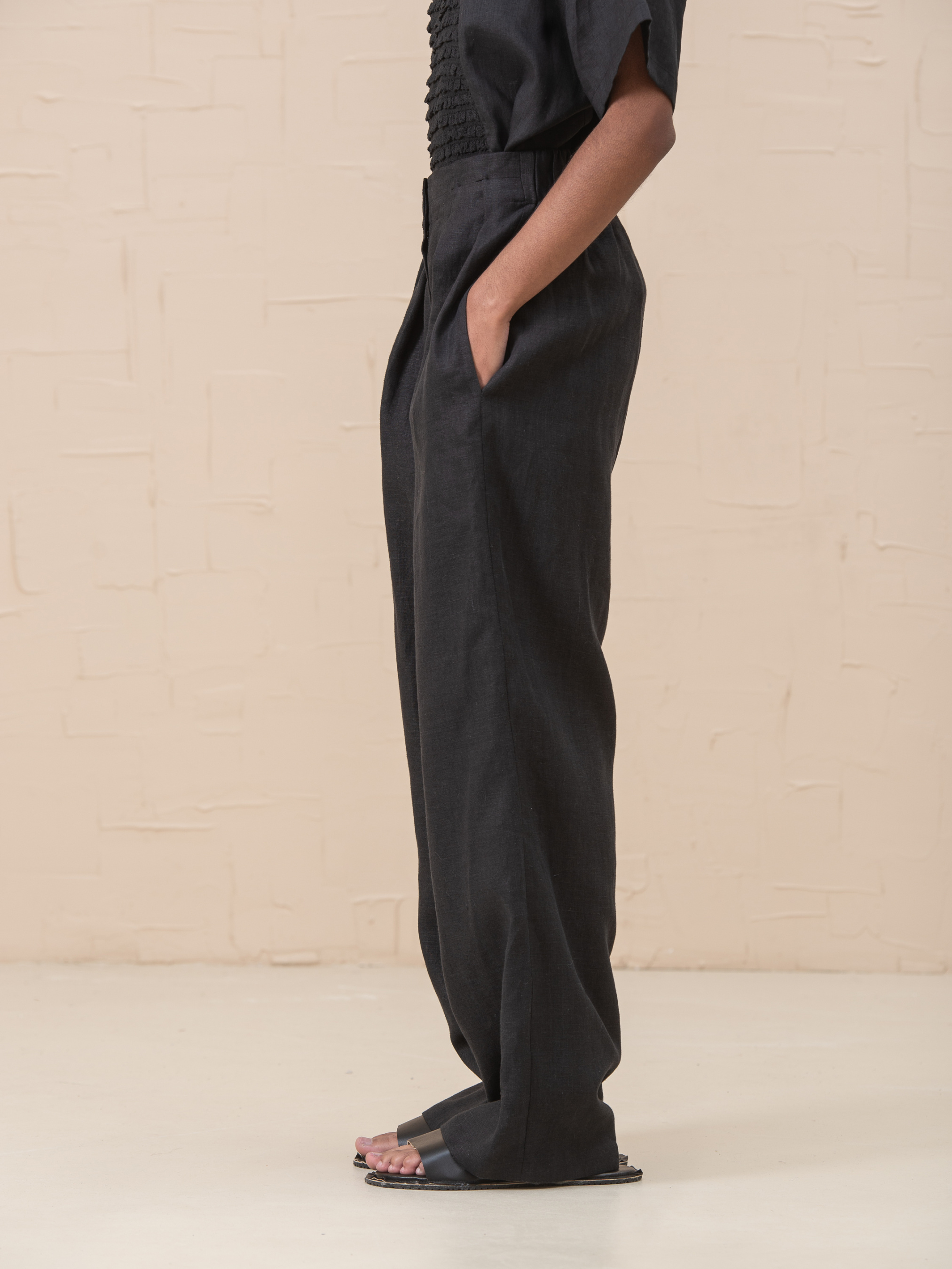 Роскошные брюки Emerie, изготовленные из 100% льна, являются обязательной вещью современного гардероба. Эти брюки создают вневременной силуэт, который можно надевать с любым случаем. Высокая талия, расслабленные штанины, застежка на молнию и пуговицы, складки на талии, которые регулируются по глубине, функциональные боковые карманы, без подкладки, эластичная задняя часть на резинке. Размер НК 1 (S-M): Талия 66см, Талия растянутая 78см, Бедра 109см, Длина 107см, Длина внутренняя 75см, Длина сидения 75см, Ширина низа 51cm Размер НК 2 (L-XL): Талия 79cm, Талия растянутая 105cm, Бедра 120cm, Длина 107cm, Длина 107cm, Длина внутренняя 75cm, Длина сиденья 77cm, Ширина низа 56cm