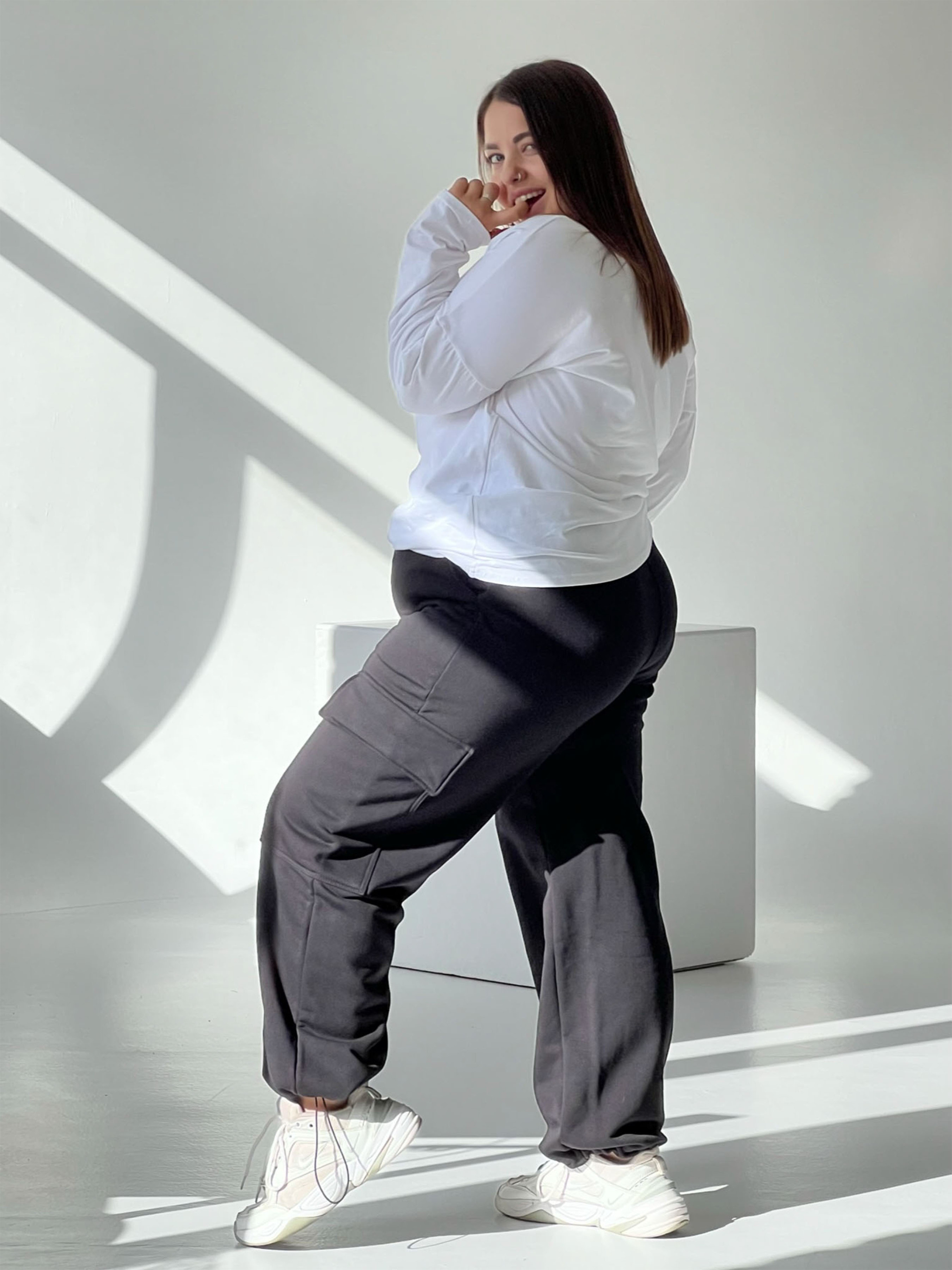 Штаны карго трансформируются из широких в джогеры благодаря завязкам на манжетах, имеют удобные карманы для рук и большие накладные карманы на штатинах. Ткань: трехнить петля пенье Турция дышащая и натуральная. На лицевой поверхности не образовывается никаких катышек даже после полугода регулярного использования. Замеры изделия для карго: 1 размер: Обхват бедер 102 см, обхват талии 64-100 (резинка тянется, имеется дополнительно шнурок), длина наружного шва 93 см, по внутреннему шву 64 см, обхват штанины в самой широкой части бедра 63 см, в самом низу 45 см 2 размер: Обхват бедер 110 см, обхват талии 68-106 (резинка тянется, имеется дополнительно шнурок), длина наружного шва 98 см, по внутреннему шву 67 см, обхват штанины в самой широкой части бедра 67 см, в самом низу 50 см 3 размер: Обхват бедер 118 см, обхват талии 72-114 (резинка тянется, имеется дополнительно шнурок), длина наружного шва 103 см, по внутреннему шву 70 см, обхват штанины в самой широкой части бедра 72 см, в самом низу 54 см На фото: Мелания 165 см рост, параметры 90-60-80 см -1размер Ксения 160 см рост, параметры 118-93-111см -3размер