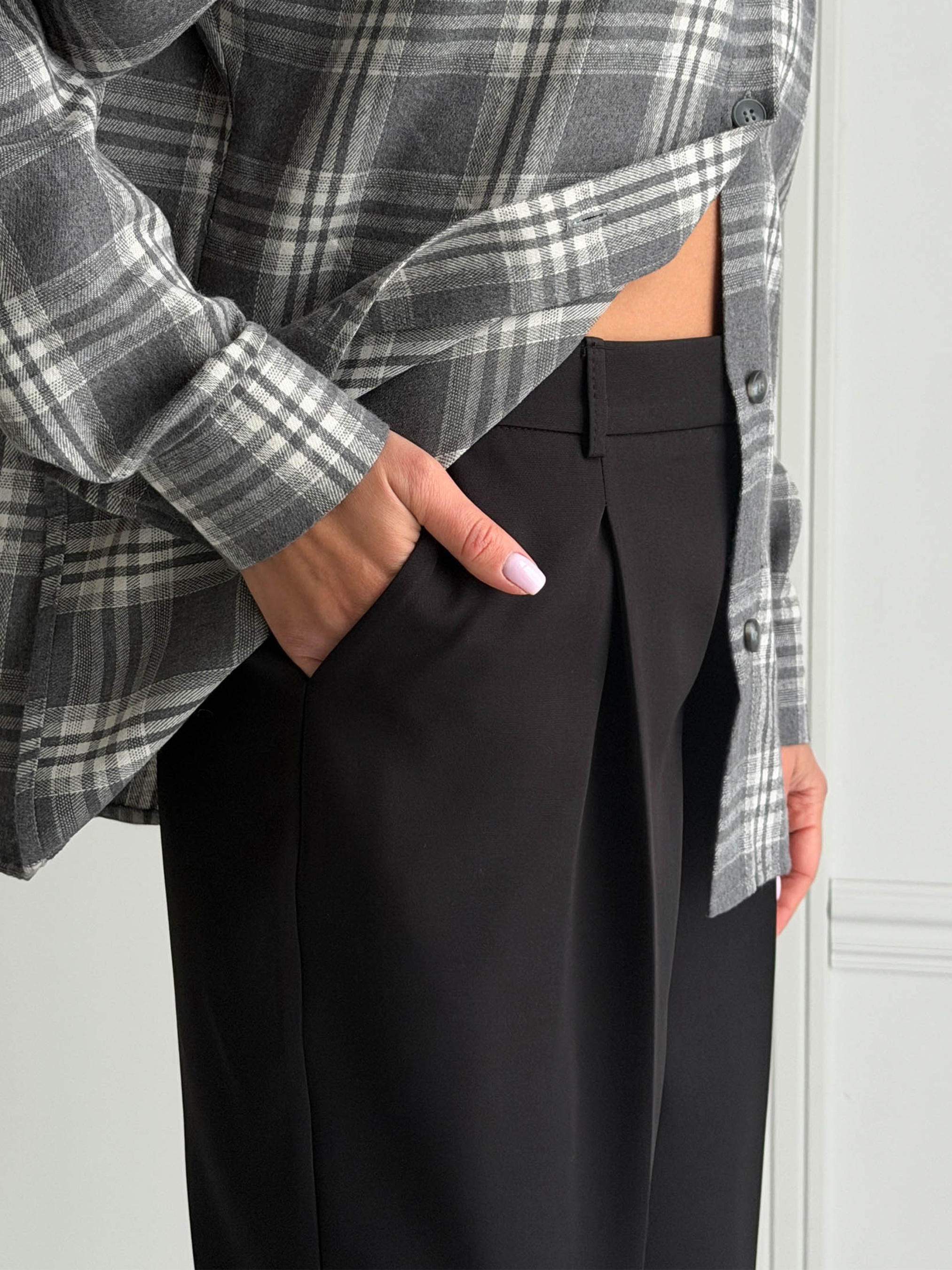 Ткань: костюмка Состав: 83% полиэстер, 15% вискоза, 2% эластан. Цвет: молоко, черный, шоколад Размер: XS,S,M,L,XL Параметры модели на фото: Рост: 170 см, ОГ: 86 см, ОТ: 64 см, ОС: 93 см. На фото представлена модель размер S Комплектация: брюки Фактические измерения изделия: XS р. ОТ: 72/86 см; ОС: 94 см; Объем штанины сверху: 65 см; Длина изделия со стороны: 100 см; Длина изделия по шаговому шву: 74.5 см; S р. ОТ: 76/90 см; ОС: 98 см; Объем штанины сверху: 66 см; Длина изделия со стороны: 100 см; Длина изделия по шаговому шву: 74 см; M р. ОТ: 80/94 см; ОС: 102 см; Объем штанины сверху: 67 см; Длина изделия со стороны: 101 см; Длина изделия по шаговому шву: 74,5 см; L р. ОТ: 84/98 см; ОС: 106 см; Объем штанины сверху: 68 см; Длина изделия со стороны: 102 см; Длина изделия по шаговому шву: 75 см; XL р. ОТ: 88/102 см; ОС: 110 см; Объем штанины сверху: 69 см; Длина изделия со стороны: 103 см; Длина изделия по шаговому шву: 75,5 см; Силуэт: прямые, зауженные к низу Посадка: низкая Застежка: на молнию и на крючок Карманы: в боковых швах Классические брюки из костюмной ткани – универсальная база для деловых и повседневных образов. Модель имеет прямой силуэт с легким сужением вниз, визуально вытягивает ноги и делает фигуру более пропорциональной. Низкая посадка придает современный характер, а сдержанный крой позволяет легко комбинировать брюки с жакетами, рубашками или трикотажем. ПОЛИГРАФИЯ НЕ ВСЕГДА ПРАВИЛЬНО ПЕРЕДАЕТ ОТТЕНОК ТКАНИ. Цветопередача на мониторе и телефоне может отличаться оттенками цвета ткани.
