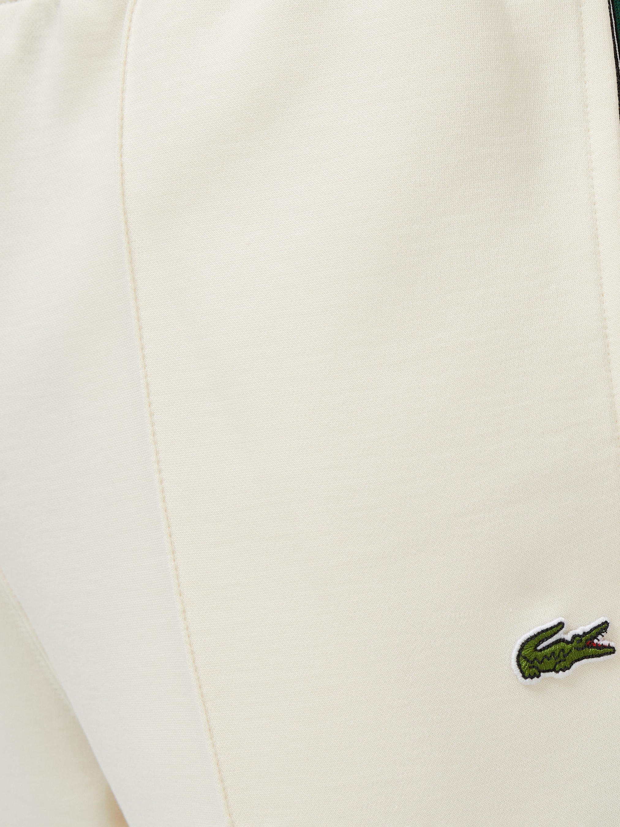 Эти спортивные штаны – сочетание моды и спортивного стиля, результат 90-летнего опыта Lacoste. Изготовлены во Франции из комфортного двухслойного джерси и украшены изысканными деталями, в частности прошитыми складками и контрастными полосатыми вставками. Изысканный стиль завершает вышитый фирменный крокодил. Материал: 90% хлопок, 10% полиэстер Двухслойное джерси из органического хлопка Regular fit, прямой крой Контрастные полосатые вставки вдоль брюк Прошитые складки спереди Два боковых кармана Вышитый крокодил на левой штанине Дизайн: Франция