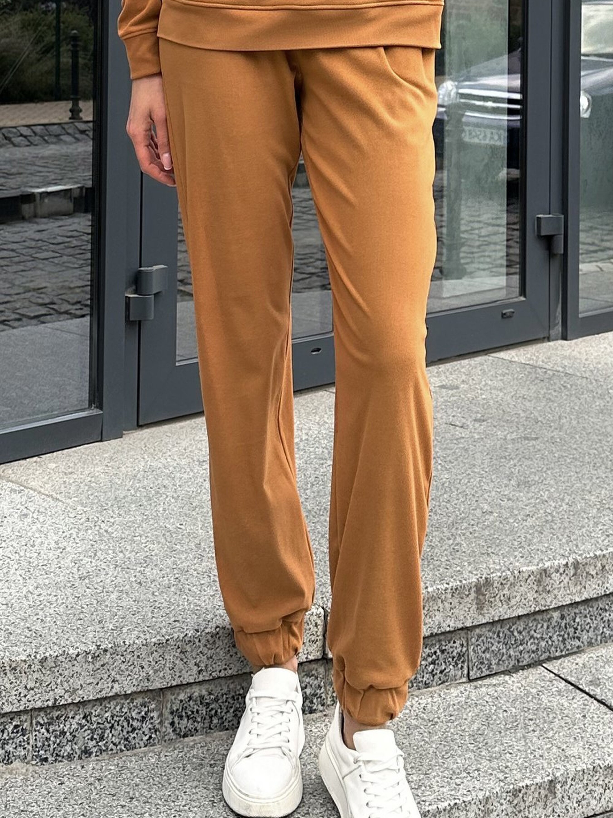 Жіночі коричневі брюки з кишенями та прямим кроєм на резинці Ці коричневі брюки з кишенями є ідеальним вибором для тих, хто цінує стиль і комфорт. Завдяки прямому крою і еластичній резинці на поясі, вони забезпечують комфортну посадку та свободу рухів на кожен день. Основні характеристики: Колір: Коричневий — універсальний теплий відтінок, що легко поєднується з різними кольорами, додаючи образу затишку та елегантності. Крій: Прямий крій підкреслює лінію фігури і дозволяє створювати стильний образ. Пояс: Еластична резинка на поясі дозволяє комфортно сидіти на талії без зайвого натягу. Кишені: Зручні бокові кишені для практичності та зберігання дрібниць.Як носити: Повсякденний стиль: Поєднуйте з простими футболками або блузами для створення зручного образу. Офісний стиль: Додайте елегантний жакет і туфлі на підборах для завершеного ділового луку. Спортивний стиль: Скомбінуйте з кедами або спортивними черевиками для активного вигляду. Коричневі брюки з прямим кроєм на резинці — це стильний і комфортний вибір, що підходить для будь-якої нагоди і допомагає створити безліч цікавих образів.