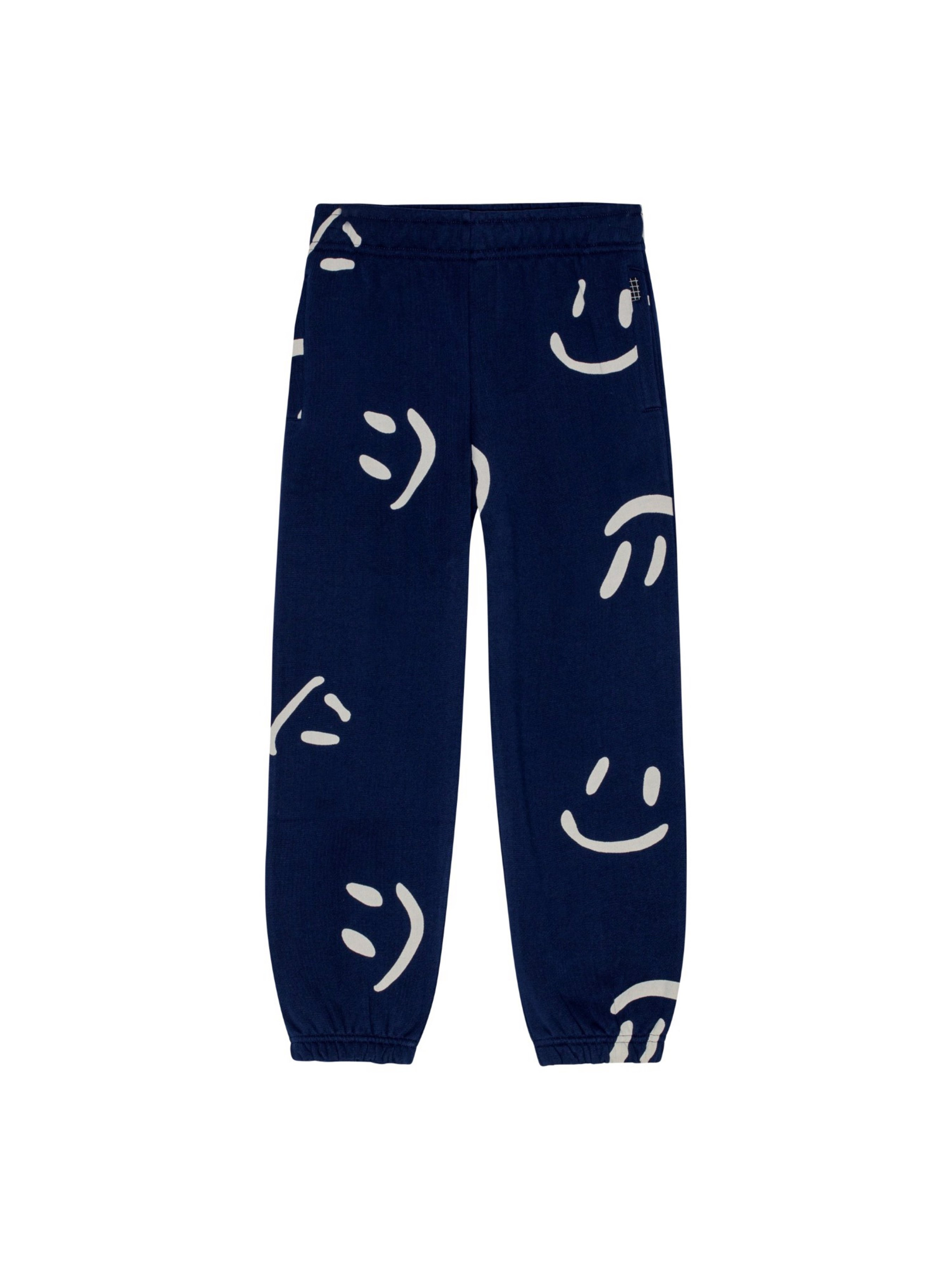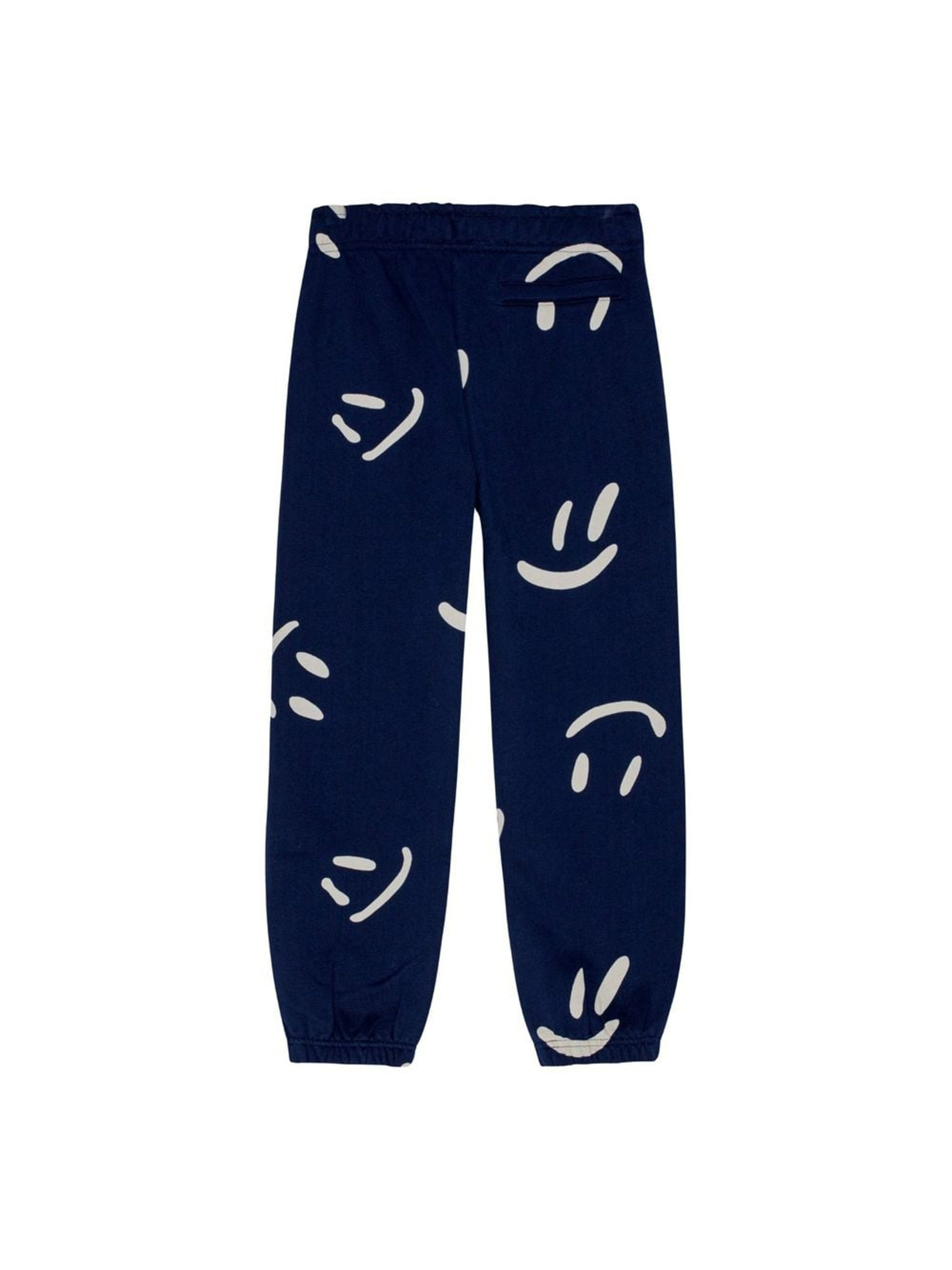 Утепленные спортивные брюки унисекс Molo "Adan Big Smiles Navy". Особенности: материал – 100% organic cotton*; мягкий футер (флис) внутри; сертифицировано GOTS** – изготовлено из сертифицированных органических материалов; декорировано сплошным принтом в смайлики; регулируемая талия; эластичный пояс и манжеты; функциональные карманы; идеально сочетается с свитшотом Molo "Monti Big Smiles Navy". *Organic cotton (органический хлопок) – хлопок, выращиваемый без использования вредных химикатов и губительного воздействия на природные ресурсы планеты.