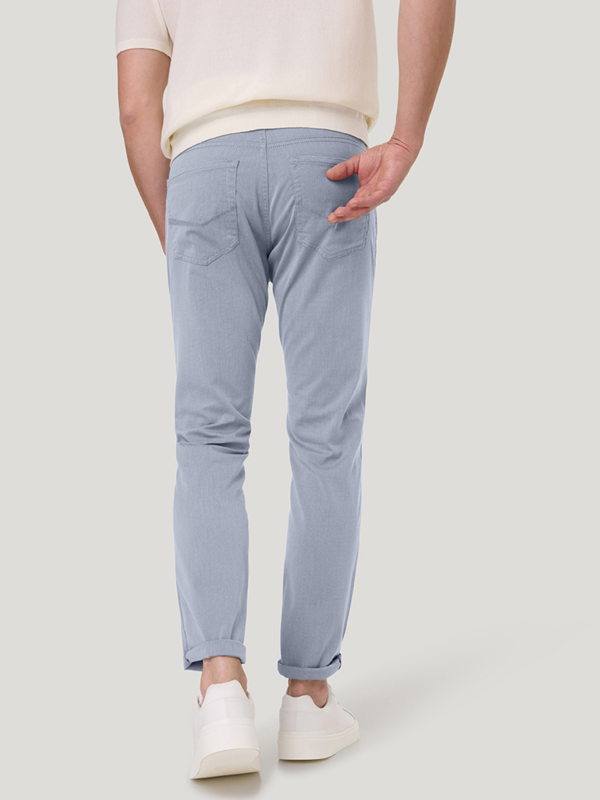 Это универсальный и комфортный вариант для тёплой погоды. Они пошиты из мягкой, дышащей хлопковой ткани, которая приятна к телу и хорошо вентилируется. Цвет — светло-голубой создаёт ощущение свежести и расслабленного летнего стиля. Они отлично сочетаются с футболками, льняными рубашками, поло или даже лёгкими пиджаками (например, тем самым голубым пиджаком). Обувь подойдёт как лёгкие кеды, мокасины, так и сандалии — в зависимости от настроения и повода