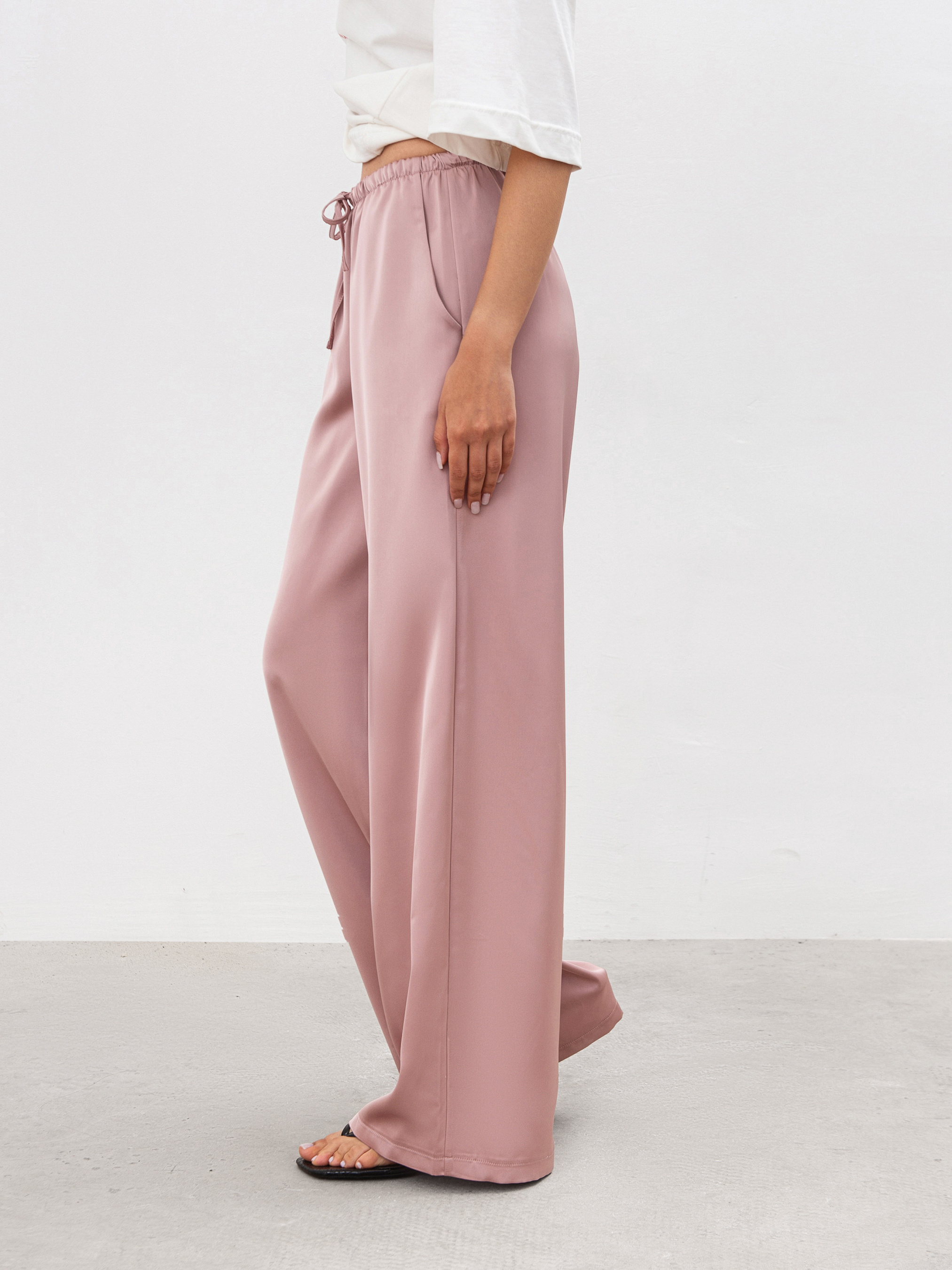 Сатиновые брюки в бельевом стиле. По поясу идет вставка из резинки и тонкого шнура. Материал мягкий и одновременно плотный сатин. Идеальный вариант под любой вариант обуви и верха. ХС Длина по внутреннему шву: 80 см. Длина по внешнему шву: 105 см. Полуобхват бедер: 49 см Ширина по низу: 28 см Посадка: 27 см Полуобхват талии: 28 см С Длина по внутреннему шву: 82 см. Длина по внешнему шву: 106 см. Полуобхват бедер: 51 см Ширина по низу: 29 см Посадка: 27 см Полуобхват талии: 30 см М Длина по внутреннему шву: 82 см. Длина по внешнему шву: 107 см. Полуобхват бедер: 53 см Ширина по низу: 30 см Посадка: 27 см Полуобхват талии: 32 см Л Длина по внутреннему шву: 82 см. Длина по внешнему шву: 107 см. Полуобхват бедер: 55 см Ширина по низу: 30 см Посадка: 29 см Полуобхват талии: 33 см ХЛ Длина по внутреннему шву: 82 см. Длина по внешнему шву: 109 см. Полуобхват бедер: 56 см Ширина по низу: 31 см. Посадка: 30 см Полуобхват талии: 35 см