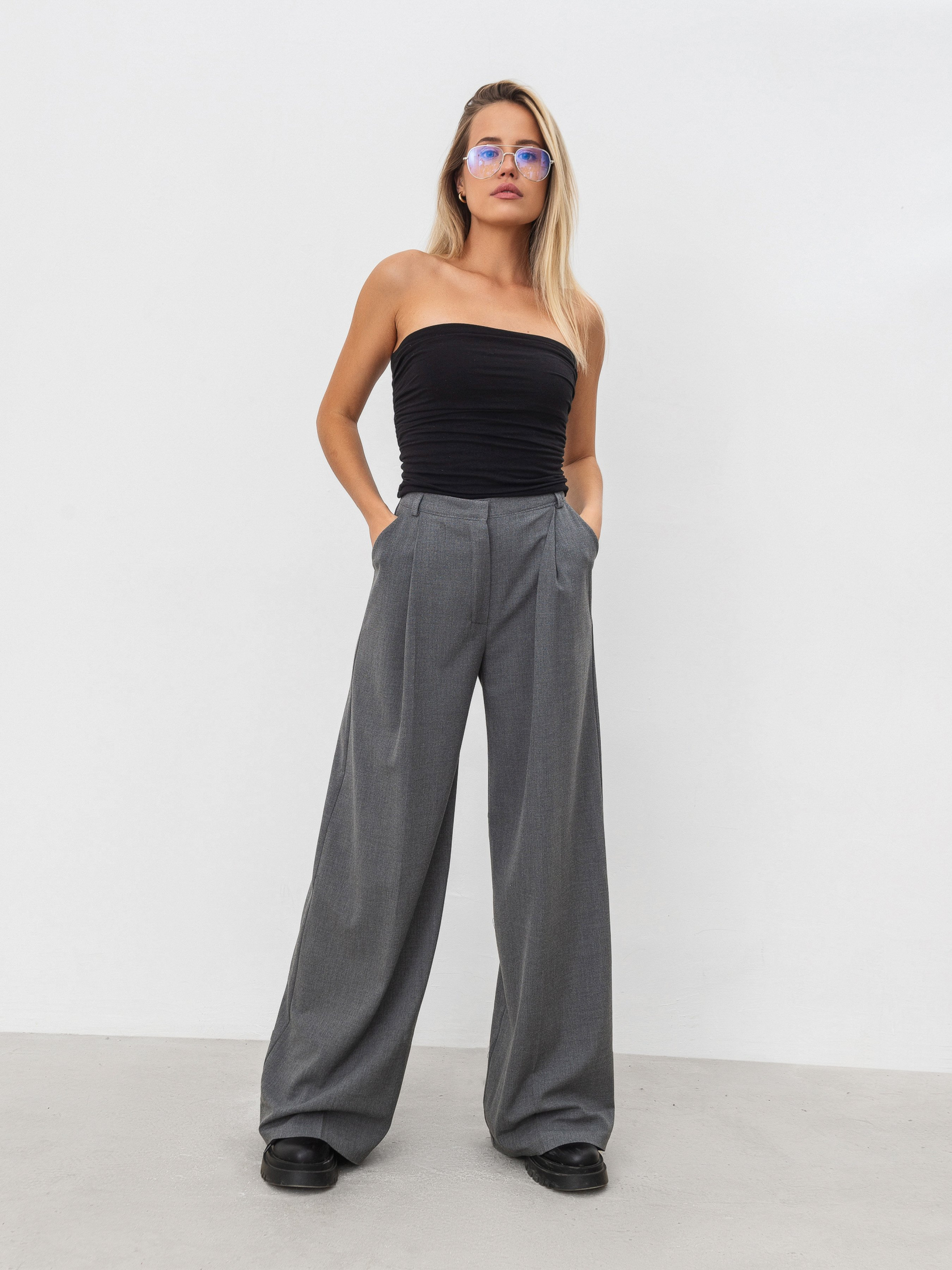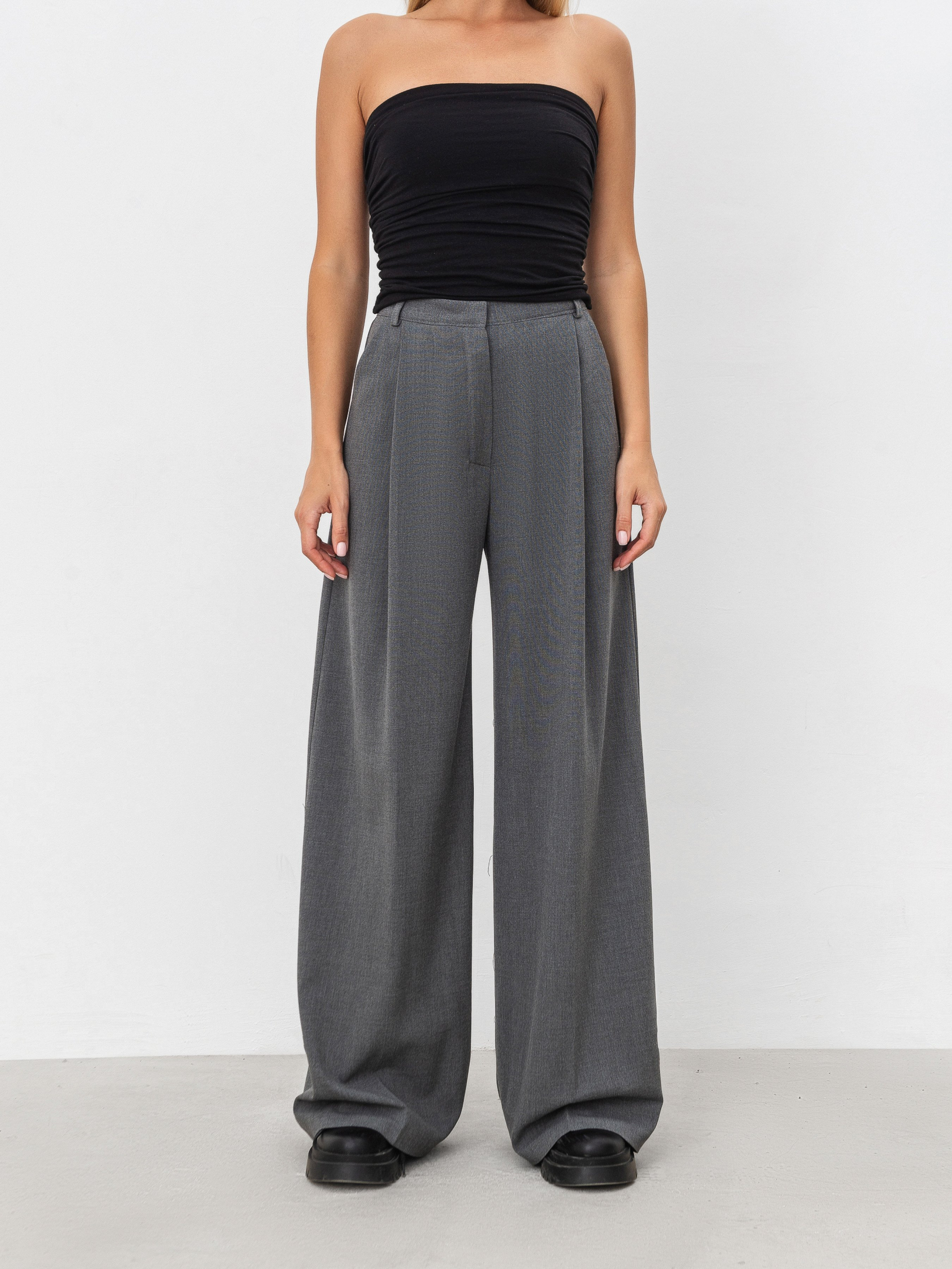 Брюки-палаццо из плотной костюмной ткани. Высокая посадка. Свободные в ногах и бедрах. Внутри спереди белая тесьма можно отвернуть для модной стилизации. Внутри застегиваются на застёжку и пуговку. Есть кармашки. В комплект можно скомбинировать удлиненный или короткий пиджак из этого же материала. XS Длина по внешнему шву : 110 см Полуобхват бедер : 50 см Посадка : 30 см Полуобхват талии : 29 см (резинка) S Длина по внешнему шву: 110 см Полуобхват бедер : 51 см Посадка : 30 см Полуобхват талии : 31 см (резинка) M Длина по внешнему шву: 110 см Полуобхват бедер : 52 см Посадка : 30 см Полуобхват талии : 32 см (резинка) L Длина по внешнему шву: 110 см Полуобхват бедер : 53 см Посадка : 30 см Полуобхват талии : 33 см (резинка) XL Длина по внешнему шву : 110 см Полуобхват бедер : 55 см Посадка : 31 см Полуобхват талии : 36 см (резинка)