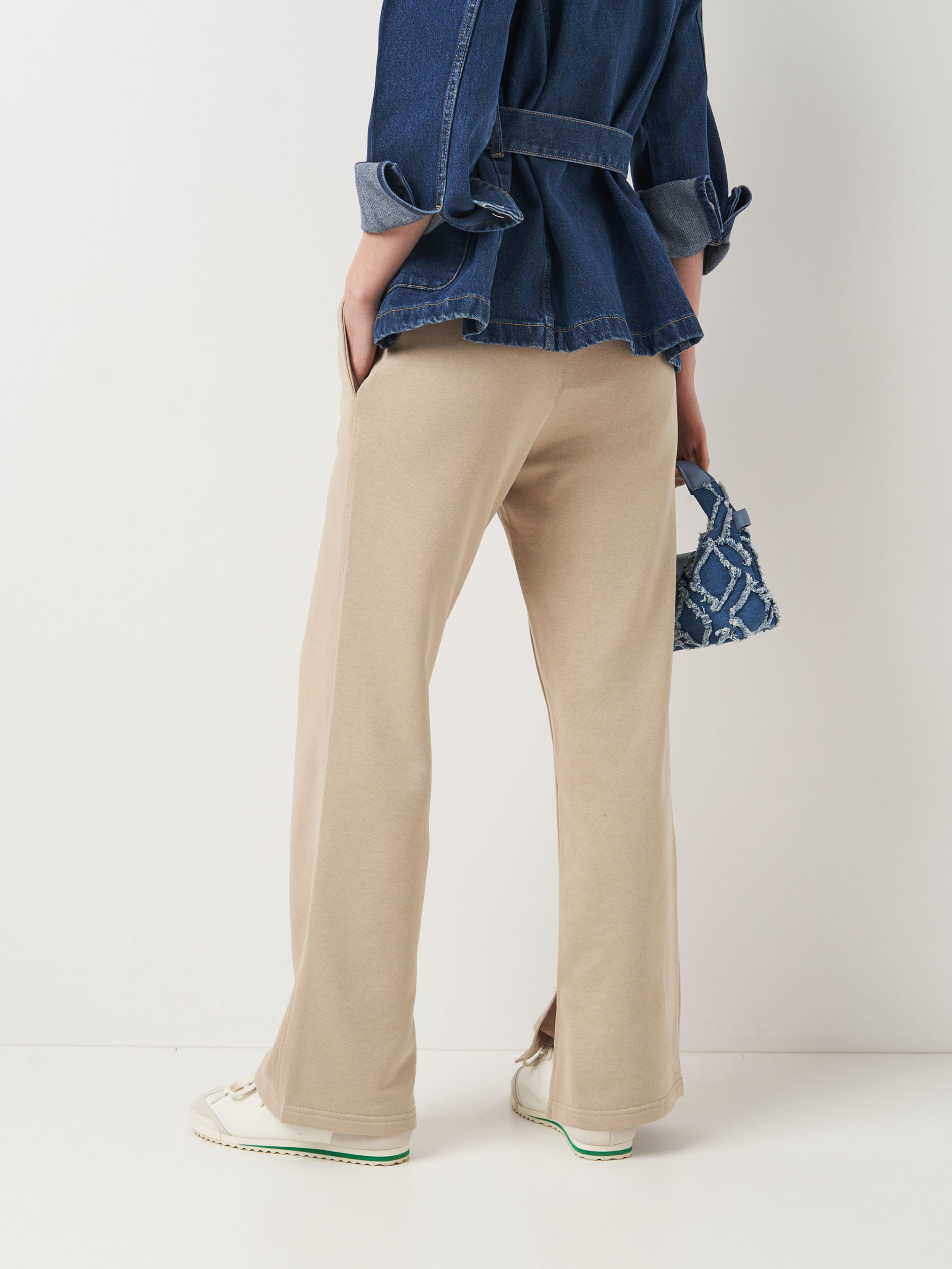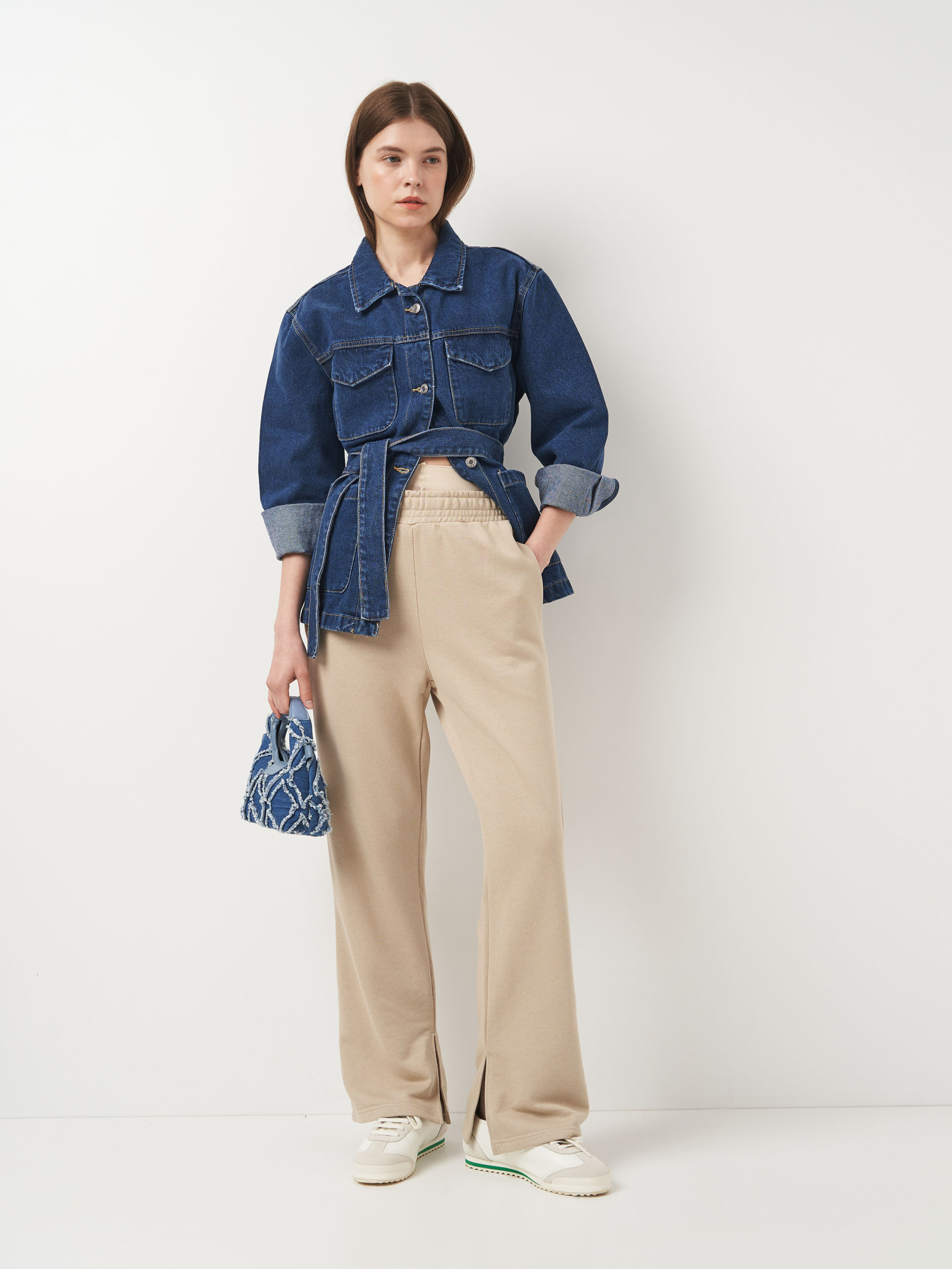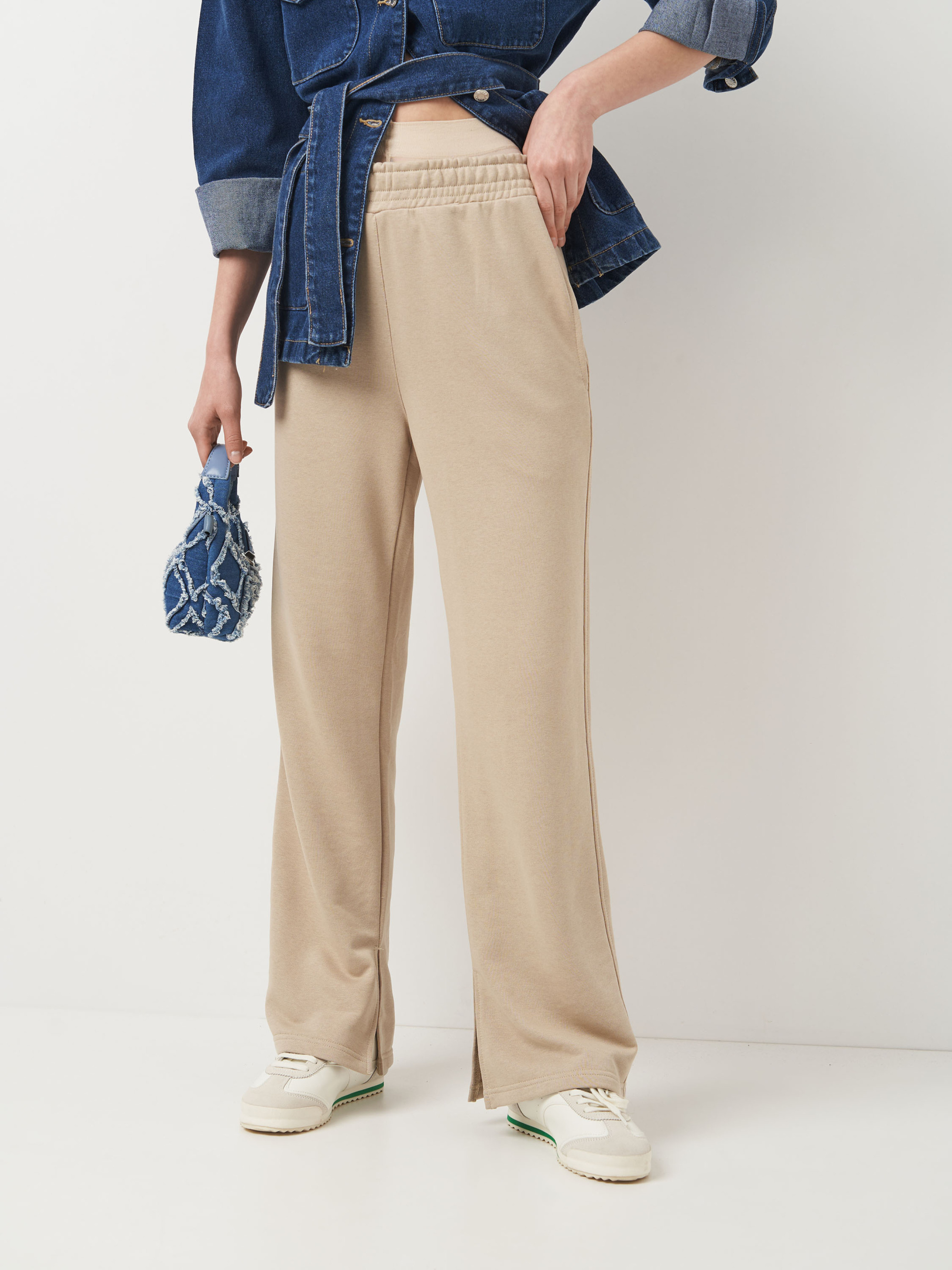Удлиненные брюки стандартной посадки, расширены вниз, с разрезами по внутреннему шву. Ткань, состоящая из петелек. На изнанке ткани приятный гриф в виде петель. Технология производства делает полотно плотным, крепким и долговечным. Практичный, натуральный материал, стойкий к деформации. Изделия из тринитки рекомендуется стирать либо вручную, либо в стиральной машине в щекотливом режиме при температуре не выше 30 градусов.