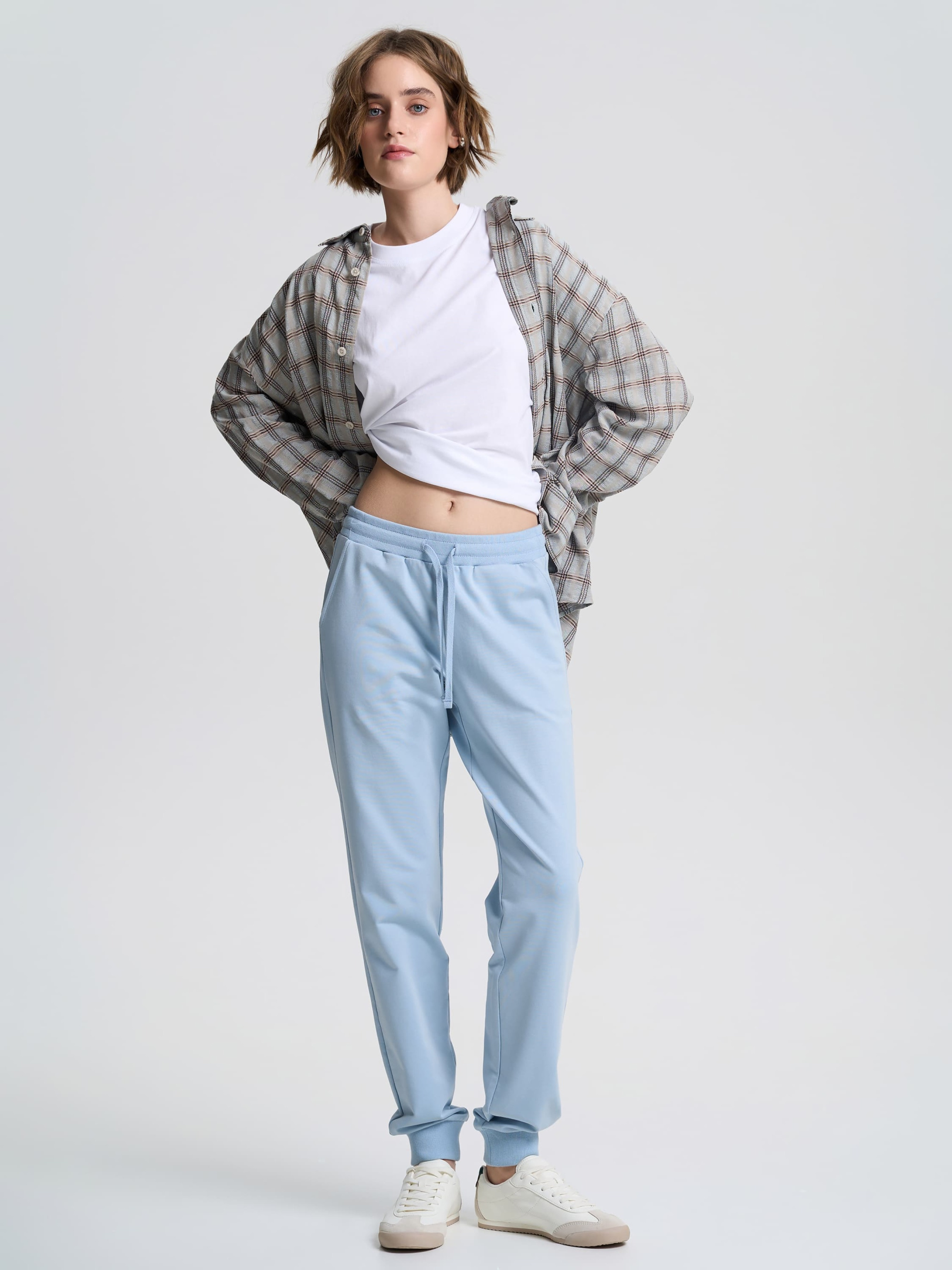 Зауженные к низу джоггеры стандартного кроя из двунитки с мягким фиксирующим поясом — идеальный вариант для тех, кто ищет удобные брюки из мягкого материала. Изготовлены из слегка тянущейся натуральной ткани. Подходят для активного движения в течение дня. Пояс со шнурком позволяет комфортно регулировать посадку. Материал Ткань изготовлена из двух нитей, что придает ей высокую прочность и стойкость к износу. Мягкая и приятная коже, не сковывает движения и не дает телу перегреваться. Не теряет цвет при стирке и ношении. Изделия из двунитки не мнутся, что придает им универсальность в использовании. Рекомендации по уходу Рекомендовано стирать при температуре не выше 40°C, используя режим деликатной стирки. При ручной стирке избегать трения. Цветные вещи с хлопком в составе не рекомендуется сушить под прямыми солнечными лучами.