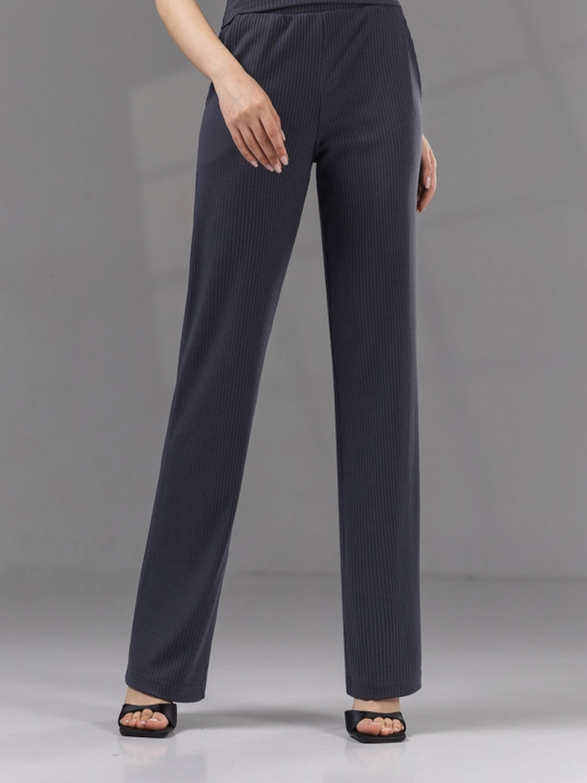 Лаконічні прямі штани з високою посадкою — універсальна модель, яка чудово поєднує комфорт і стиль. Завдяки м’якому натуральному трикотажному полотну, вони приємні до тіла та забезпечують повну свободу руху. Штани мають зручний еластичний пояс на резинці по лінії талії, що гарантує ідеальну посадку без тиску. Бічні кишені додають практичності, а класичний прямий крій робить модель універсальною — для дому, прогулянок або офісного кежуал-луку. Розміри: Довжина по боковому шву: 105–107 см Довжина крокового шва: 81–85 см Ширина в талії (в спокійному стані): 32–40 см Ширина в стегнах: 46–54 см Ширина по низу штанини: 23–27 см