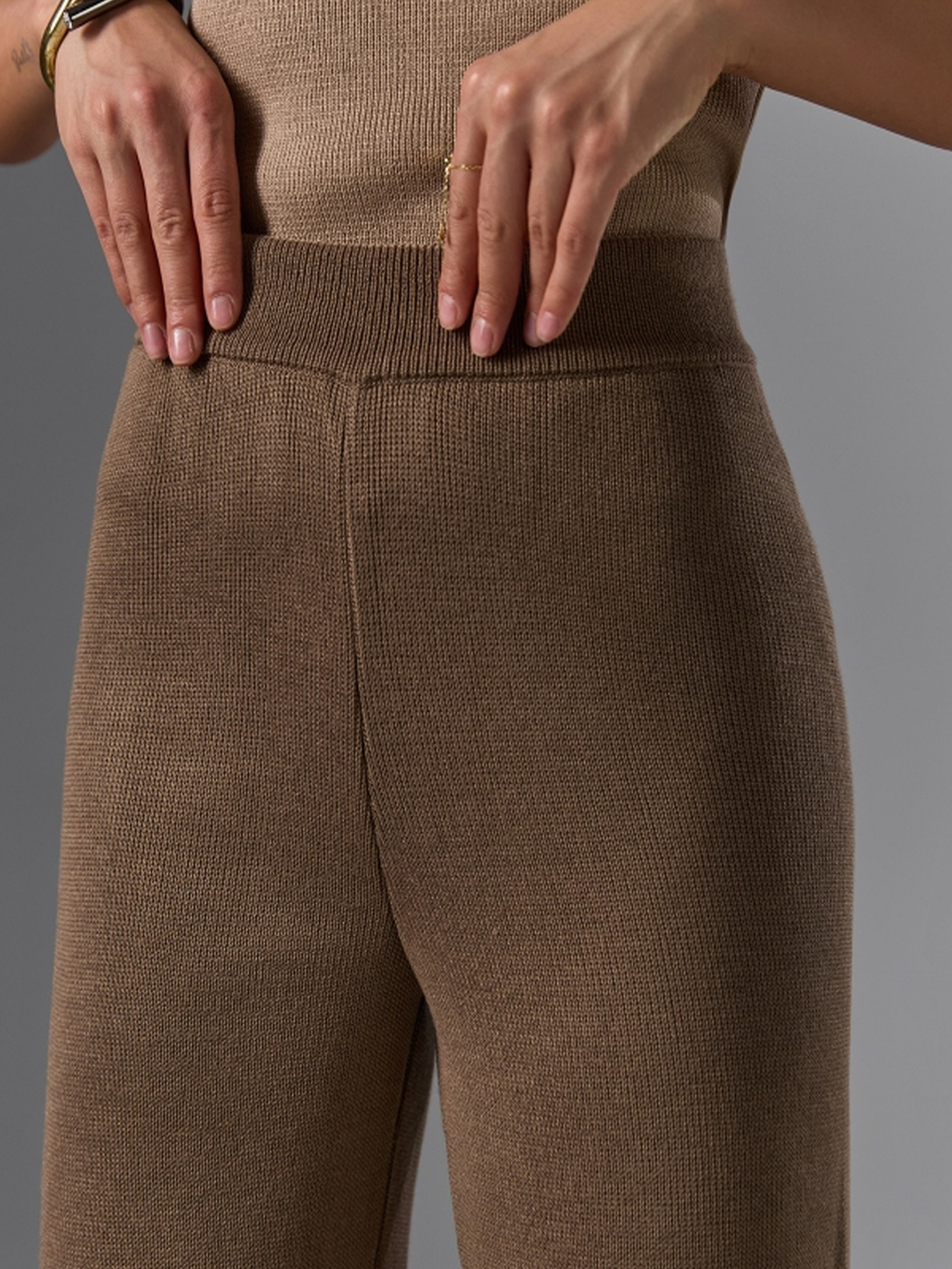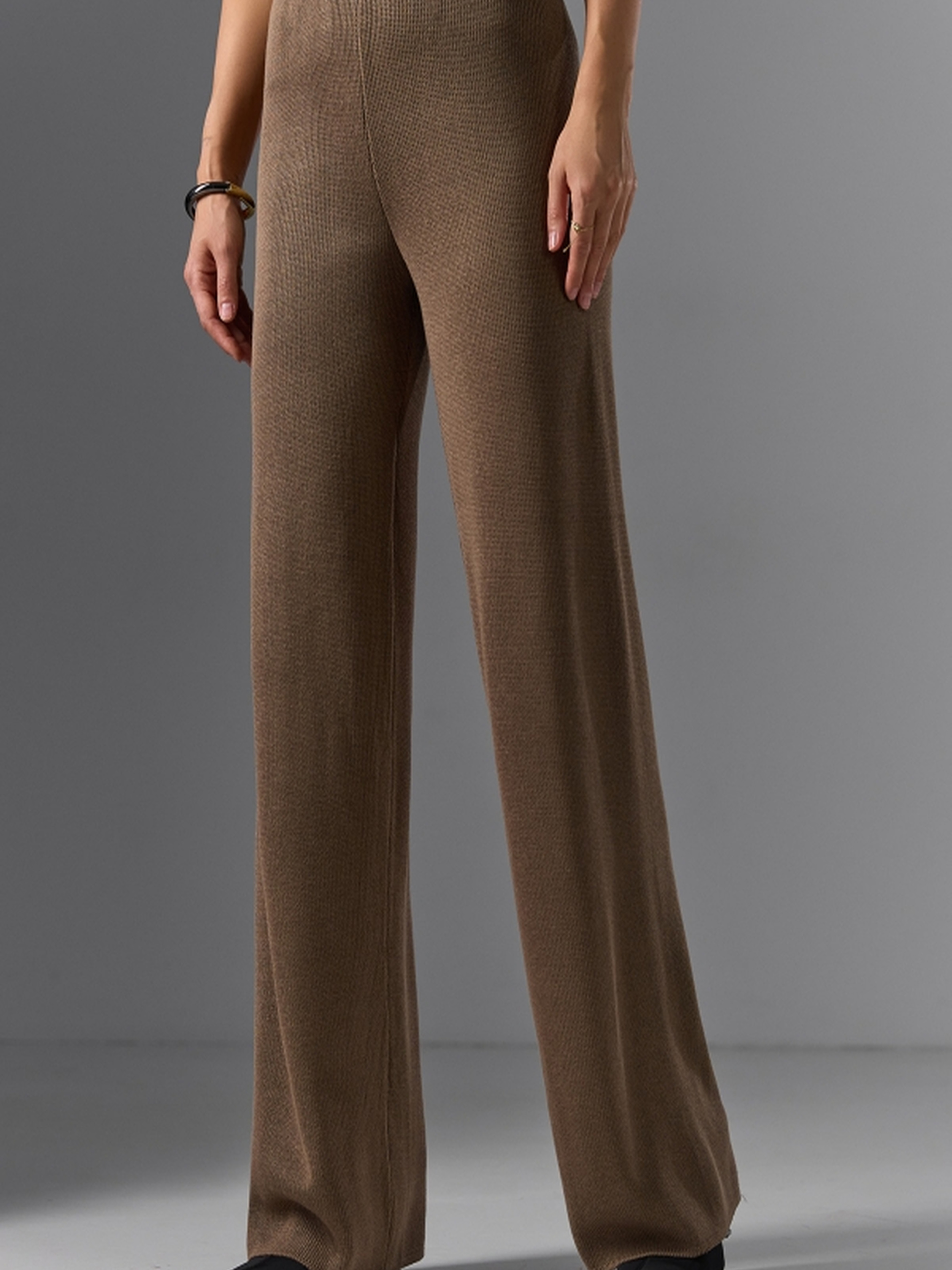 Елегантні брюки-палаццо, виконані з ніжної шовковистої натуральної пряжі з додаванням віскози та бавовни, стануть втіленням вишуканості та комфорту. Їхнє гладке охайне переплетіння надає виробу елегантного вигляду, а натуральні волокна забезпечують приємні тактильні відчуття. Брюки гарно тримають форму та оснащені м'якою еластичною резинкою на талії для зручної посадки. Вільний крій палаццо створює струмкий силует, який підкреслить вашу жіночність та подарує відчуття легкості протягом усього дня. Характеристики (орієнтовно): Матеріал: Натуральна пряжа (шовковиста), віскоза, бавовна Переплетення: Гладке, охайне Пояс: М'яка еластична резинка на талії Довжина по бічному шву: близько 105 см Довжина крокового шву: 77 см Висота посадки: 30-34 см Ширина у талії: 23-37 см (спокійний/розтягнутий) Ширина у стегнах: 60-72 см Ширина по низу: 25-27 см