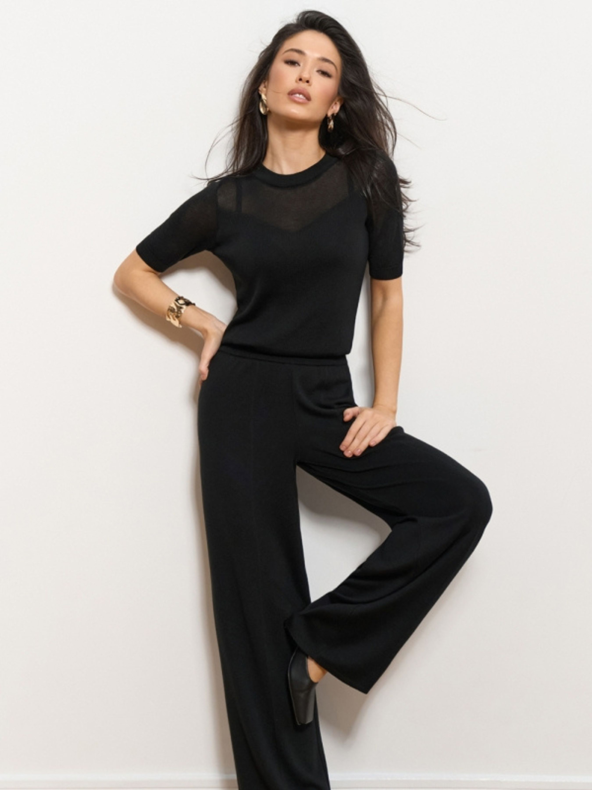 Жіночі брюки прямого крою зі струменистої віскози — це втілення бездоганного комфорту та елегантної розслабленості. Виготовлені з високоякісної суміші віскози та бавовни, вони мають благородну шовковисту текстуру, яка приємно охолоджує шкіру та гарно драпірується при ходьбі. Завдяки еластичній резинці на поясі та прямому крою, ця модель стане ідеальною базою для вашого літнього та демісезонного гардероба. Характеристики Матеріал: Шовковиста віскозна пряжа (м'яка, струмениста тканина). Склад: 70% віскоза, 25% бавовна, 5% поліамід (віскоза дарує ніжність, бавовна забезпечує повітропроникність, а поліамід допомагає виробу тримати форму). Тканина: Віскозний трикотаж (дихаючий та гіпоалергенний). Фасон: Прямий (класичний вільного крою). Пояс: Комфортна еластична резинка (забезпечує м'яку посадку без здавлювання). Довжина по бічному шву: 106 см (ідеально підходить для створення елегантного подовженого силуету). Стиль: Кежуал (casual) / Мінімалізм / Домашній преміум-стиль. Сезон: Літо, тепла весна / осінь. Чому ці штани стане вашими улюбленими? Ефектний силует: Прямий фасон візуально подовжує ноги та додає образу легкості, а струмениста тканина створює витончений рух при кожному кроці. Преміальний комфорт: Шовковиста віскоза в поєднанні з бавовною дозволяє шкірі «дихати» навіть у спекотну погоду, забезпечуючи відчуття свіжості протягом усього дня. Ідеальна посадка: Еластична резинка на талії робить ці штани максимально практичними — вони підлаштовуються під ваші параметри, даруючи повну свободу рухів. Універсальність: Модель легко комбінується як із базовими футболками та кедами для прогулянок, так і з легкими джемперами чи шовковими топами для створення більш вишуканих луків. Практична довжина: Довжина 106 см дозволяє носити штани як із взуттям на плоскій підошві, так і з невеликим підбором, зберігаючи пропорції фігури. Рекомендації з догляду Прання: Тільки делікатне прання при температурі не вище 30°C. Рекомендується використовувати мішечок для прання, щоб зберегти шовковисту структуру пряжі. Засоби: Використовуйте м’які рідкі гелі для делікатних тканин. Уникайте агресивних засобів та відбілювачів. Сушіння: Сушіть у розправленому вигляді на горизонтальній поверхні або на вішалці природним шляхом. Уникайте машинної сушки, щоб запобігти усадці віскози. Прасування: Зазвичай штани майже не мнеться. За необхідності скористайтеся вертикальним відпарювачем або прасуйте з виворітного боку при мінімальній температурі (режим «Шовк/Віскоза»).