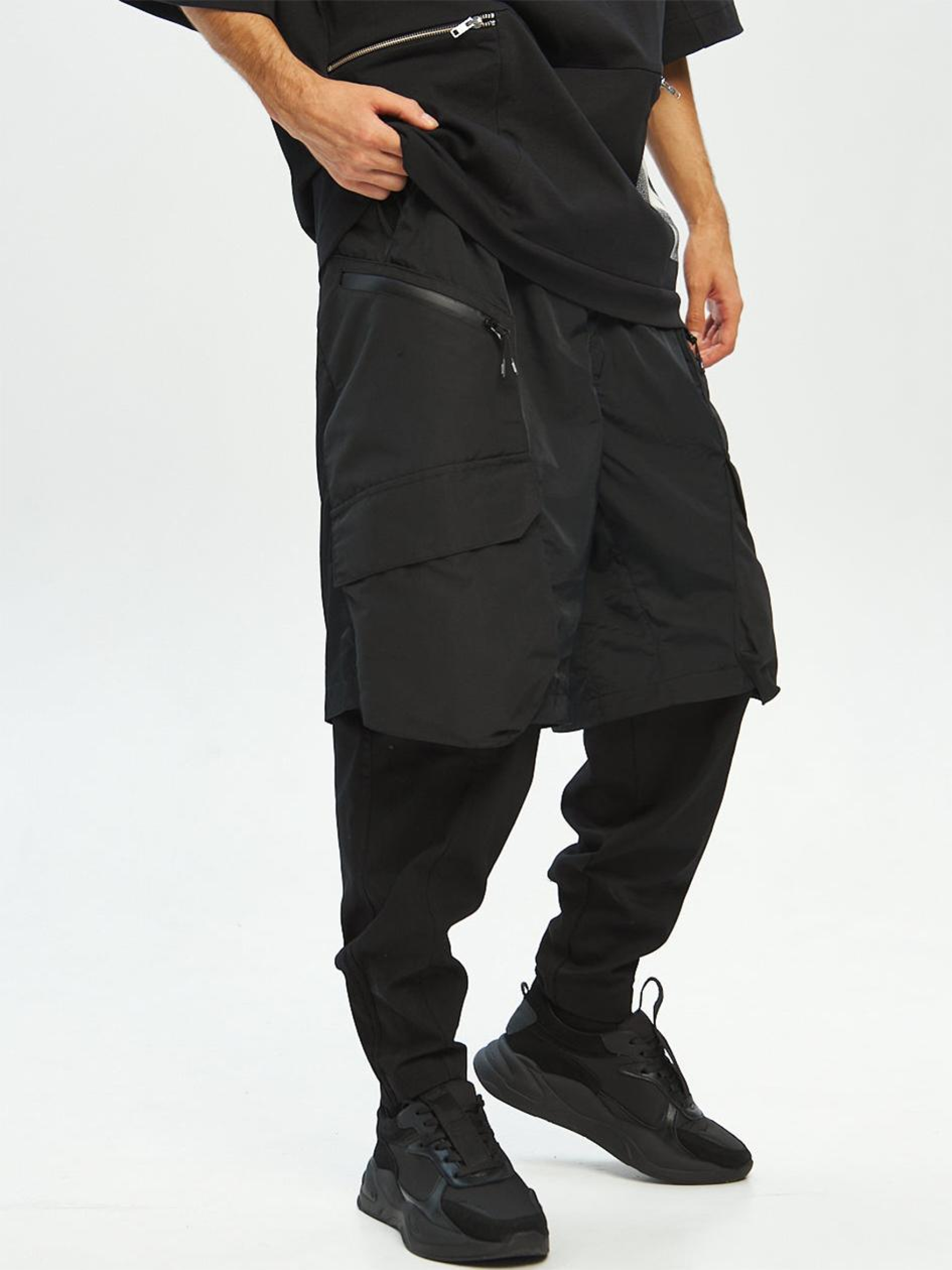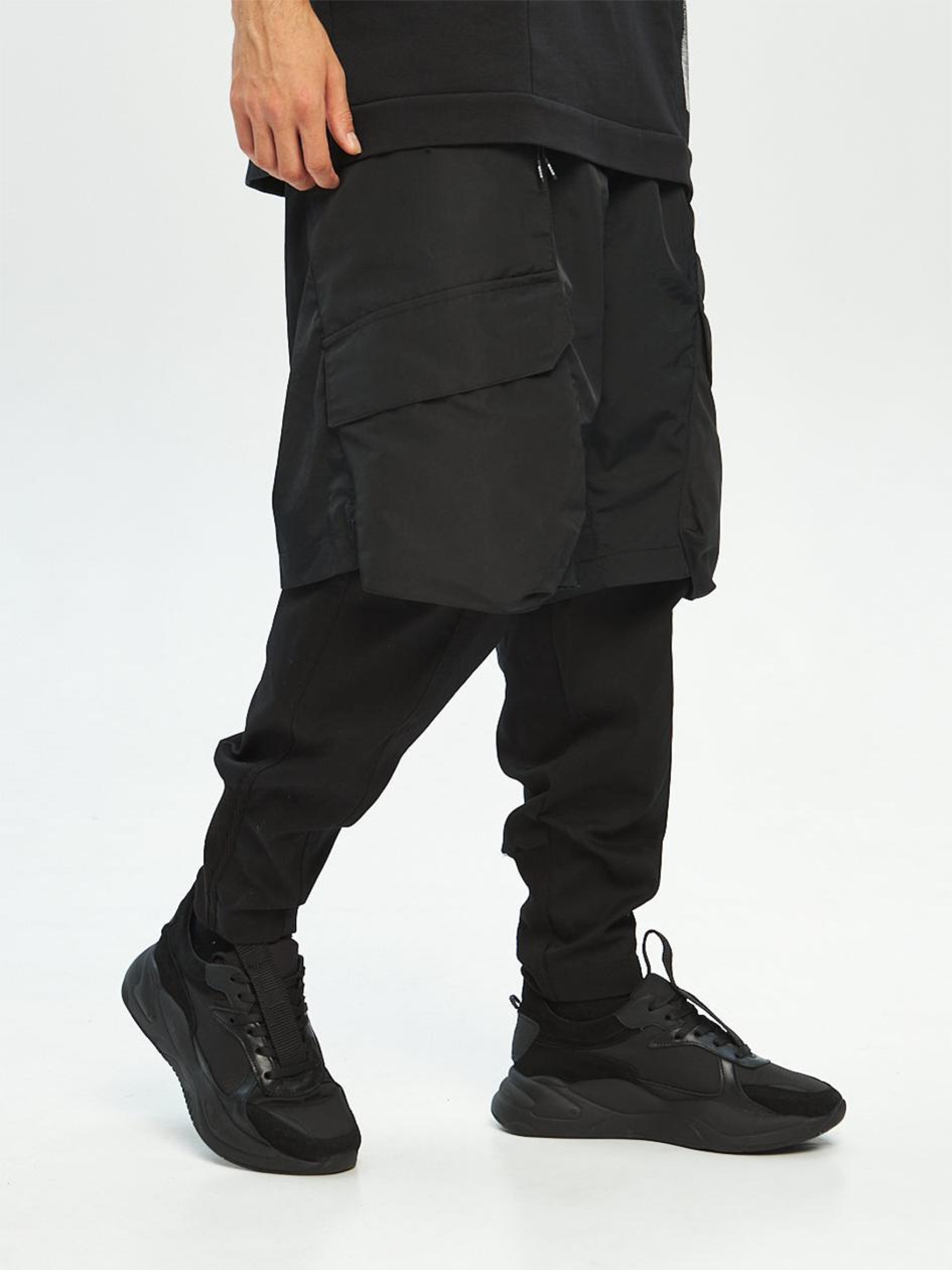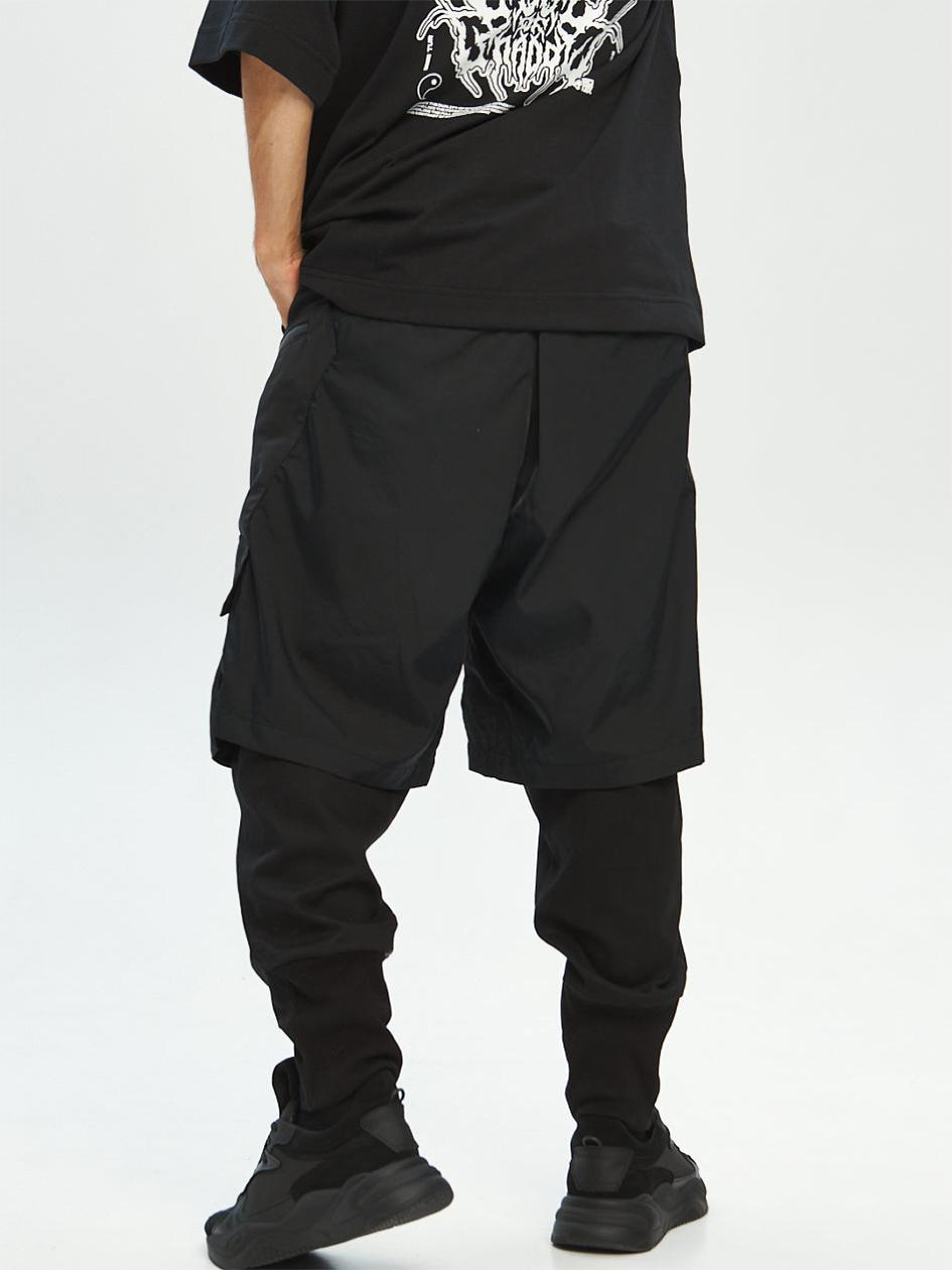 Состав ткани: 100% полиэстер. Особенности материалов и фурнитуры: Основная ткань — стрейч канвас: плотная, износостойкая, с умеренной эластичностью. Вставки из жатки добавляют рельефную структуру и усиливают зоны нагрузки. Манжеты выполнены из кашкорсе – эластичного трикотажа, хорошо облегающего запястье и не теряющего форму. Материалы подобраны для комфорта и долговечности в повседневном использовании. Фурнитура — молнии YKK, устойчивы к нагрузкам и многократному использованию. Ключевые особенности модели: Карго-штаны свободной посадки, состоящие из двух функциональных слоев: верх — шорты из жатой плащевки, низ — штанины из стрейч-кан. Сочетание материалов создает эффект многослойности и придает объем образа. Пояс классического типа, дополненный утяжкой из эластичной резинки для точной посадки. Большие накладные карманы по бокам – максимум пространства для вещей. Низ штанин — манжеты из рыбаны, плотно фиксирующие форму. Идеальный вариант для тех, кто ценит трансформативность и визуальный акцент. Сопутствующие товары: Футболка Шейд, Свитшот Никс Рекомендации по уходу: Машинная стирка при макс. 30 ºC Нельзя использовать отбеливатель Упражнение при макс. 150 ºC Химчистка запрещена< Можно сушить в сушилке при низкой температуре