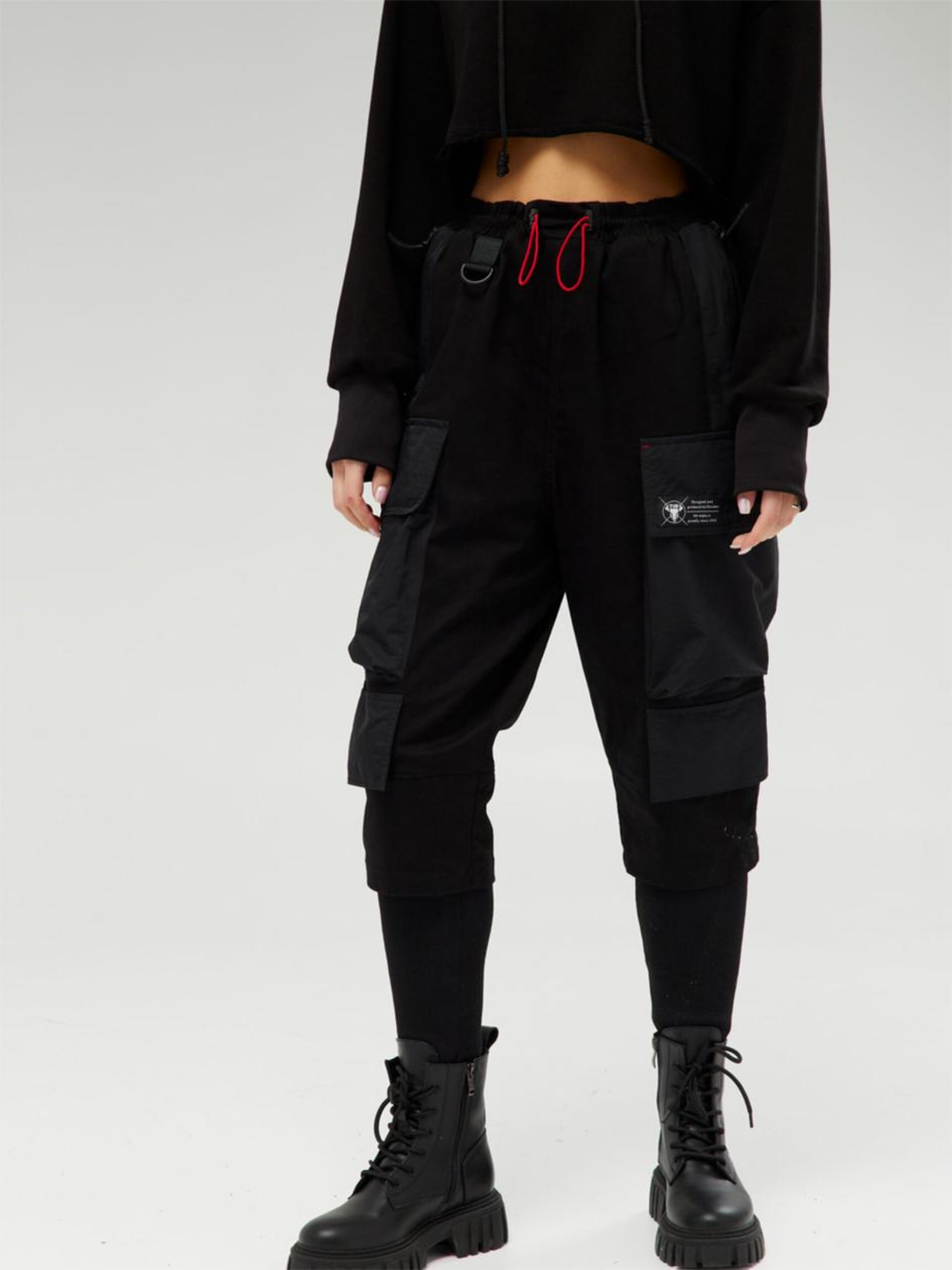 Состав ткани: Основная ткань: 95% коттон, 5% полиэстер. Вставки: жатка (100% полиэстер). Особенности материалов и фурнитуры: Плотный коттон с примесью полиэстера - дышащий, износостойкий материал, который сохраняет форму после стирки. Поверхность гладкая, неэластичная, подходит для повседневного использования. Вставки из жатки имеют рельефную фактуру, усиливают зоны нагрузки и добавляют технического акцента в дизайн изделия. Фурнитура - молнии YKK, устойчивые к нагрузкам и многократному использованию. Ключевые особенности модели: Брюки свободного кроя с низкой посадкой - о комфорте и детализации. Высокие манжеты плотно фиксируют посадку, а пояс с резинкой и дополнительной красной затяжкой добавляет цветовой акцент и настроение. Справа под поясом - лента с полукольцом для фиксации ключей, кошелька или сайфа. Функциональность: шесть карманов - два брючных, два боковых накладных, два накладных сзади. Красные декоративные закрепки на карманах и резинка на поясе добавляют характера в деталях. Идеальный баланс между утилитарностью и выразительностью. Сопутствующие товары: футболка Киоко, анорак Кадзима, кошелек Сайфу. Рекомендации по уходу: Машинная стирка при макс. 30 ºC Нельзя использовать отбеливатель Глажка при макс. 150 ºC Химчистка запрещена Можно сушить в сушилке при низкой температуре