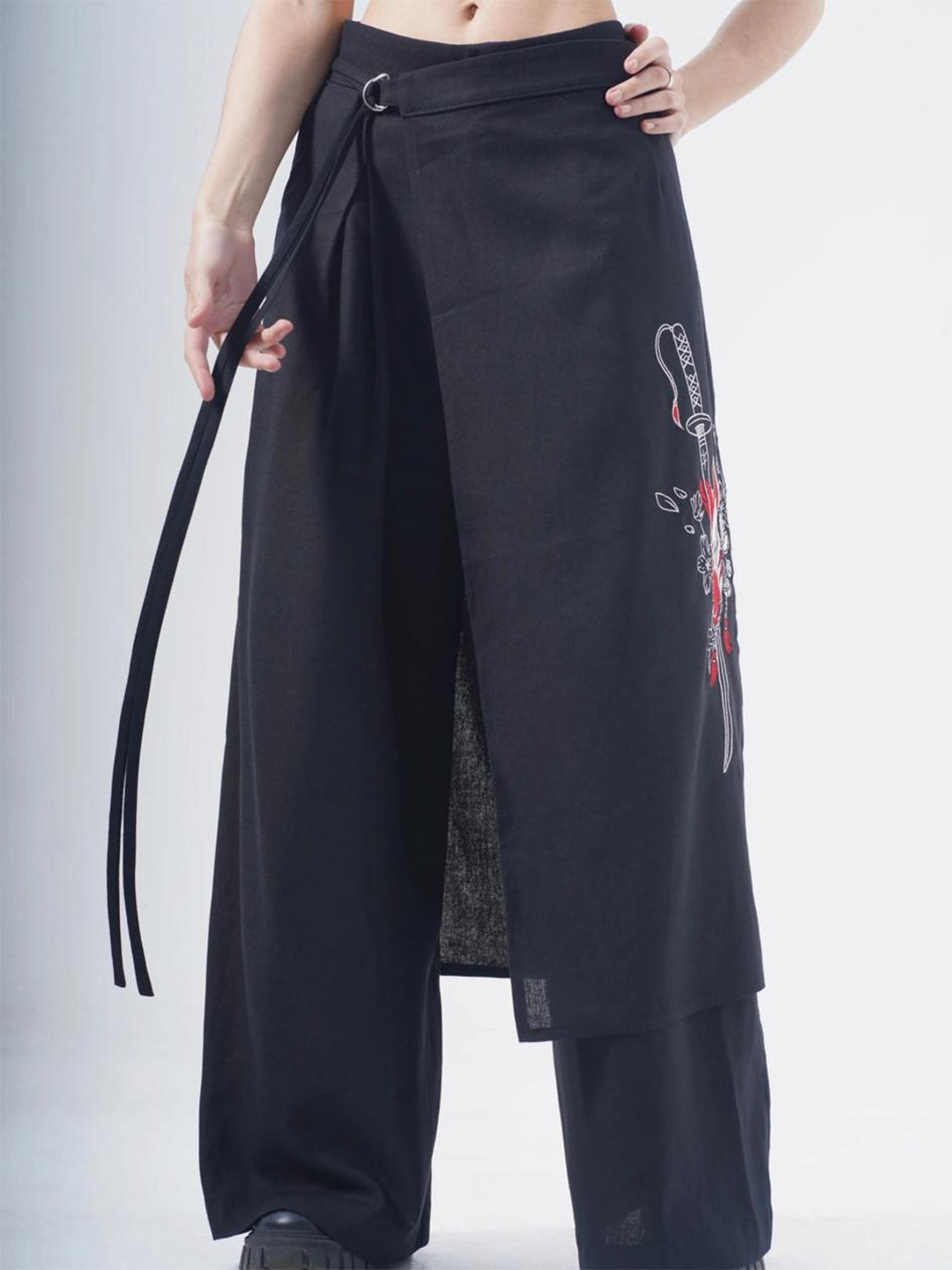 Состав ткани: 53% лен, 47% хлопок. Особенности материалов и фурнитуры: Лен - натуральный материал с приятной текстурой, дышит и обеспечивает комфорт в жаркую погоду. Оснащено молнией YKK - фурнитурой, которая отличается надежностью и износостойкостью. Оснащен молнией YKK - фурнитурой, которая отличается надежностью и износостойкостью. Ключевые особенности модели: Брюки свободного кроя из льна, со встречными складами спереди. Накладная юбка с вышивкой в японском стиле по боковому шву. Изделие имеет два косых кармана сверху и шлейки для пояса. Идеально сочетаются с кимоно «Хидеко». Рекомендации по уходу: Машинная стирка при макс. 30 ºC Нельзя использовать щелочные средства / отбеливатель Глажка при макс. 110 ºC Не использовать сушилку