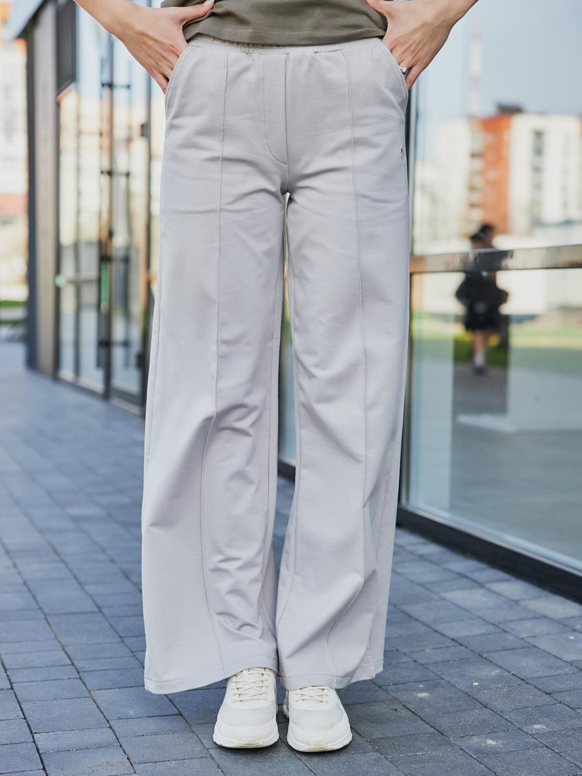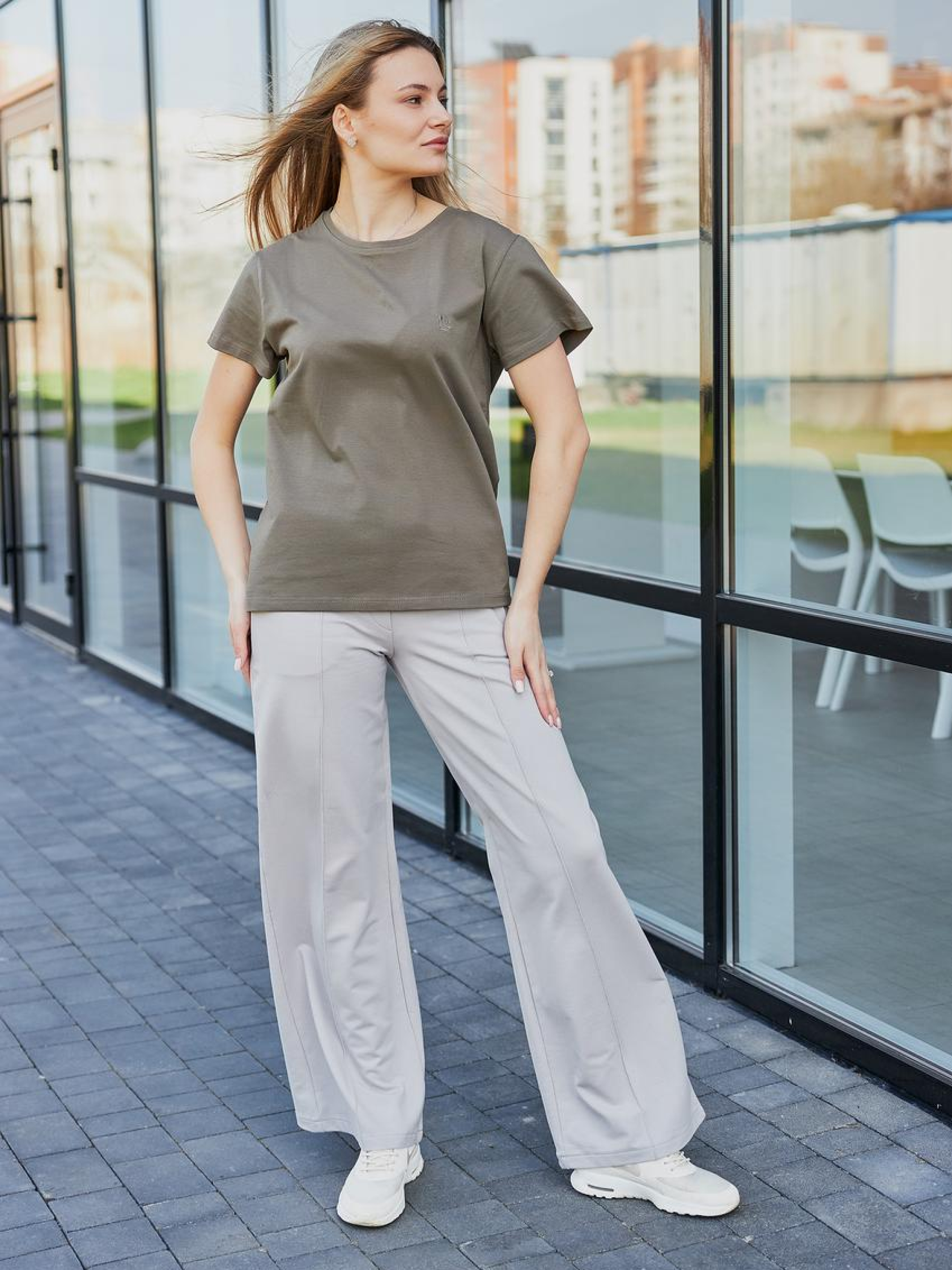 Женские брюки палаццо из двунитки — лёгкость, свобода и стиль в каждом движении Стильные широкие брюки фасона палаццо — это модная база для комфортных и женственных образов. Изготовлены из приятной к телу двунитки, они обеспечивают мягкость, воздухопроницаемость и свободу движений. Идеальны для весны, осени и прохладного лета. Брюки имеют прямой крой с расклёшиванием от бедра, визуально удлиняют ноги и делают силуэт более утончённым. Эластичный пояс с завязками легко подстраивается под фигуру, обеспечивая удобную посадку без давления. Палаццо прекрасно сочетаются с футболками, свитшотами, кроп-топами или жакетами — как для городского casual, так и для расслабленного athleisure. Преимущества: Мягкая, дышащая двунитка — комфорт при движении Силуэт палаццо — визуально удлиняет ноги Эластичный пояс — удобная посадка Универсальный стиль — легко сочетается с любым верхом Подходят для прогулок, дома, путешествий и повседневной носки Женские палаццо из двунитки — свобода, которая выглядит стильно!