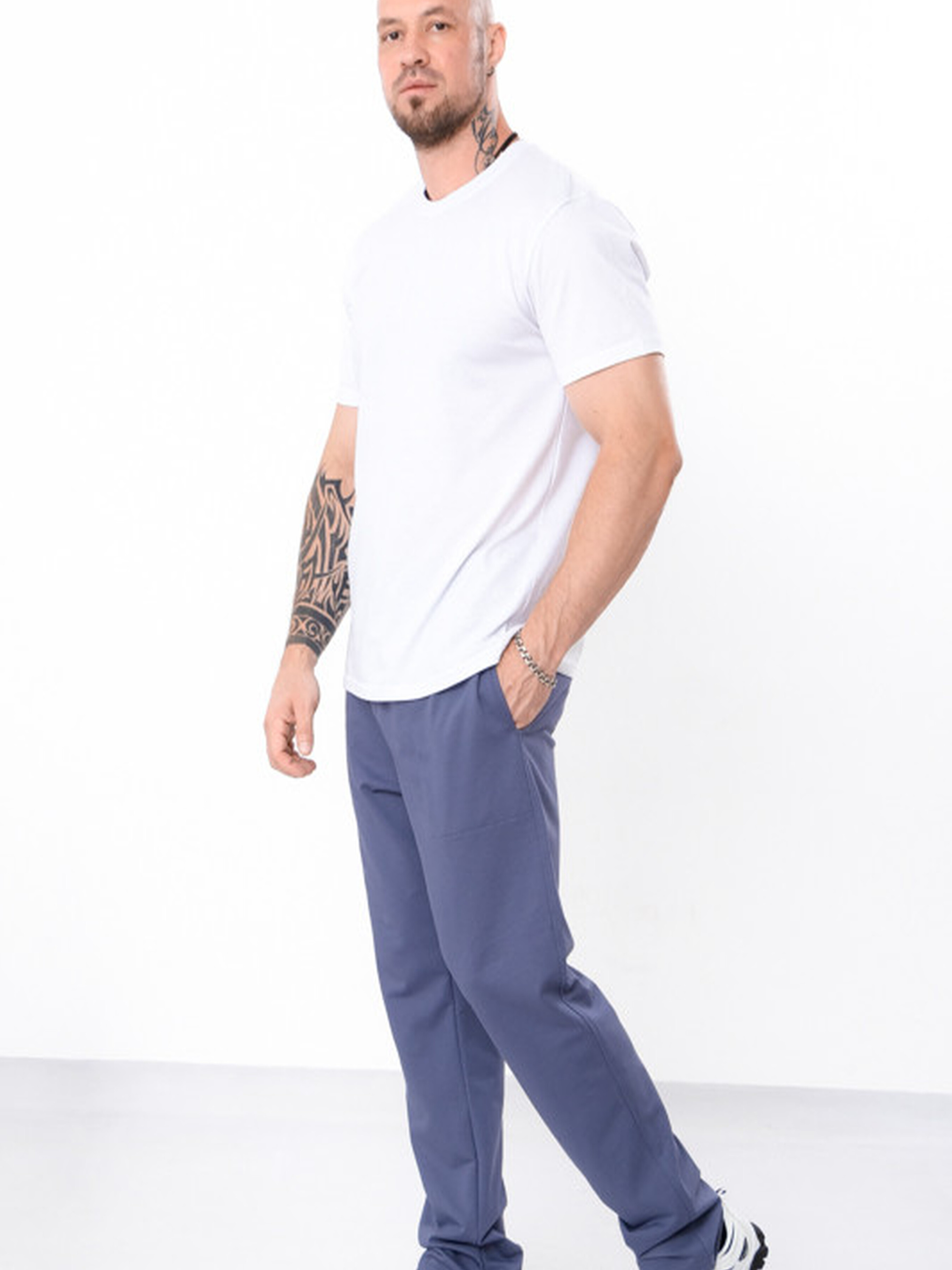 Практичні чоловічі штани від бренду HC виготовлені з м’якої двонитки — ідеальний вибір для активного щоденного використання. Вони забезпечують комфорт, не обмежують рухів і чудово тримають форму завдяки щільному трикотажу. Штани мають еластичний пояс зі шнурком для зручної посадки на фігурі. Прямий крій по всій довжині додає універсальності, а зручні кишені з боків підвищують функціональність моделі. Низ штанів оформлений манжетою з трикотажної резинки, що допомагає зберігати тепло.