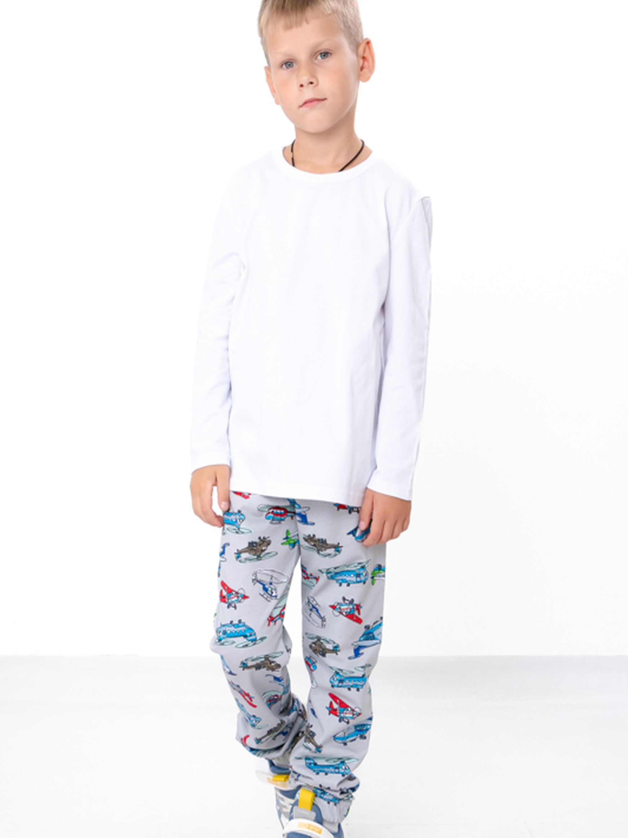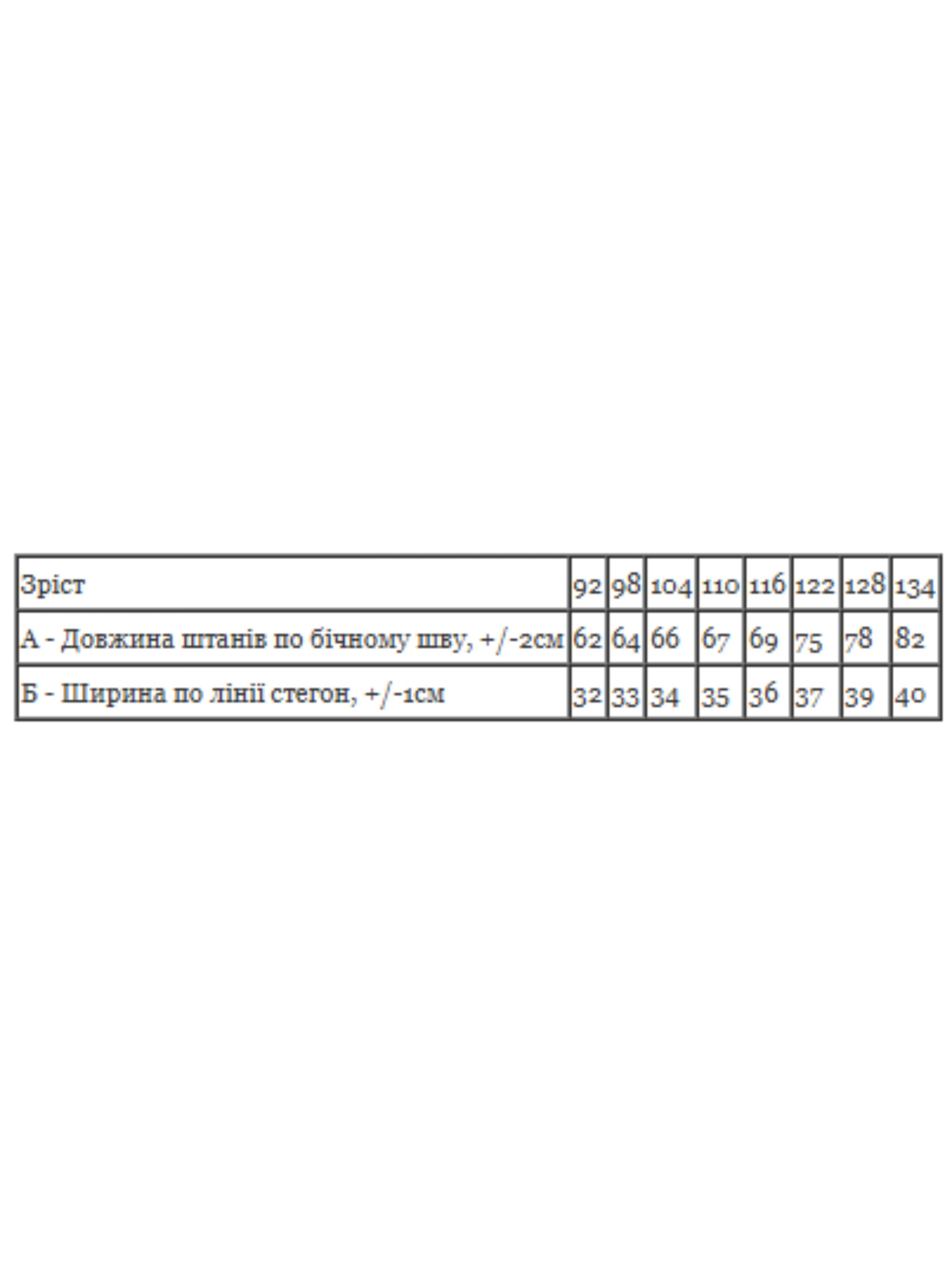 Полотно: начос набивний Склад полотна: 100% бавовна Зріст: 98-134 Теплі штани для хлопчика - ідеальний вибір для холодної пори року. Виготовлені з високоякісних матеріалів, ці штани забезпечують комфорт і тепло під час прогулянок або активних ігор на свіжому повітрі. Модний дизайн і зручний крій роблять їх чудовим доповненням до зимового гардеробу. Штани легко поєднуються з різними верхами, що дозволяє створювати стильні образи. Купуйте теплі штани для хлопчика онлайн за вигідною ціною та забезпечте своєму синові комфорт і стиль.