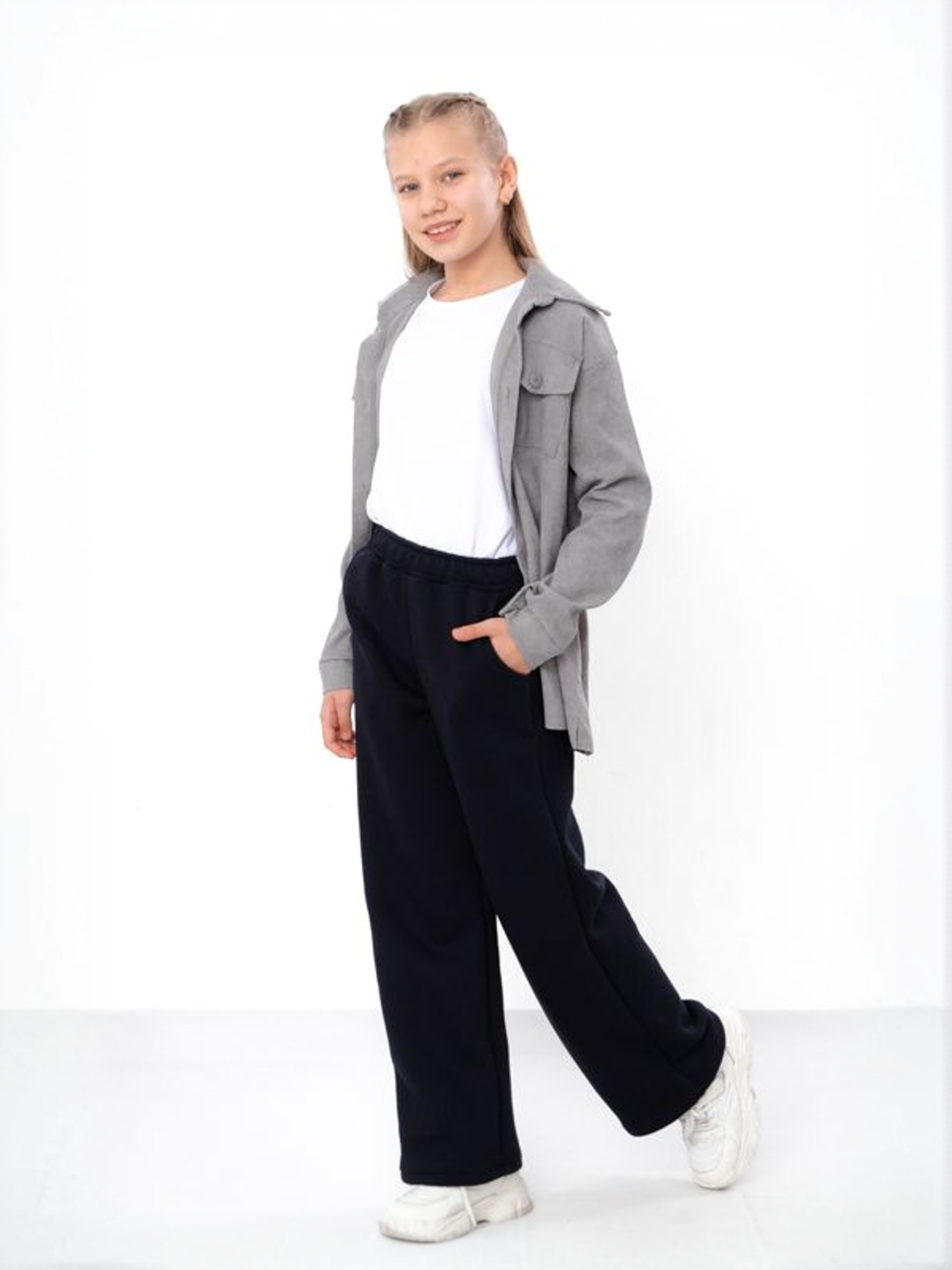 Полотно: трьохнитка однотонна Склад полотна: 80% бавовна, 20% поліестер Зріст: 140-170 Штани-палаццо для дівчинки з полотна трьохнитка — стильний і комфортний варіант для підлітків. Вільний прямий крій із розкльошенням від стегна створює елегантний силует та забезпечує свободу рухів. Однотонний дизайн легко поєднується з футболками, світшотами, сорочками чи худі, дозволяючи формувати як повсякденні, так і більш акуратні образи для навчання чи зустрічей. Тканина трьохнитка міцна, зносостійка, добре тримає форму і приємна до тіла. Еластичний пояс забезпечує зручну посадку, а практичність моделі робить її ідеальною для щоденного носіння. Штани-палаццо — універсальна база підліткового гардеробу.