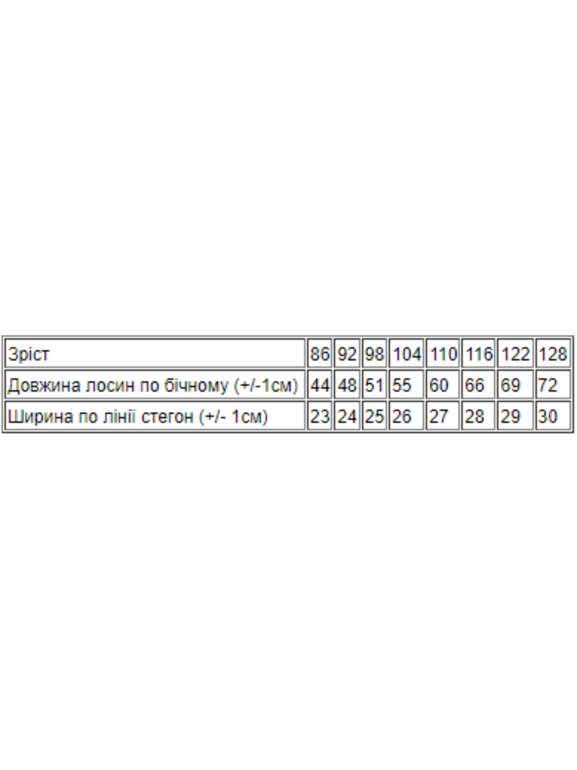Полотно: трьохнитка на хутрі Склад полотна: 60% бавовна 35% поліестер 5% еластан Зріст: 86-122 Лосини від знаменитої торгової марки Носи Своє мають ряд безперечних переваг які забезпечать їм звання незамінної базової речі для кожної модниці. Лосини універсальні і практичні зручні і комфортні тому будуть доречні практично для будь-яких приводів. Бренд дбає про якість кожної створюваної речі тому стежить за всіма етапами виробництва. Навіть базові лосини створені з урахуванням всіх стандартів щоб забезпечити ідеальну посадку безпеку міцність і довговічність. Для пошиття моделі використовувалася тканина з комбінованим складом: 60% бавовни і 40% еластану. Матеріал добре тягнеться зберігаючи при цьому щільність і міцність. Він м'який і приємний на дотик. Вшита еластична резинка виконує функцію пояса надійно утримуючи виріб на тілі дитини навіть при високій фізичній активності. Тканина володіє гігроскопічністю і повітропроникністю тому дитині завжди буде комфортно. Практичні і зручні лосини гармонійно і ефектно доповнять багато нарядів і образів. Щоб Ваша улюблена річ надовго зберегла свій естетичний зовнішній вигляд не забувайте про правильний догляд за трикотажем. Кращий спосіб для прання трикотажу - ручний. Якщо перете в пральній машинці скористайтеся «делікатним режимом». Оптимальний температурний режим - 30-40 градусів. Періть трикотажні вироби м'якими порошками або гелями з додаванням кондиціонера. Також пам'ятайте що сушити трикотаж на мотузці - зась! Дотримуючись цих нехитрих правил Ви продовжите життя трикотажним речам зберігши їх м'якість і яскравість кольорів.
