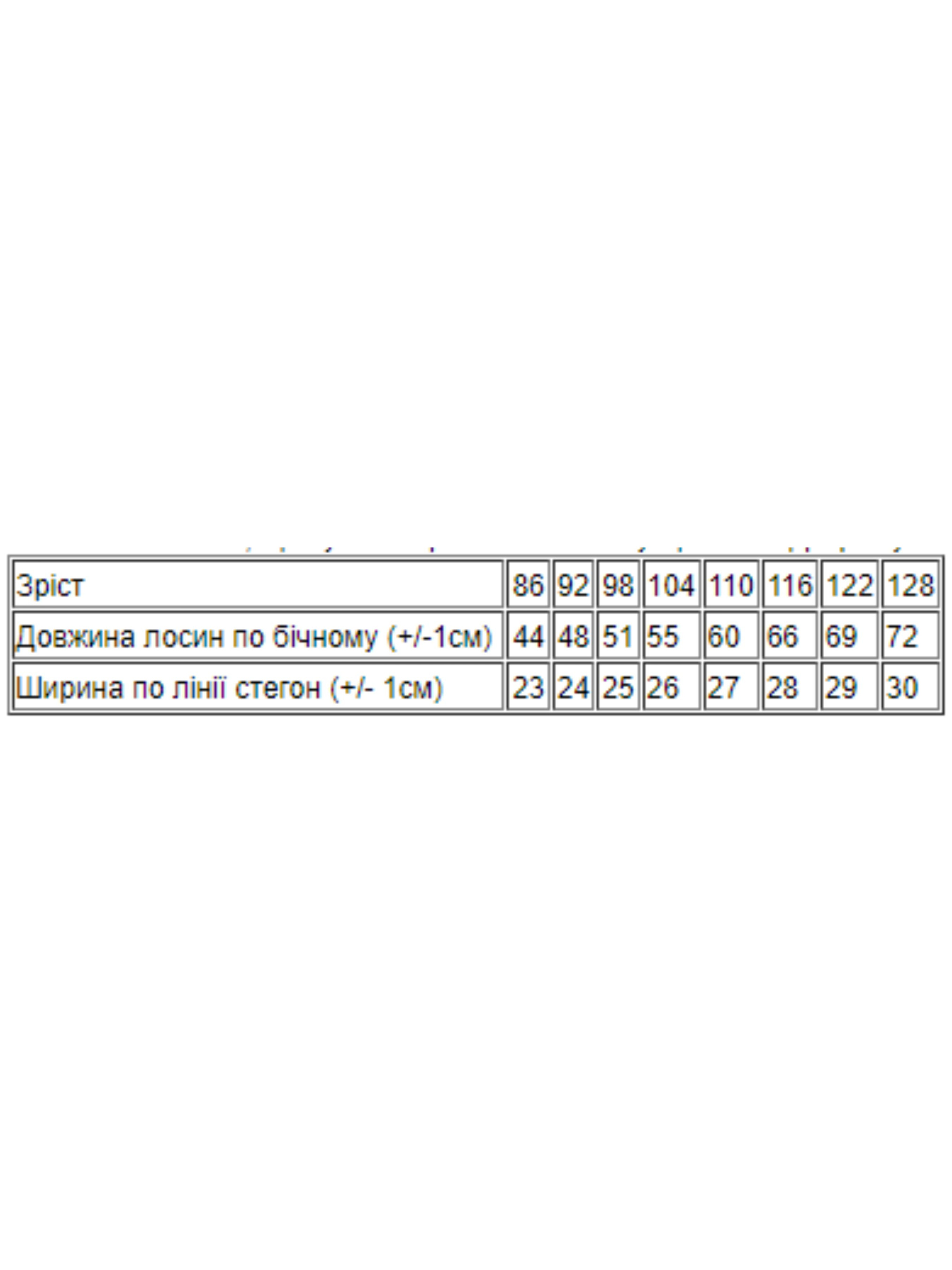 Полотно: трьохнитка на хутрі Склад полотна: 60% бавовна 35% поліестер 5% еластан Зріст: 86-122 Лосини від знаменитої торгової марки Носи Своє мають ряд безперечних переваг які забезпечать їм звання незамінної базової речі для кожної модниці. Лосини універсальні і практичні зручні і комфортні тому будуть доречні практично для будь-яких приводів. Бренд дбає про якість кожної створюваної речі тому стежить за всіма етапами виробництва. Навіть базові лосини створені з урахуванням всіх стандартів щоб забезпечити ідеальну посадку безпеку міцність і довговічність. Для пошиття моделі використовувалася тканина з комбінованим складом: 60% бавовни і 40% еластану. Матеріал добре тягнеться зберігаючи при цьому щільність і міцність. Він м'який і приємний на дотик. Вшита еластична резинка виконує функцію пояса надійно утримуючи виріб на тілі дитини навіть при високій фізичній активності. Тканина володіє гігроскопічністю і повітропроникністю тому дитині завжди буде комфортно. Практичні і зручні лосини гармонійно і ефектно доповнять багато нарядів і образів. Щоб Ваша улюблена річ надовго зберегла свій естетичний зовнішній вигляд не забувайте про правильний догляд за трикотажем. Кращий спосіб для прання трикотажу - ручний. Якщо перете в пральній машинці скористайтеся «делікатним режимом». Оптимальний температурний режим - 30-40 градусів. Періть трикотажні вироби м'якими порошками або гелями з додаванням кондиціонера. Також пам'ятайте що сушити трикотаж на мотузці - зась! Дотримуючись цих нехитрих правил Ви продовжите життя трикотажним речам зберігши їх м'якість і яскравість кольорів.