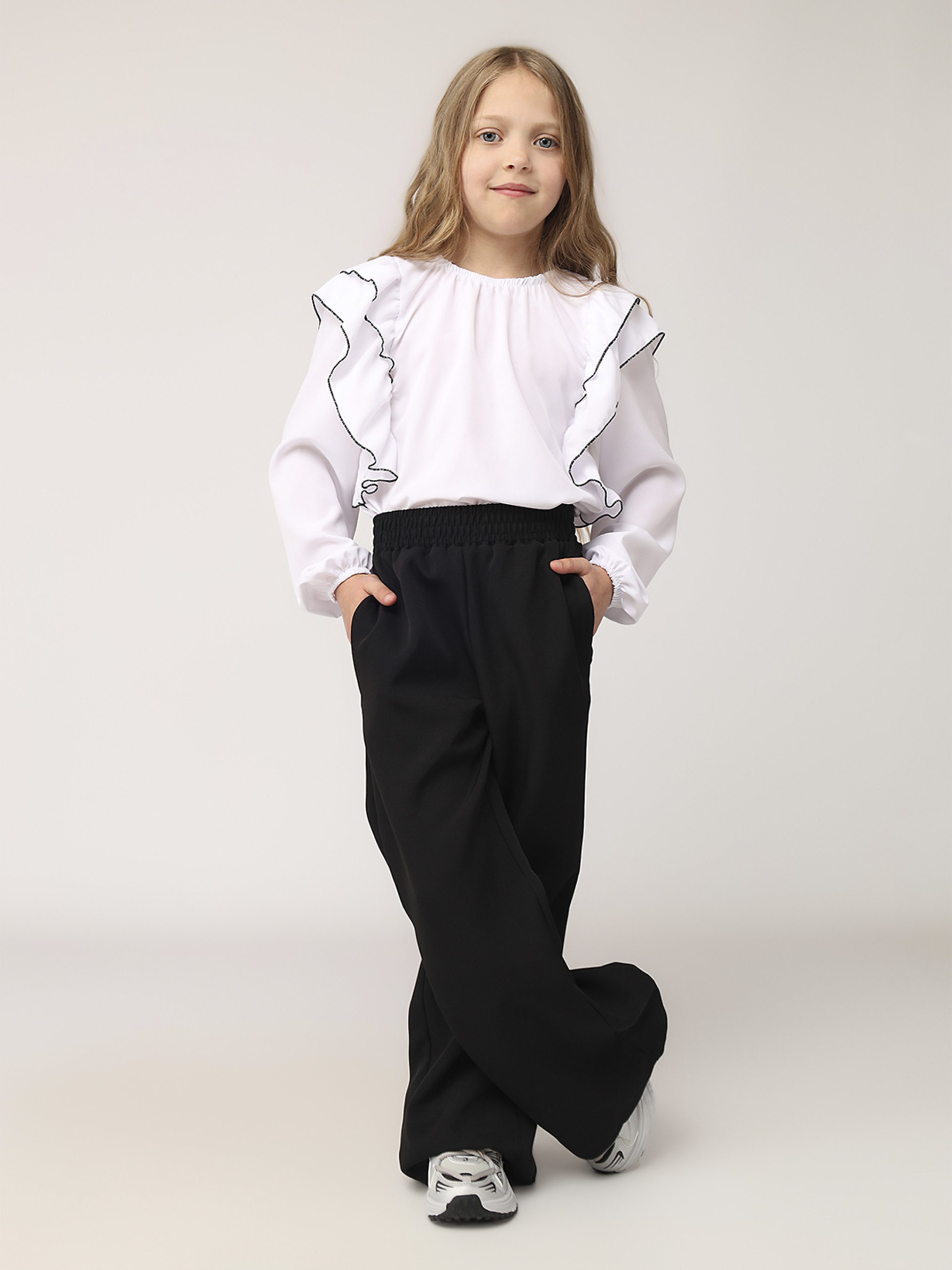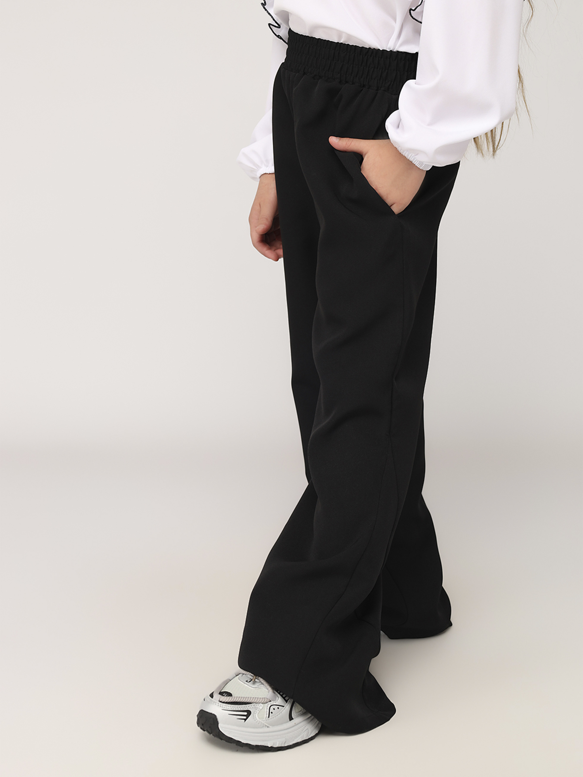 Штаны клеш для девочки – настоящая находка для походов в школу, прогулок или встреч с друзьями, ведь позволяют двигаться свободно и чувствовать себя особенной. Легкая ткань нежно обволакивает, создавая эффектный силуэт, а универсальный дизайн гармонично сочетается с блузами, рубашками и кедами. Особенности изделия: Цвет: черный, однотонный. Материал изготовления: костюмная ткань. Состав: 50% шерсть, 30% хлопок, 20% полиэстер. Фасон штанов: клеш. Размерный ряд: 134 - 152. Сезон: всесезонный. Страна производитель: Украина.