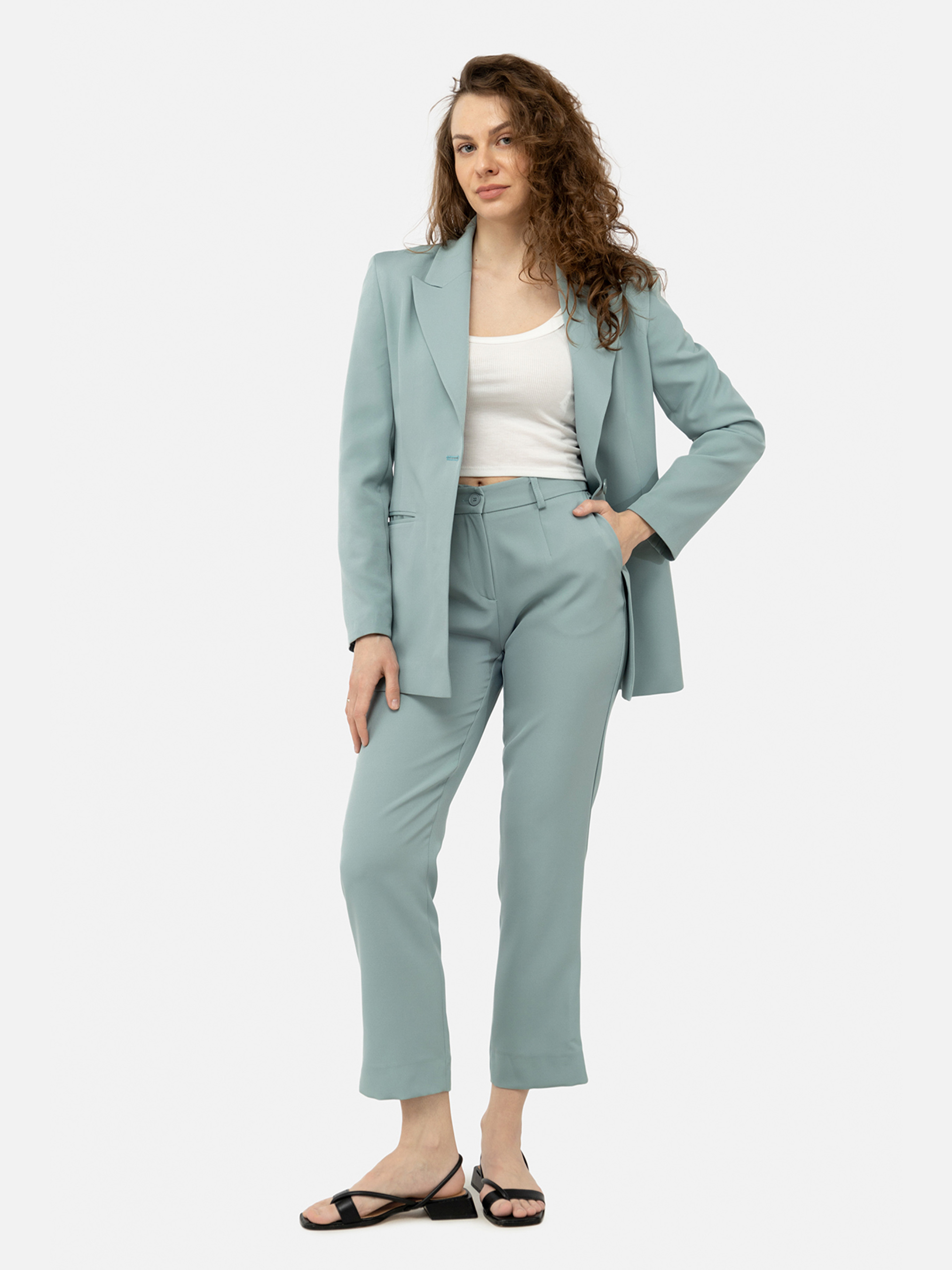 Женские брюки – это стильная и практичная одежда, которая станет незаменимой частью гардероба любой женщины. Изготовлены из материала – костюмная ткань. Особенности: Цвет: мятный Средняя посадка Зауженные Наличие карманов Состав: 90% полиэстер, 5% вискоза, 5% лайкра. Параметры модели: Рост: 174 см Размер: М укр/44 Страна производитель: Турция