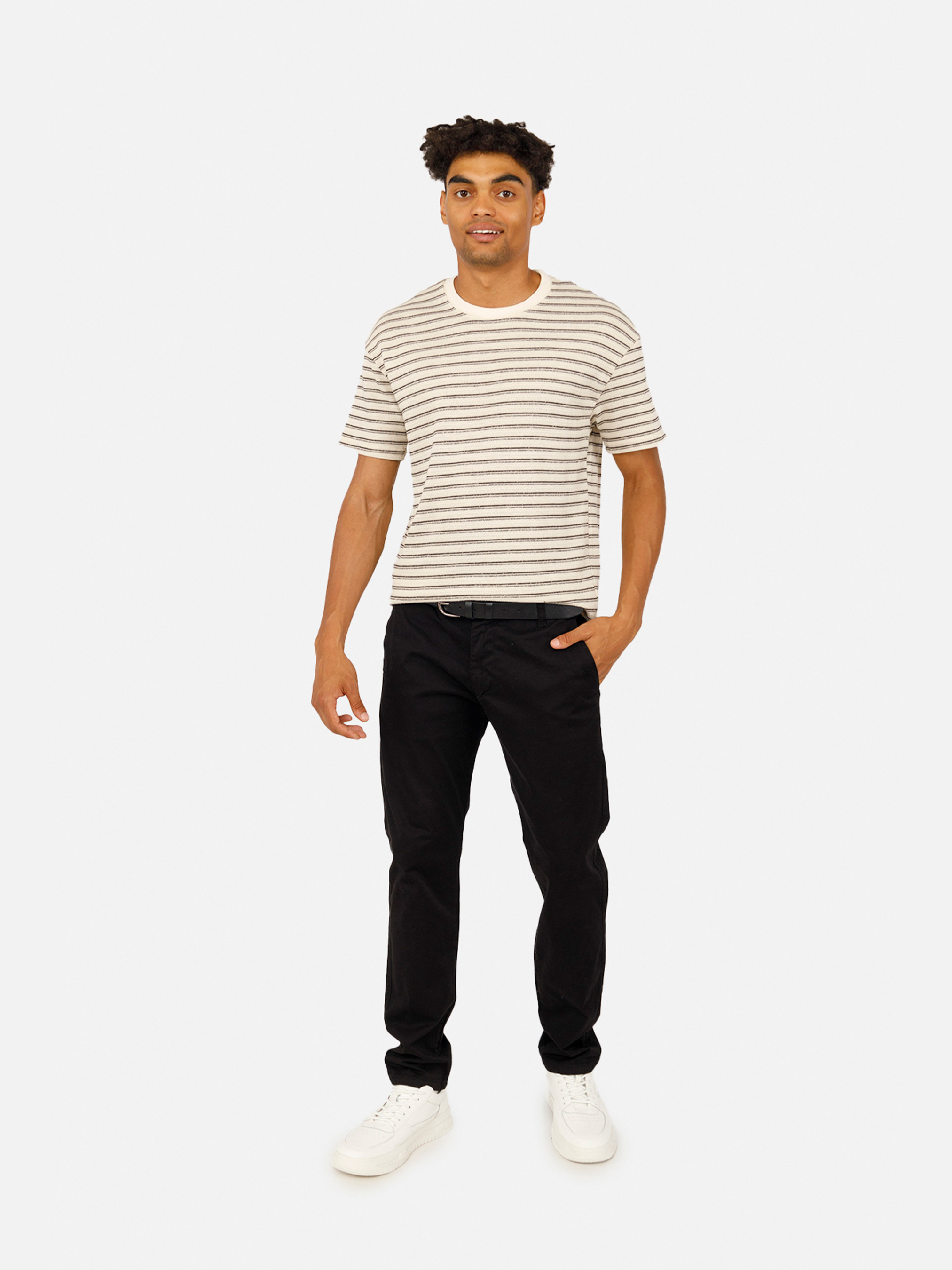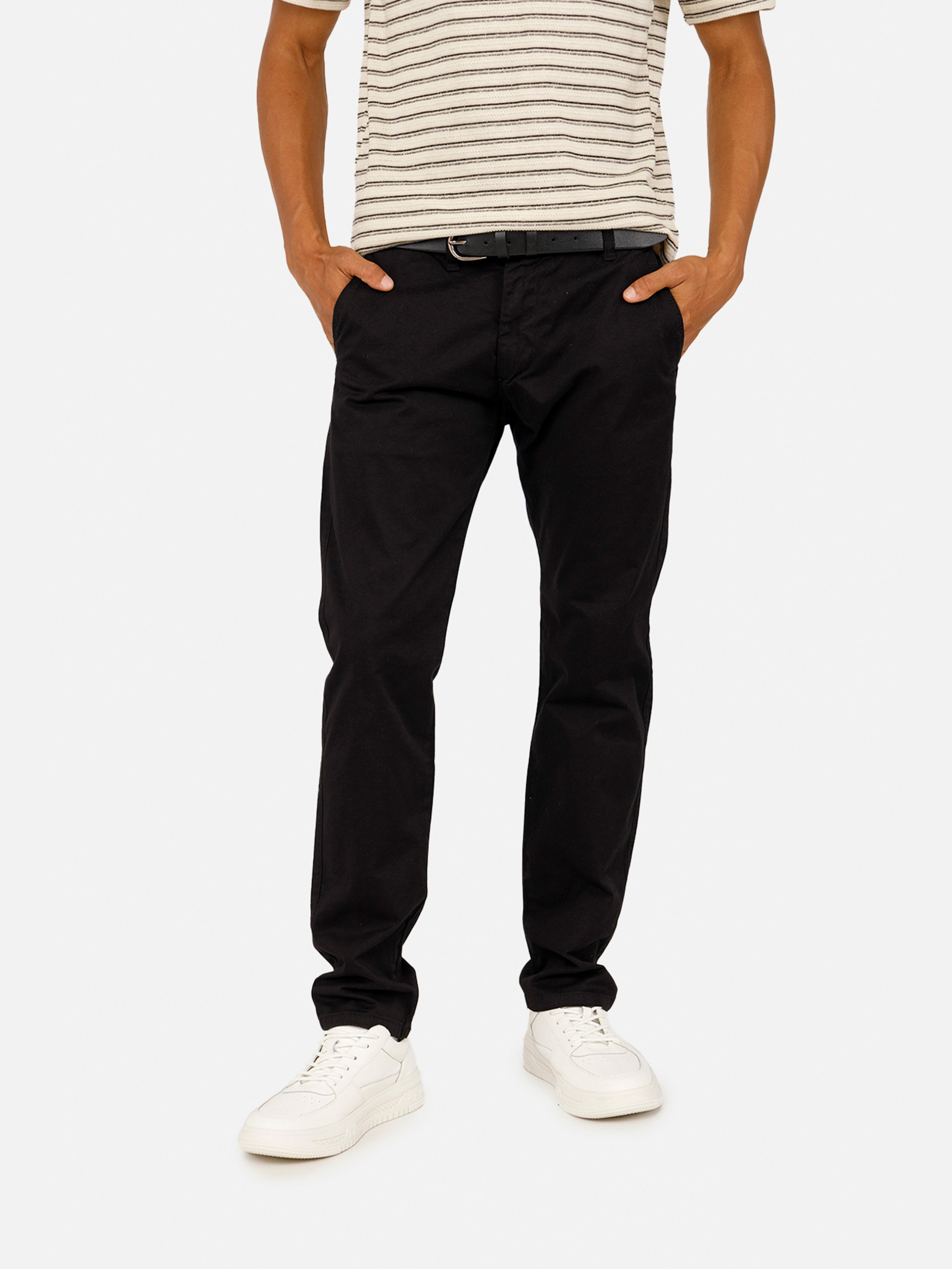 Мужские брюки, чино – это современный и удобный элемент гардероба, сочетающий в себе стиль спортивных штанов и повседневной одежды. Изготовленные из качественных и дышащих материалов штаны обеспечивают максимальный комфорт и свободу движений в течение всего дня. Они идеально подходят для активного отдыха, прогулок или даже непринужденных встреч с друзьями. Мягкая ткань приятна на ощупь и обеспечивает отличную воздухопроницаемость, что особенно важно при физической активности. Брюки имеют функциональные боковые карманы, позволяющие удобно хранить мелочи – ключи, телефон. Стильный дизайн с минималистичными деталями делает брюки универсальными: их легко сочетать с футболками, свитшотами, худыми или куртками, создавая стильные образы на каждый день. Прочные швы и качественная фурнитура обеспечивают долговечность брюк, даже при частой носке и стирке. Мужские прямые штаны – это сочетание стиля, комфорта и практичности, которое станет отличным выбором для мужчин, которые ценят свободу движений и современный вид. Независимо от того, спортзал, прогулка по городу или просто отдых дома, джогеры подарят вам комфорт и уверенность в каждом шаге. Особенности: Цвет брюк: черный, однотонный. Материал изготовления: твил. Состав: 97% хлопок, 3% лайкра. Есть карманы для хранения разных безделушек. Размерный ряд: 31 – 42. Сезон: демисезон. Параметры модели: Рост: 183 сантиметра. Размер на модели: 33 /украинский – 50. Страна производитель: Турция.
