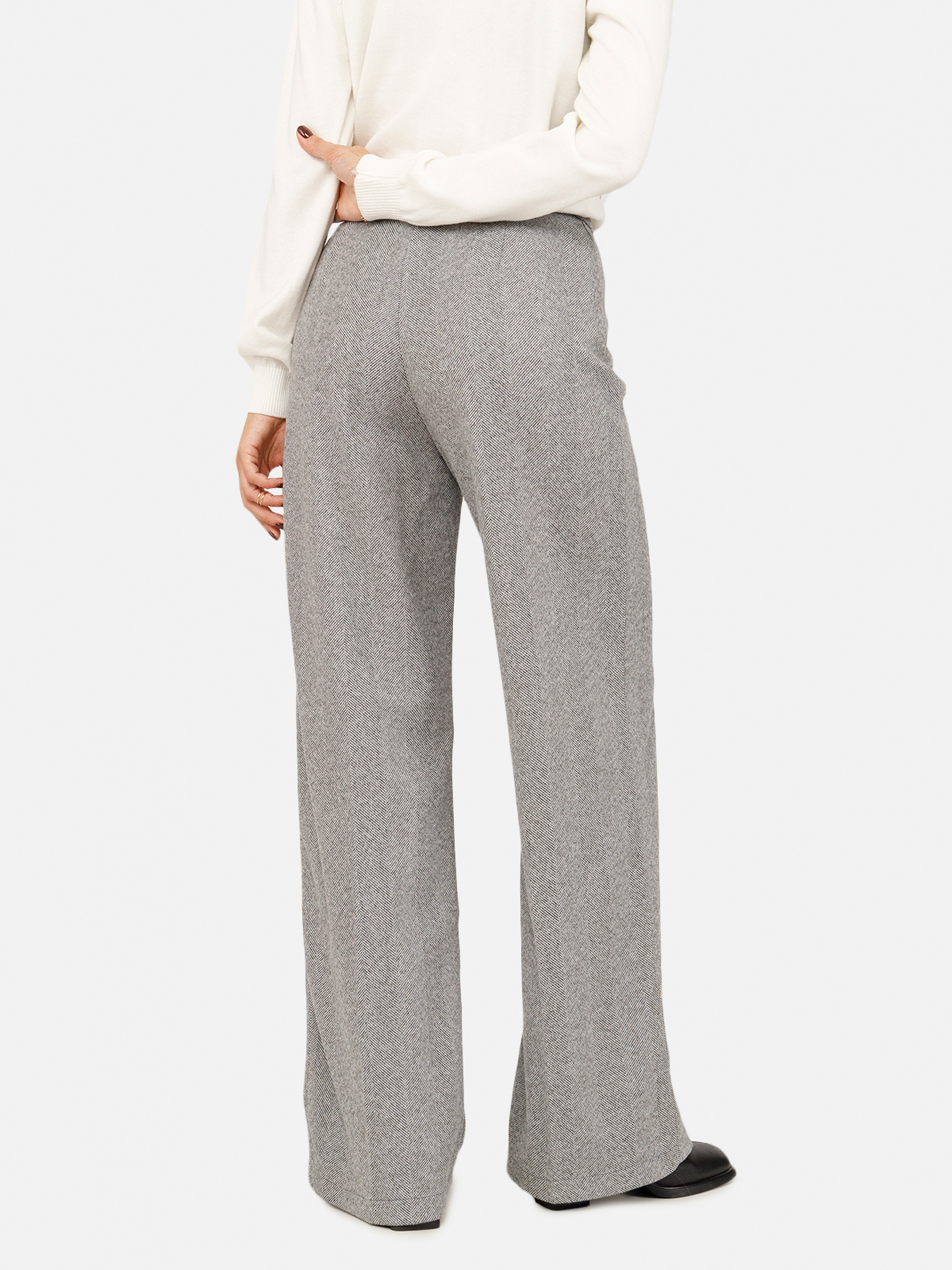 Женские широкие брюки - это стильный и комфортный элемент гардероба, который идеально подходит для любого события. Свободный крой обеспечивает свободу движений и легкость, что делает эти брюки отличным выбором для повседневной носки или работы. Изготовленные из легкой и приятной на ощупь ткани, они позволяют коже «дышать» и чувствовать комфорт в течение всего дня. Благодаря своему универсальному дизайну, эти брюки можно легко сочетать с блузами, рубашками или футболками, создавая различные образы. Это отличный вариант для Особенности брюк: Цвет: серый, однотонный. Материал изготовления: костюмная ткань. Состав: 55 % полиэстер, 40 % вискоза, 5 % эластан. Посадка: высокая. Тип штанины: широкая. Параметры модели: Рост: 170 сантиметров. Размер на модели: 46. Страна производитель: Украина.