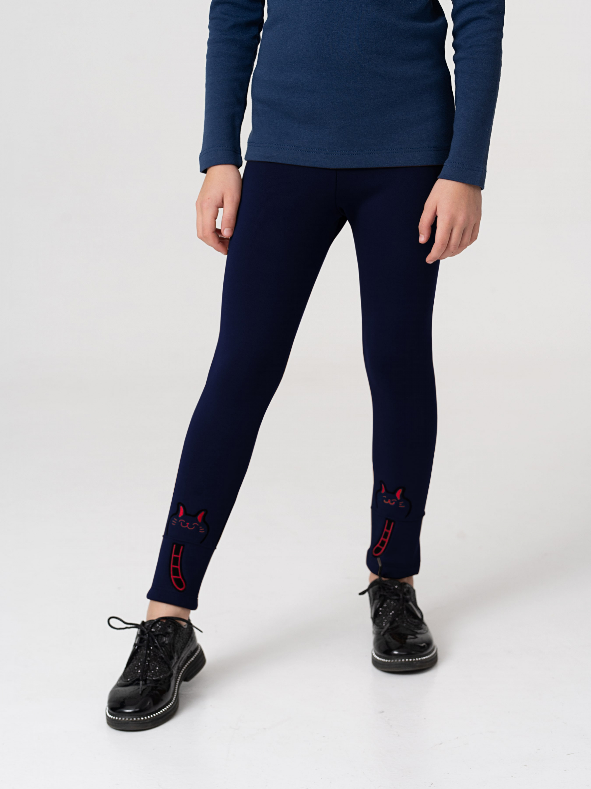 Подробности модели: леггинсы синего цвета. Средняя талия по высоте. Пояс на резинке. Без карманов и застежек. Декор – аппликация с изображением котенка. Утеплитель – искусственный мех. Сезон: холодная осень-зима. Материал: органический котон высочайшего качества!