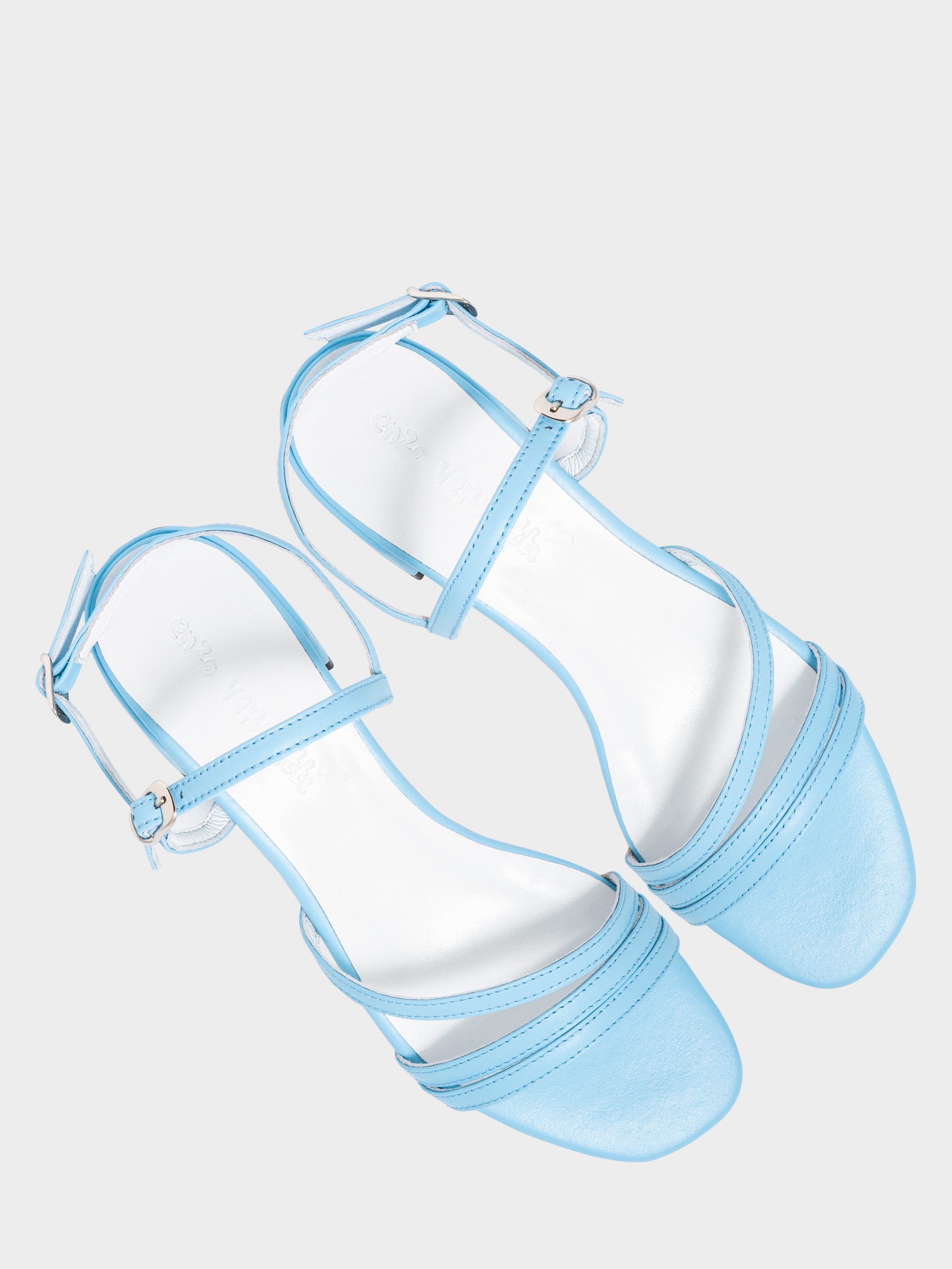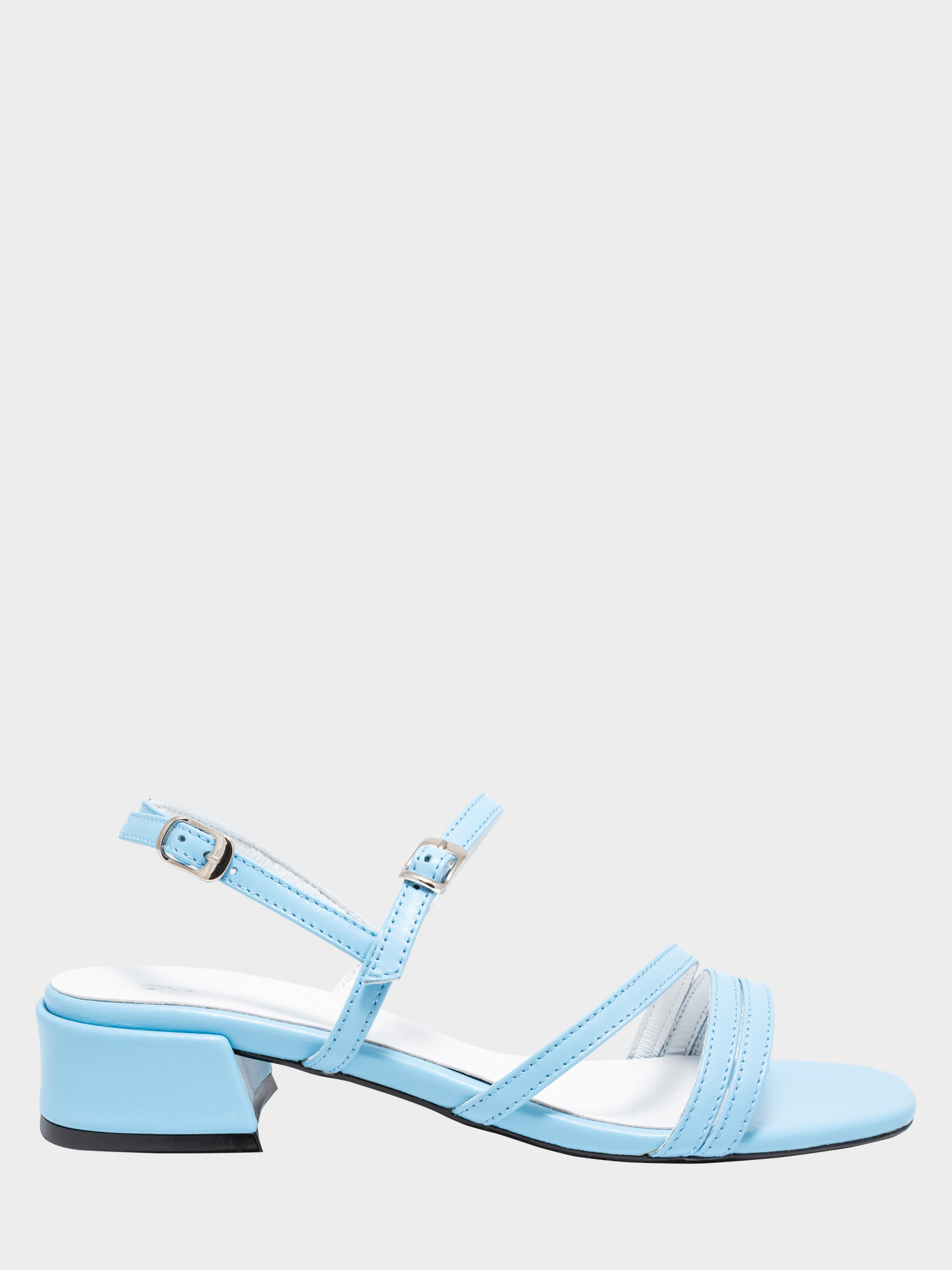 Босоножки из натуральной мягкой кожи голубого цвета. На ноге фиксируется в двух местах – на пятке и подъеме, что удобно для разных полнот. Модель рассчитана на средний подъем. Стелька имеет силиконовое основание. Высота каблука 3 см. Открытый слегка приквадренный носок. Размерная сетка по стельке: 35 г – 22,5 см, 36 г – 23,3 см, 37 г – 24 см, 38 г – 24,6 см, 38 г 24,6 см, 39 г 25,2 см, 40 р – 26 см.
