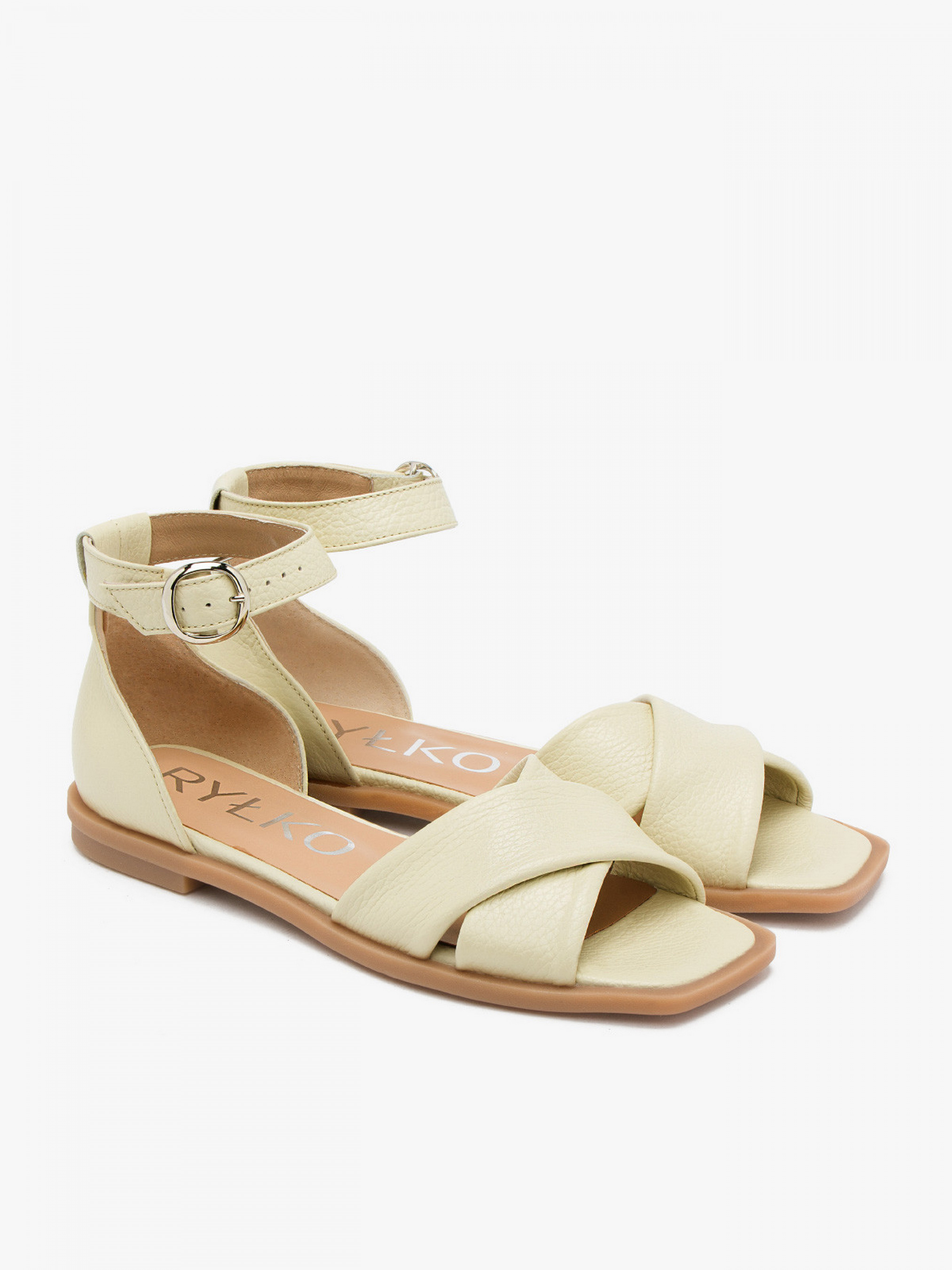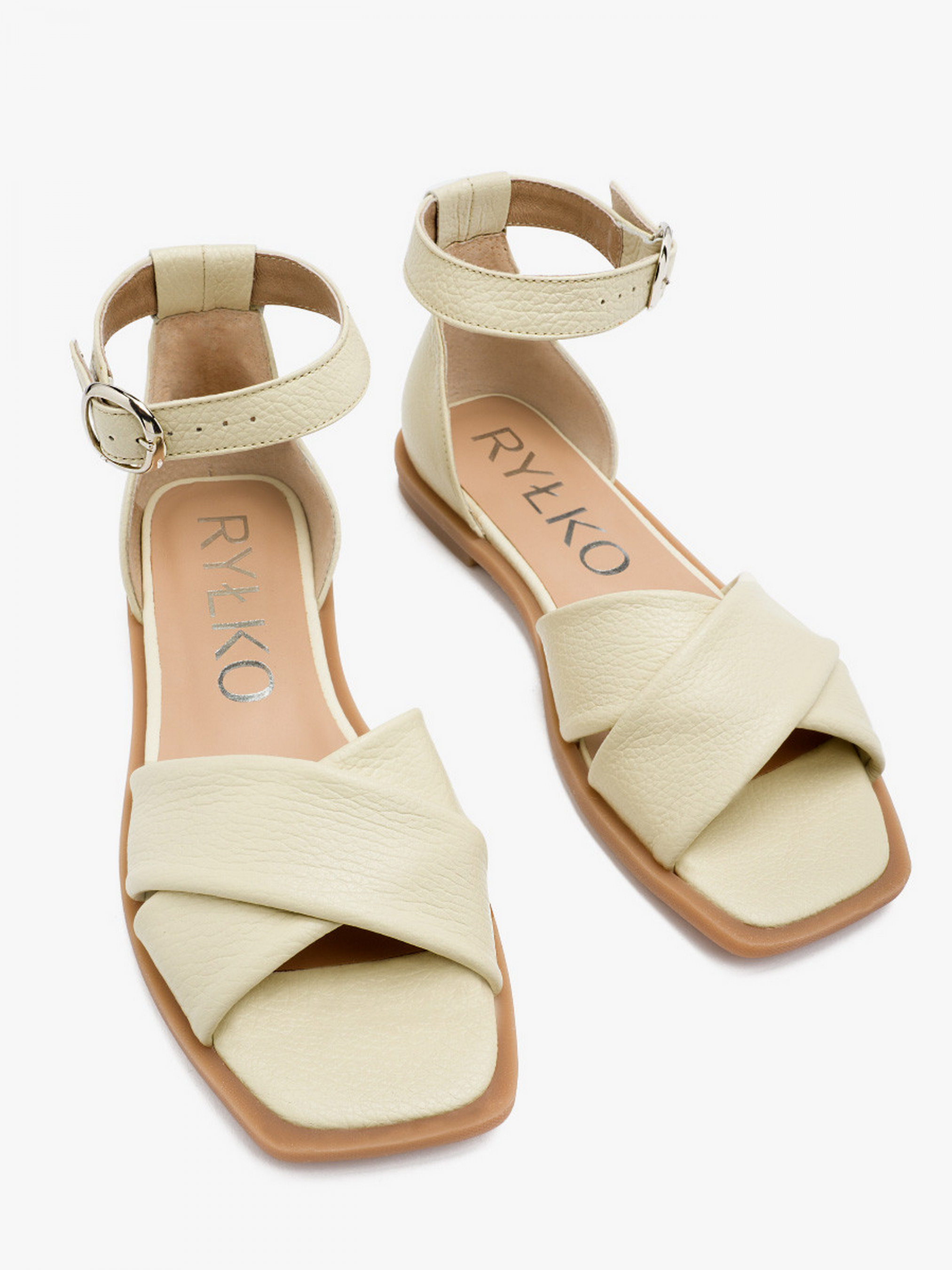 Босоножки RYLKO белого цвета, предназначены на узкую полноту стопы. На плоской подошве, с закрытой пяткой – высотой 1 см, модель изготовлена из кожи высокого качества. Состав модели - Верх: натуральная кожа/Подкладка: натуральная кожа/Стелька: натуральная кожа/Подошва: полиуретан. Размерная сетка RYLKO: EU: 35-23,3 см. 36-24 см. 36,5-24,3 см. 37-24,7 см. 37,5-25 см. 38-25,3 см. 38,5-25,7 см. 39-26 см. 39,5-26,3 см. 40-26,7 см. 40,5-27 см. 41-27,3 см. 42-28 см.