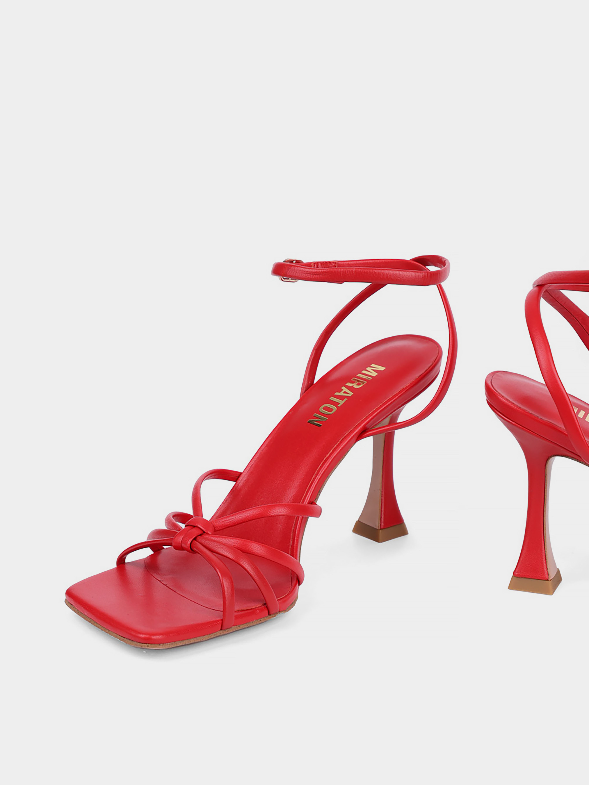 Женские босоножки MIRATON кожаные красные Материал: кожа. Подкладка: натуральная кожа. Бренд: MIRATON. Цвет: красный. Подошва: тонкая. Вид каблука: расклешенный. Высота каблука: 10. Стиль: мода. Cезон: весна-лето.