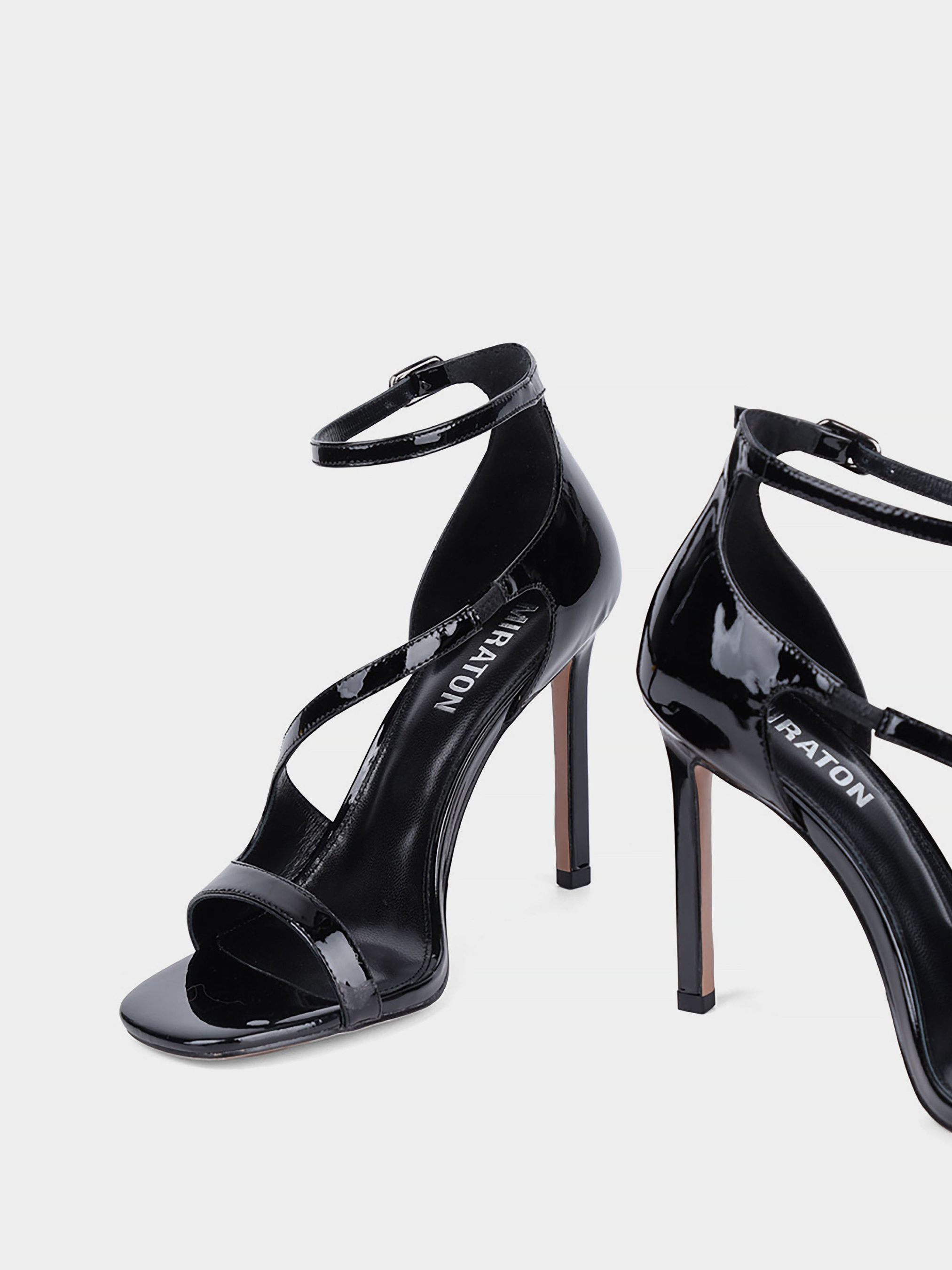 Женские босоножки MIRATON лаковые черные Материал: лаковая натуральная кожа. Подкладка: кожа. Бренд: MIRATON. Цвет: чёрный. Подошва: тонкая. Вид каблука: шпилька. Высота каблука: 11. Стиль: мода. Cезон: весна-лето.
