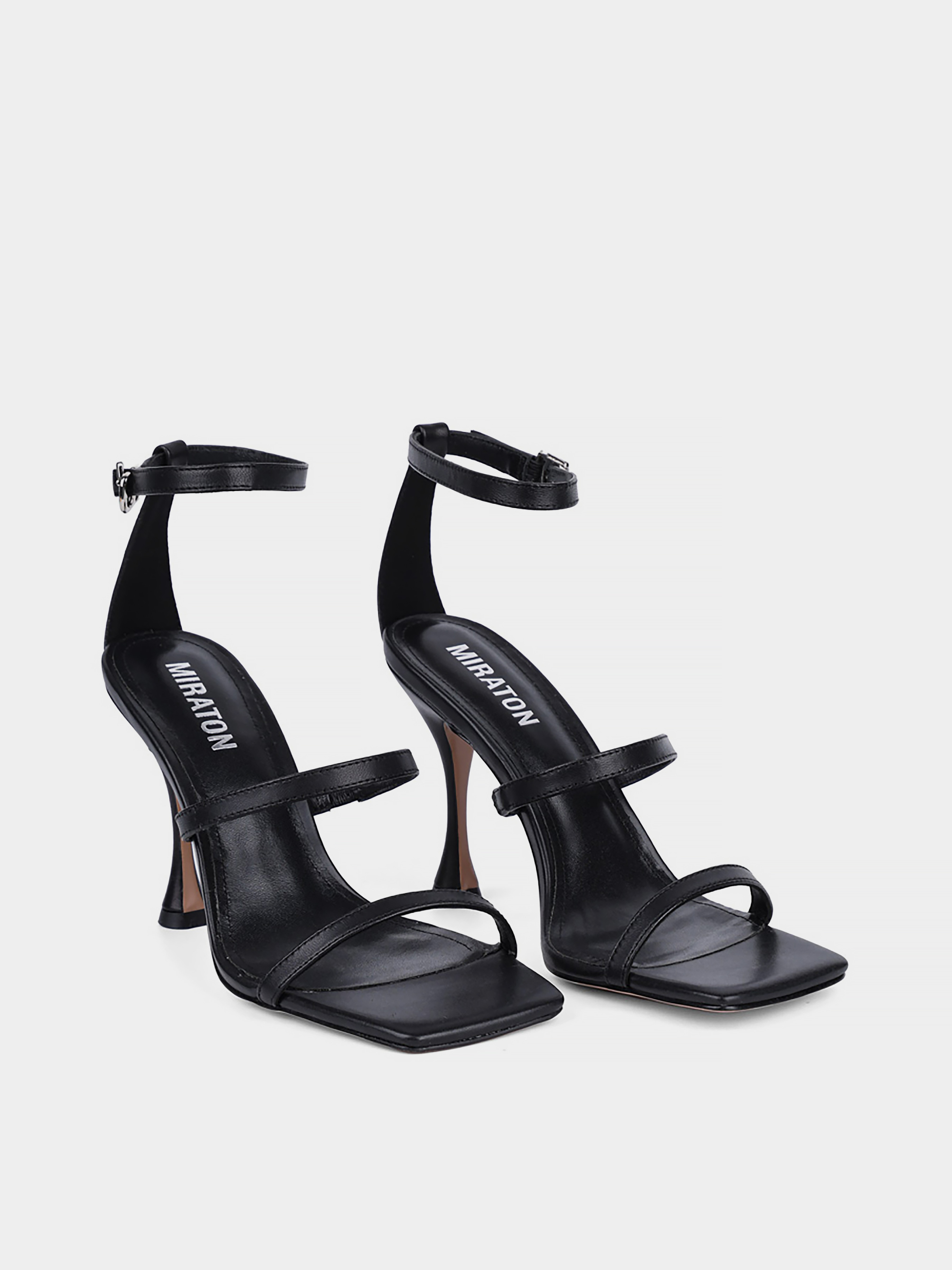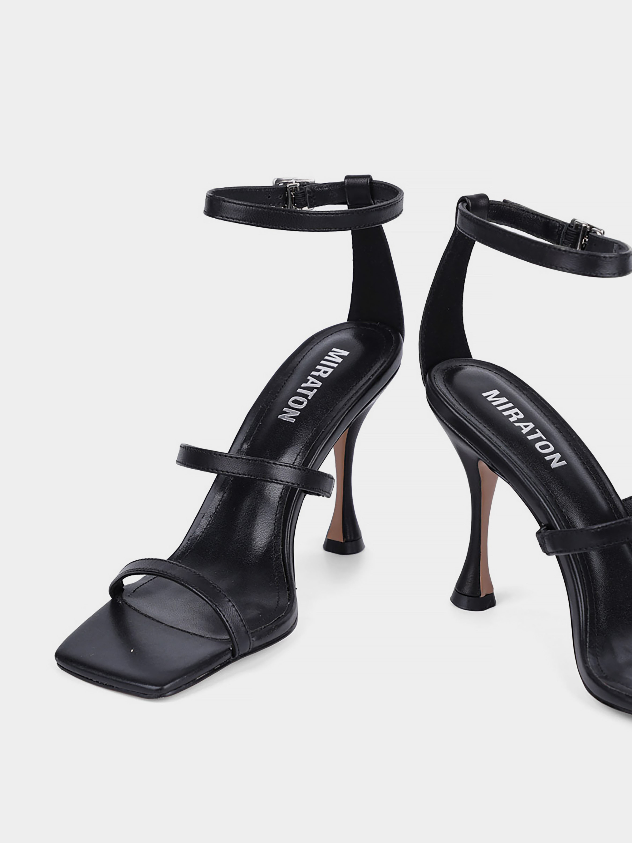 Женские босоножки MIRATON кожаные черные Материал: кожа. Подкладка: натуральная кожа. Бренд: MIRATON. Цвет: черный. Подошва: тонкая. Вид каблука: рюмочка. Высота каблука: 8. Стиль: мода. Cезон: лето.