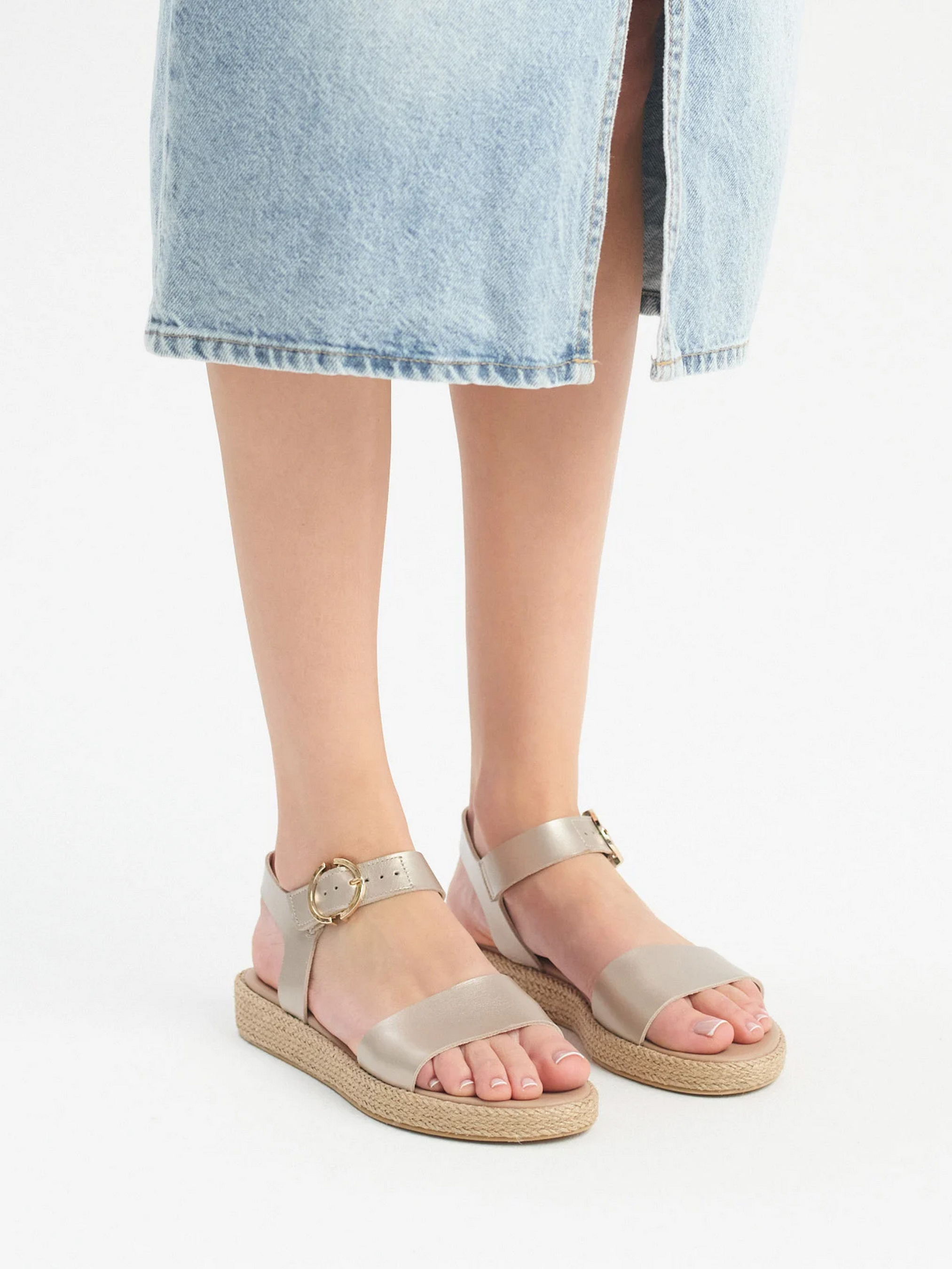 Женские кожаные босоножки платинового цвета от польского производителя RYLKO – стильный вариант для лета. Интересный низ, покрытый джутом, идеально сочетается с летними фасонами. Цвета красиво подчеркивают загоревшую кожу, а пряжка позволяет лучше прилегать модели к ноге. Золотые детали придают обуви изысканность и элегантность. Модель выполнена из натуральной кожи премиум качества, внутри – натуральная кожа. Подходит на стандартную (среднюю) полноту стопы. Чтобы правильно выбрать размер, обязательно используйте размерную сетку RYŁKO EU: 35-23,3 см; 36-24 см; 36,5-24,3 см; 37-24,7 см; 37,5-25 см; 38-25,3 см; 38,5-25,7 см; 39-26 см; 39,5-26,3 см; 40-26,7 см; 40,5-27 см; 41—27,3 см; 42-28 см.