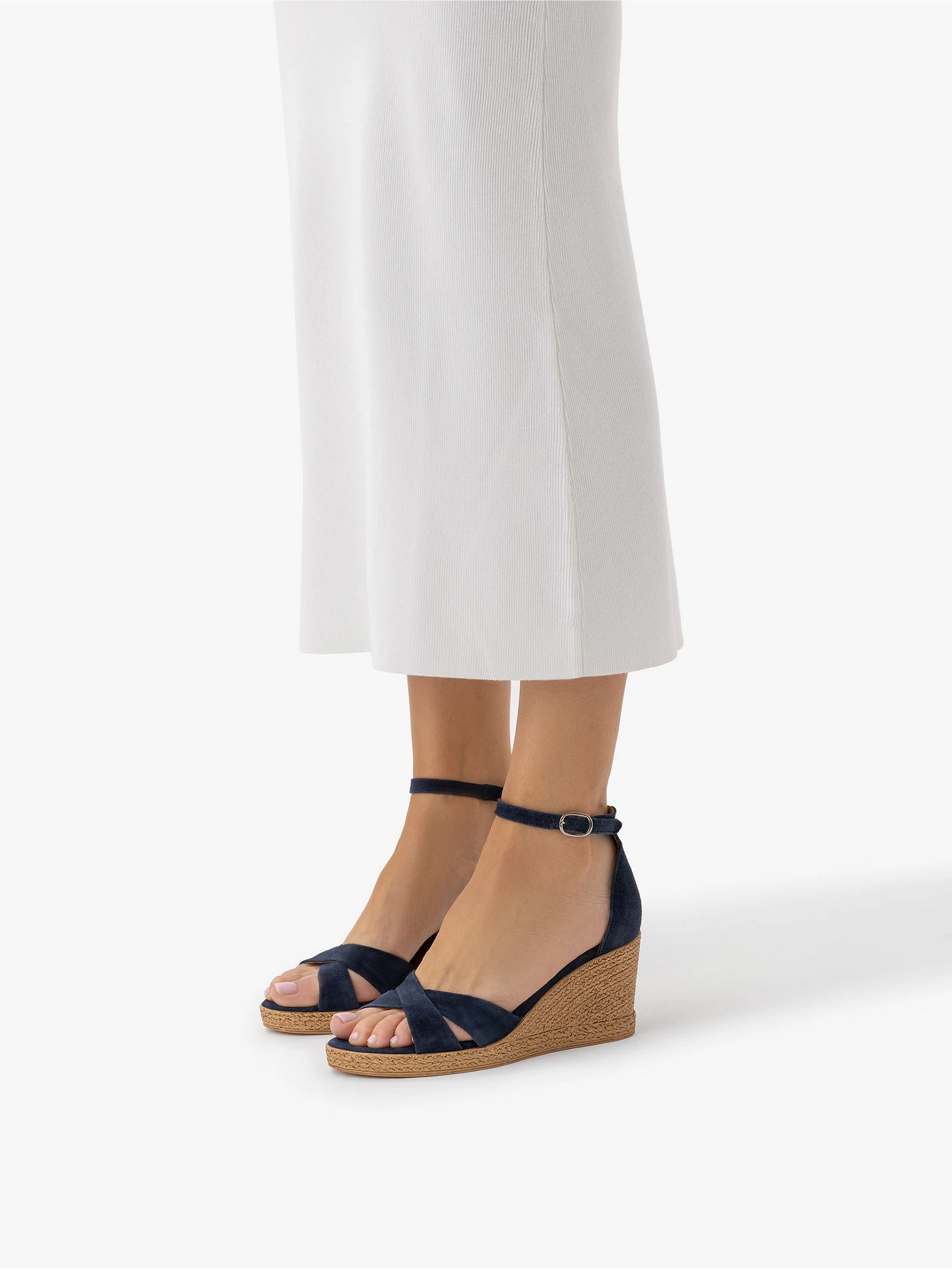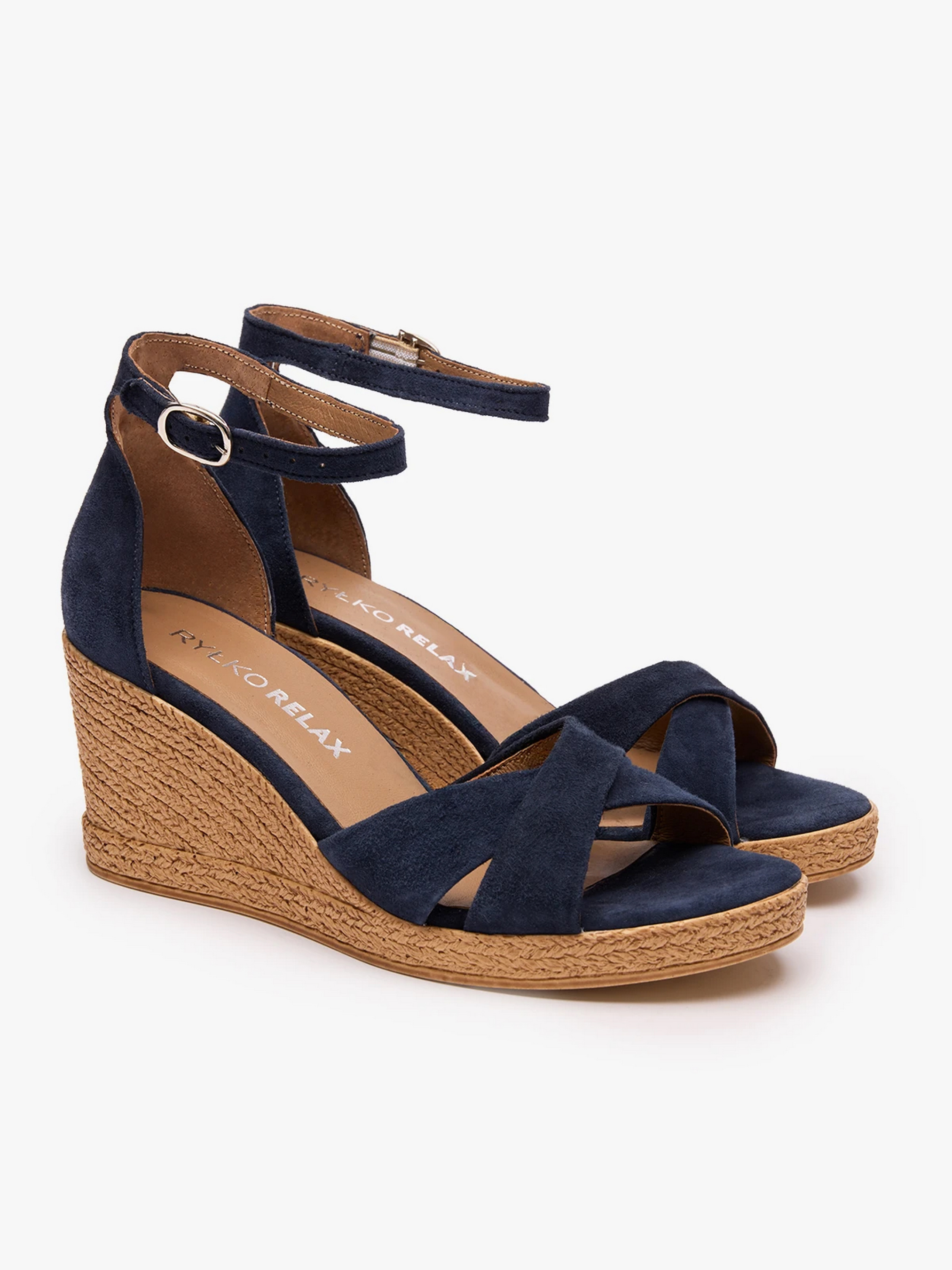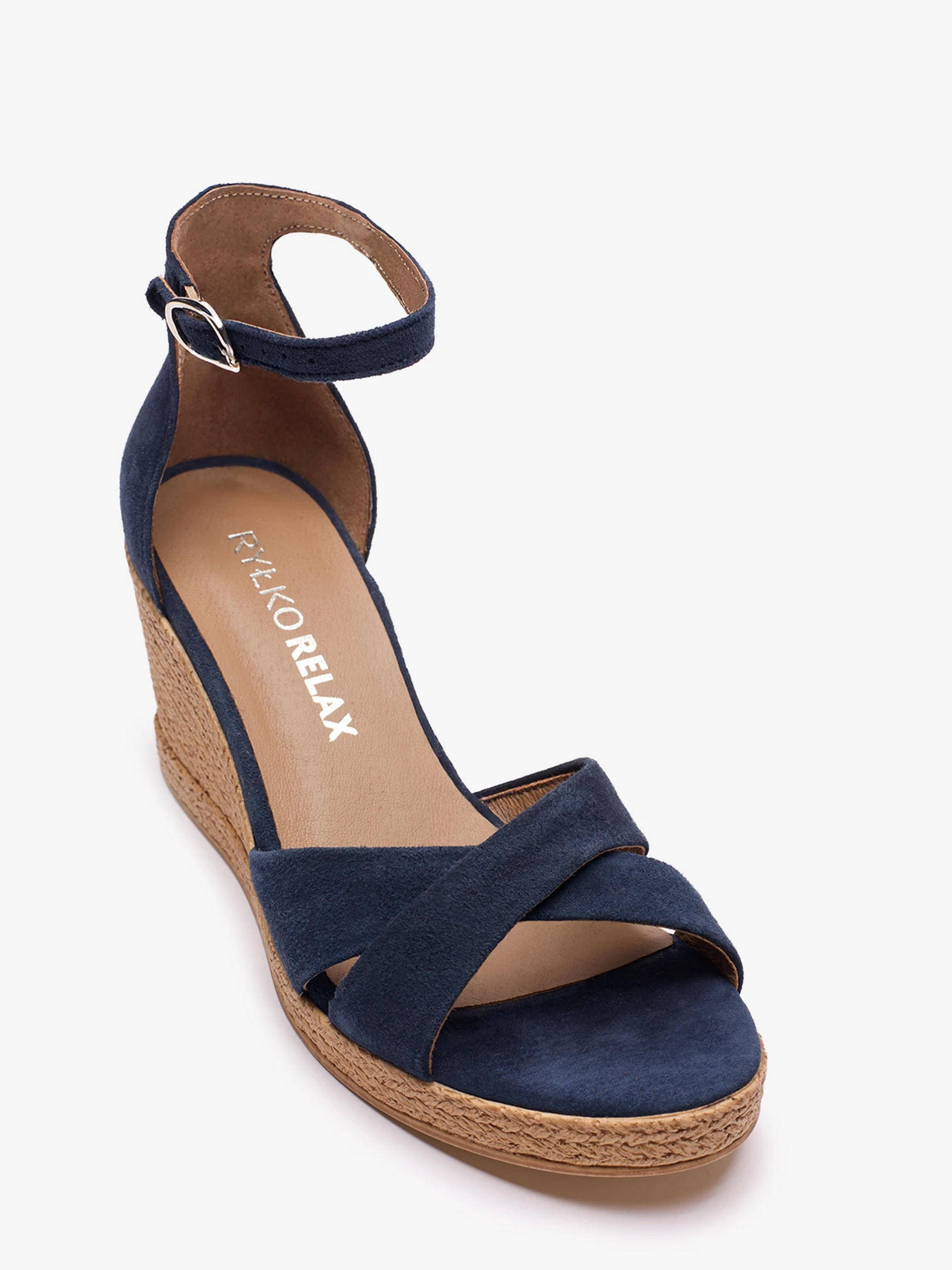Женские синие босоножки на танкетке польского бренда RYLKO серии Relax – идеальный выбор для весны и лета. Изготовлены из высококачественной натуральной замши, внутри – натуральная кожа. Высота каблука 7,5 см придает стройности силуэту. Серебристые металлические элементы придают нотку утонченной элегантности. Благодаря технологии R.SMOOTH эти босоножки обеспечивают уникальный комфорт, адаптируясь к форме вашей стопы. Застежка на пряжке обеспечивает идеальную посадку. Подходят на стандартную (среднюю) полноту стопы. Чтобы правильно выбрать размер, обязательно используйте размерную сетку RYŁKO EU: 35-23,3 см; 36-24 см; 36,5-24,3 см; 37-24,7 см; 37,5-25 см; 38-25,3 см; 38,5-25,7 см; 39-26 см; 39,5-26,3 см; 40-26,7 см; 40,5-27 см; 41—27,3 см; 42-28 см.