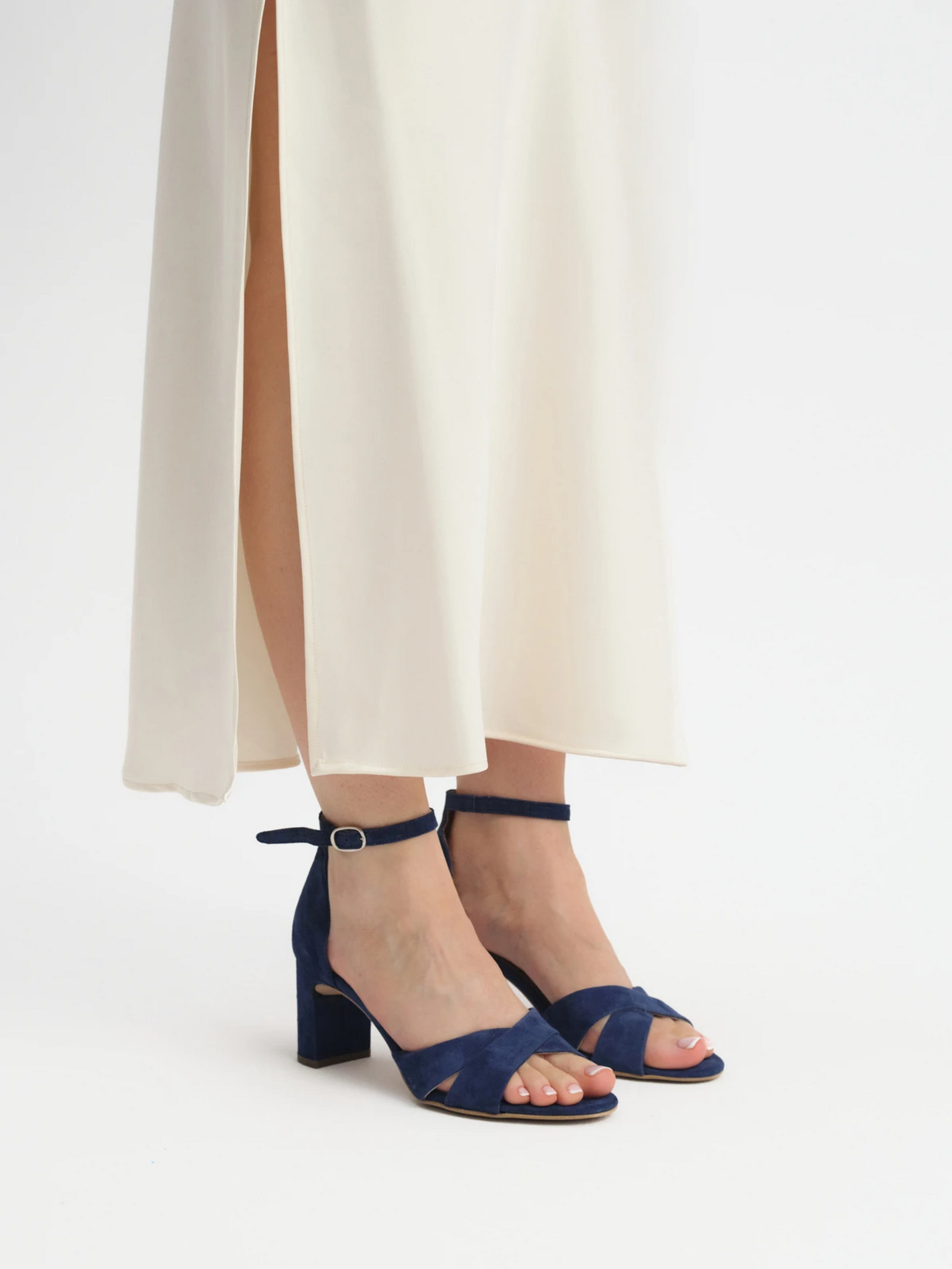 Синие женские босоножки с закрытой пяткой польского производителя RYLKO идеально подходят для теплых дней. Изготовлены из натуральной замши премиум качества. Внутри – натуральная кожа. Каблук, обтянутый замшей, высотой 6,5 см обеспечивает устойчивость и элегантность. Босоножки оснащены технологией R.SILENCE – это приглушение ударов каблука, достигнутое благодаря применению технологически новой набойки, гасящей вибрации при ходьбе. Застежка на пряжке обеспечивает идеальную посадку. Подходят на стандартную (среднюю) полноту стопы. Чтобы правильно выбрать размер, обязательно используйте размерную сетку RYŁKO EU: 35-23,3 см; 36-24 см; 36,5-24,3 см; 37-24,7 см; 37,5-25 см; 38-25,3 см; 38,5-25,7 см; 39-26 см; 39,5-26,3 см; 40-26,7 см; 40,5-27 см; 41—27,3 см; 42-28 см.