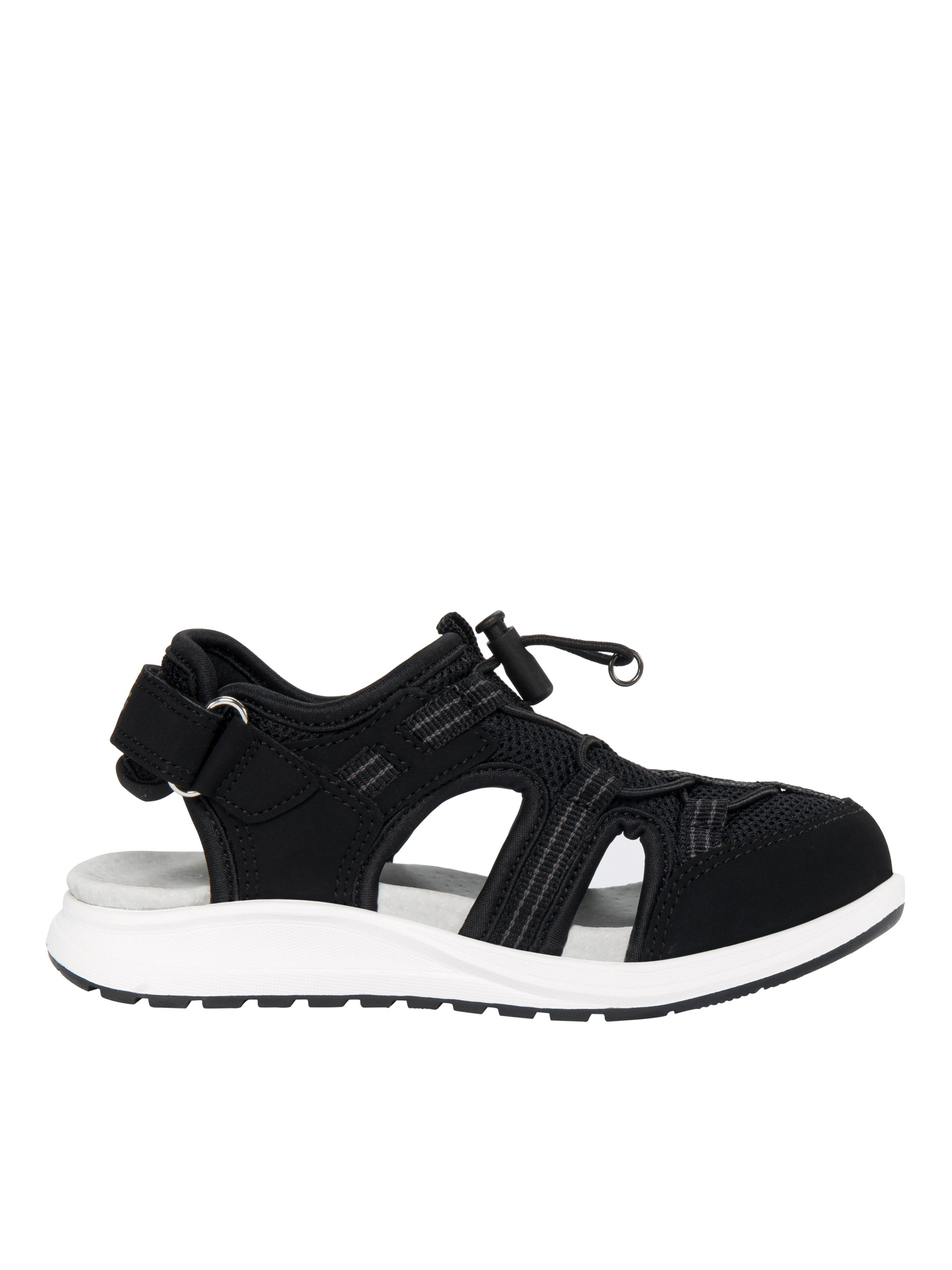 Спортивные сандалии Viking "Thrill Sandal 1V SL Black".Особенности: изготовлены из дышащего текстиля; усиленный мысок обеспечивает безопасность пальчиков при ударах; стелька из замши хорошо отводит влагу и помогает от опрелости в жаркие дни; подошва из EVA* и натуральной резины мягко амортизирует и поглощает часть ударной нагрузки, приходящуюся на стопы; застежка-липучка и эластичный шнурок – для быстрого одевания/съемки и регулировки посадки; легкие и гибкие – не ограничивают движений; разрешена стирка в стиральной машине при температуре не выше 30°C. *EVA (ЕВА, полимерный материал) – экологически чистый высокоэффективный вспененный каучук. Износостойкий, легкий и гибкий.