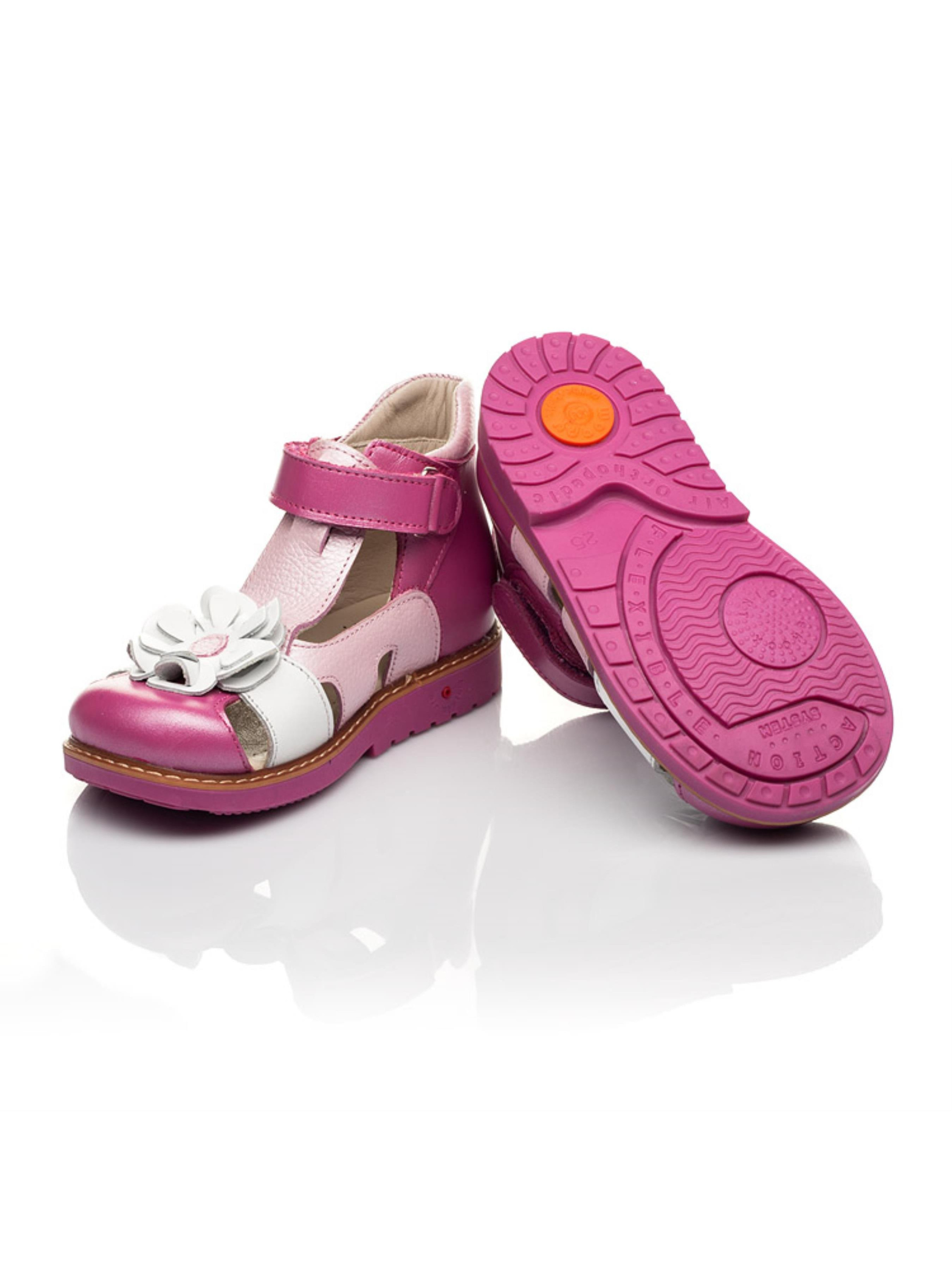 Невероятные детские босоножки для девочки от бренда Woopy созданные с заботой о самых дорогих ножках Вашей девочки. Детские босоножки для девочки созданные из натуральной кожи в сочетании трех цветов: малинового, нежного розового и белого. Благодаря такому сочетанию цветов эта модель босоножек стала изюминкой летней коллекции. С заботой о правильном формировании детских стоп, босоножки имеют жосткий задник, каблук Томаса, супинатор и анатомически правильную стельку. Элементом декора и изюминкой этой пары босоножек выступает цветочек, украшающий носовую часть босоножек. Удобство и скорость обувания обеспечит застежка-липучка. Такая модель босоножек создана таким образом, чтобы обеспечить комфорт детским стопам в жаркое время года.