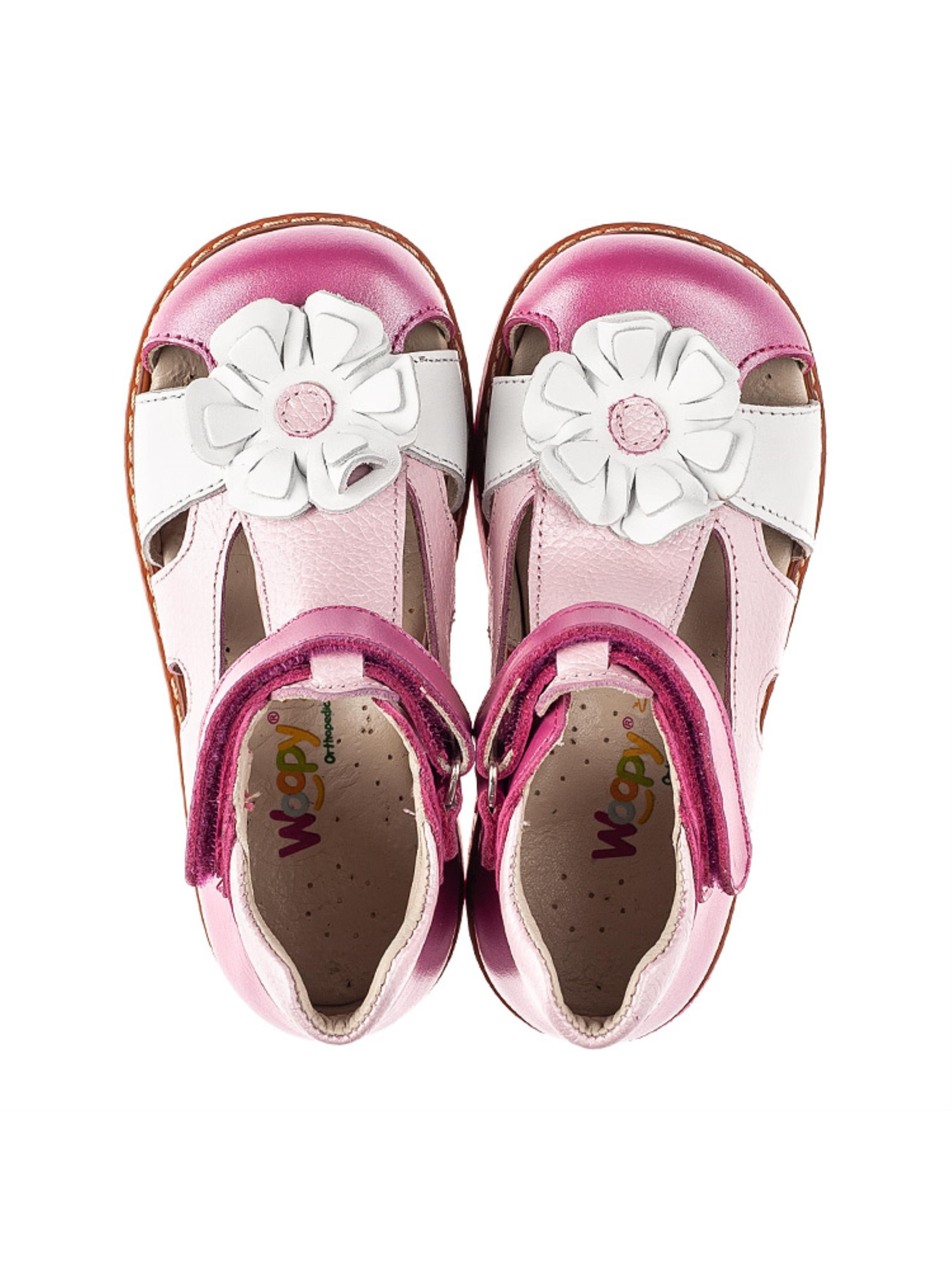 Woopy Orthopedic представлен коллекцией босоножек, туфель, ортопедических босоножек/туфель с высоким берцем, демисезонных и зимних ботинок, которые обеспечивают профилактику и лечение плосковальгусной деформации стопы и имеют важные ортопедические элементы детской обуви: каблук Томаса, жесткий задник, супинатор и анатомически правильную стельку.