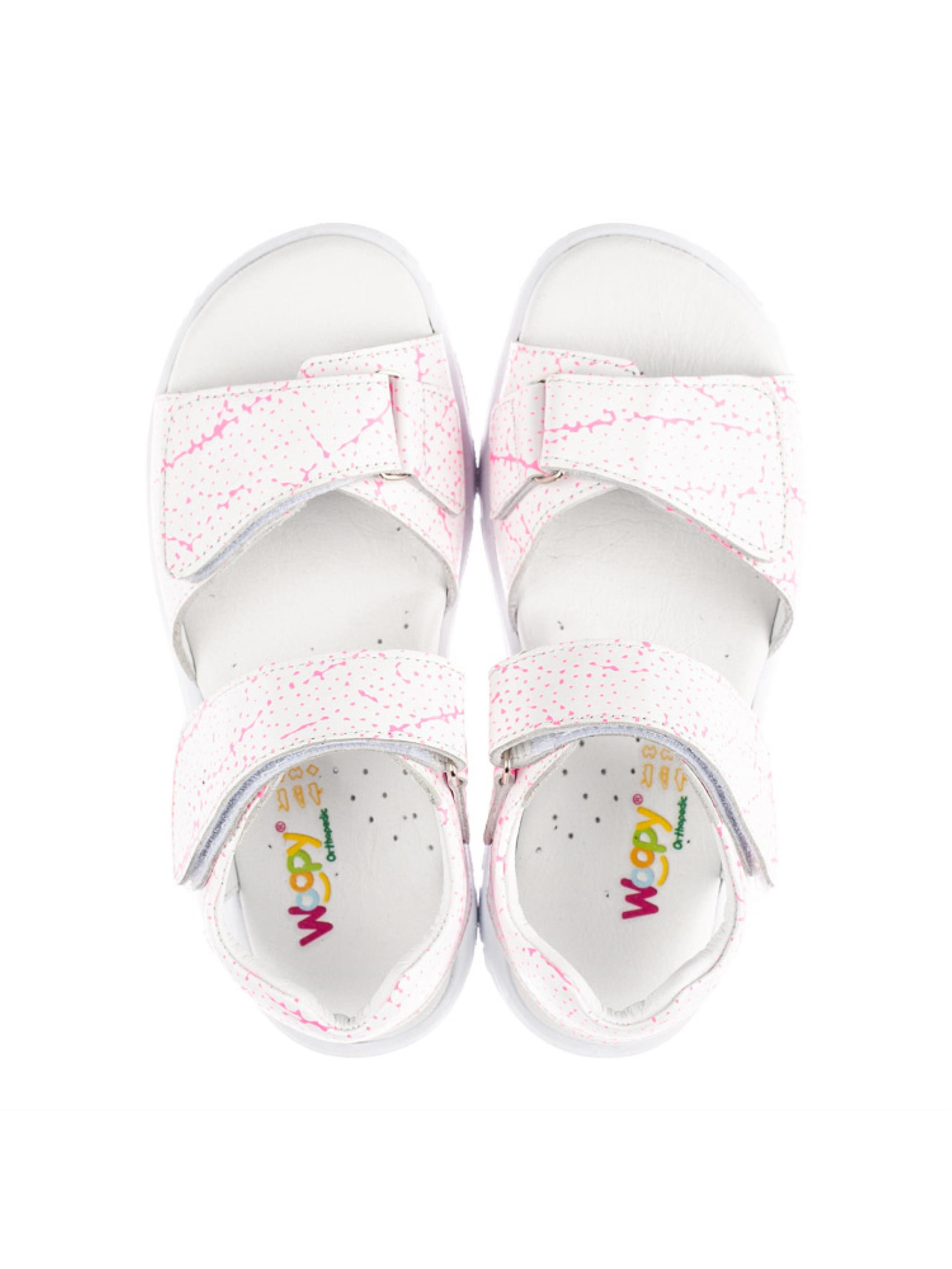 Woopy Orthopedic представлен коллекцией босоножек, туфель, ортопедических босоножек/туфель с высоким берцем, демисезонных и зимних ботинок, которые обеспечивают профилактику и лечение плосковальгусной деформации стопы и имеют важные ортопедические элементы детской обуви: каблук Томаса, жесткий задник, супинатор и анатомически правильную стельку.