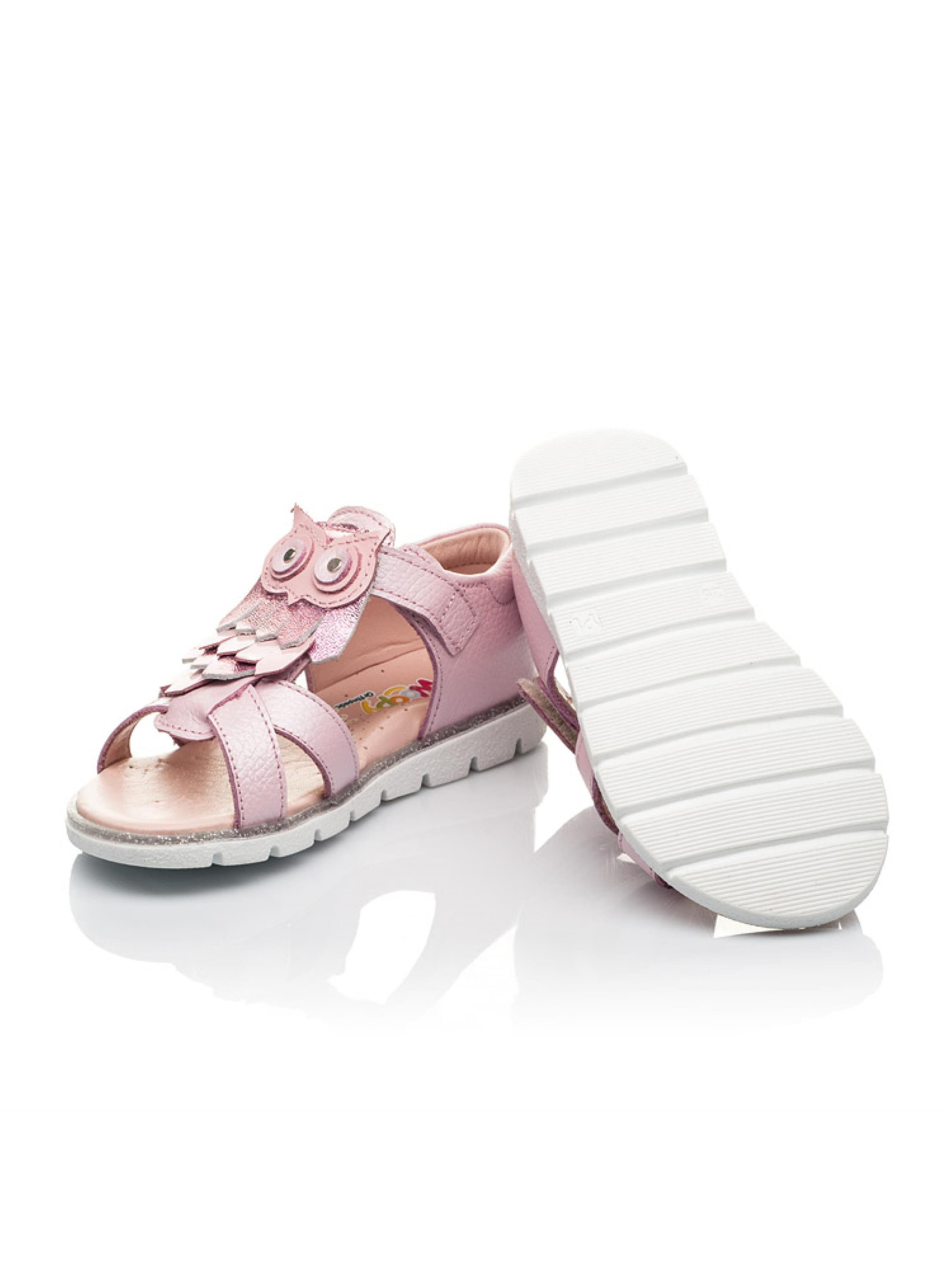 Не хватает нежности в образе? Выбирайте такую изящную модель босоножек для девочки чтобы она чувствовала себя маленькой принцессой. Детские босоножки из натуральной кожи нежного розового цвета с легкостью дополнят образ Вашей девочки. Жесткий задник, супинатор и анатомическая стелька обеспечат комфорт и легкость в прогулках. Такая модель босоножек на лето станет прекрасным выбором обуви как на каждый день, так и на праздник. Милое изображение совят дополняет эту пару изысканных босоножек. Чтобы Вашей девочке было просто и быстро обуться, в этой паре босоножек в качестве застежки используется липучка. С такой парой Вы сможете создать лаконичный и завершенный летний образ.