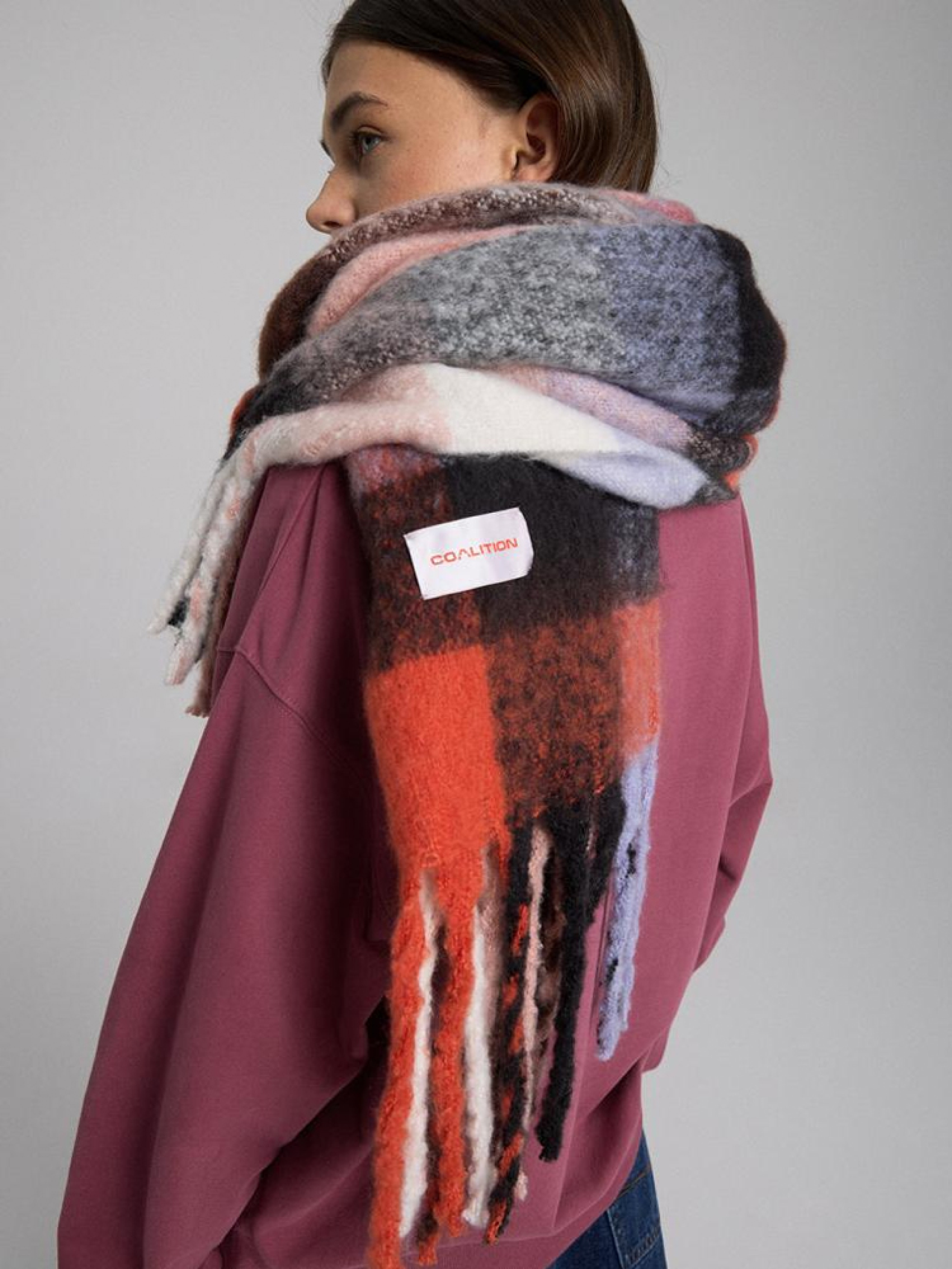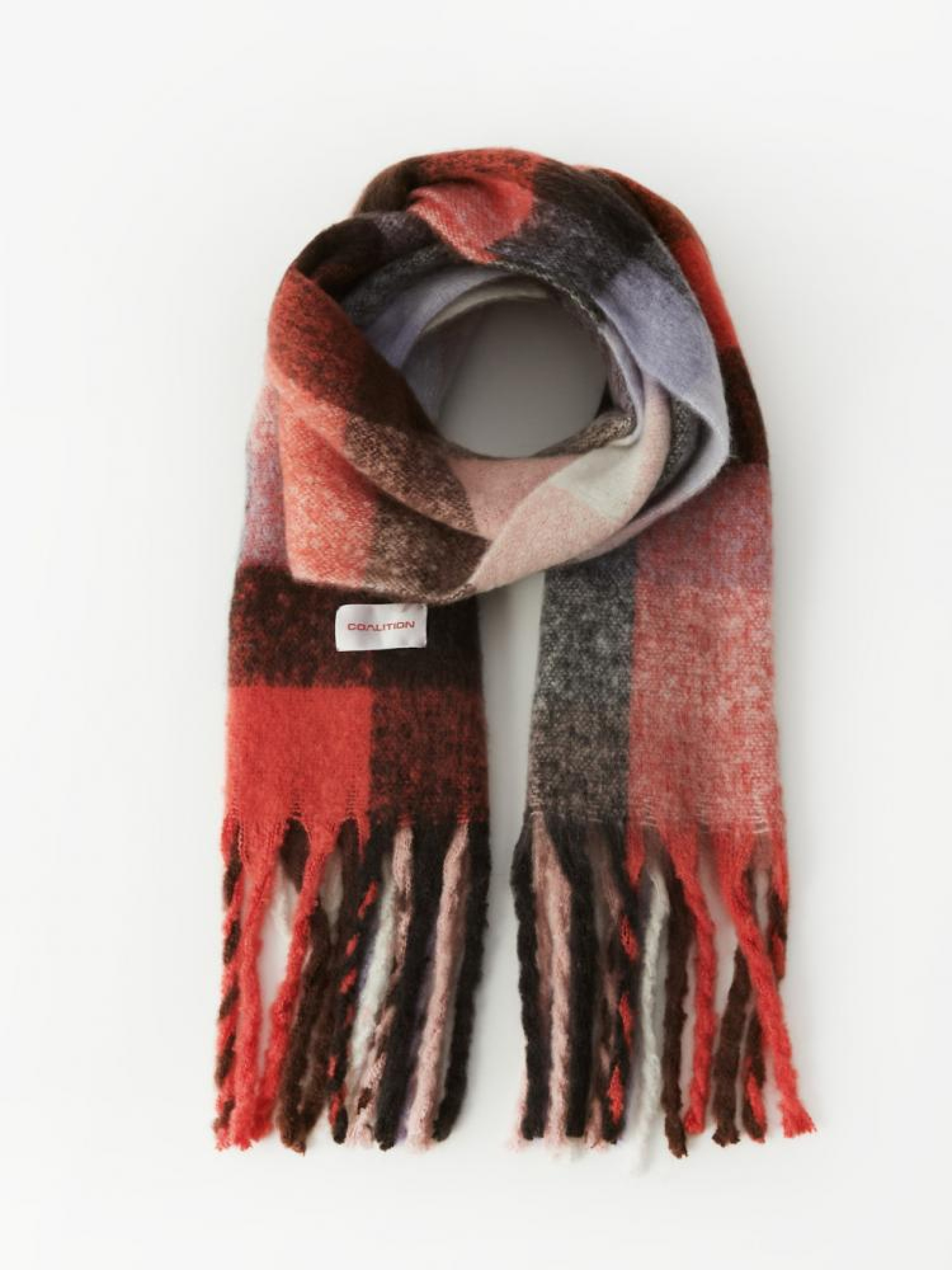 Шарф CLTN COSMI 10045856 Теплый цветной шарф с бахромой. Он имеет соответствующую этикетку из коллекции Coalition. Сезон: осень/зима 2024 Состав: 100% полиэстер