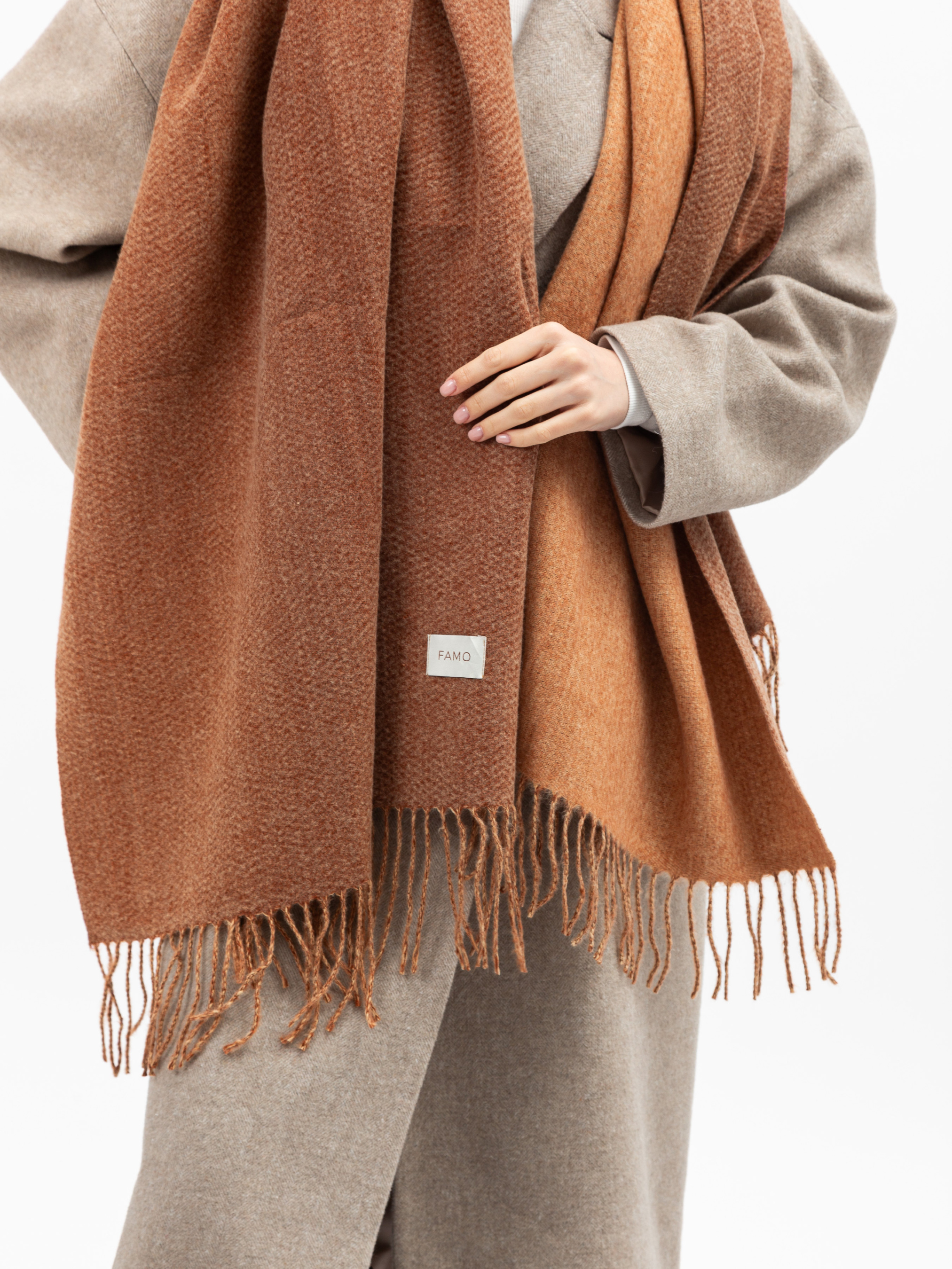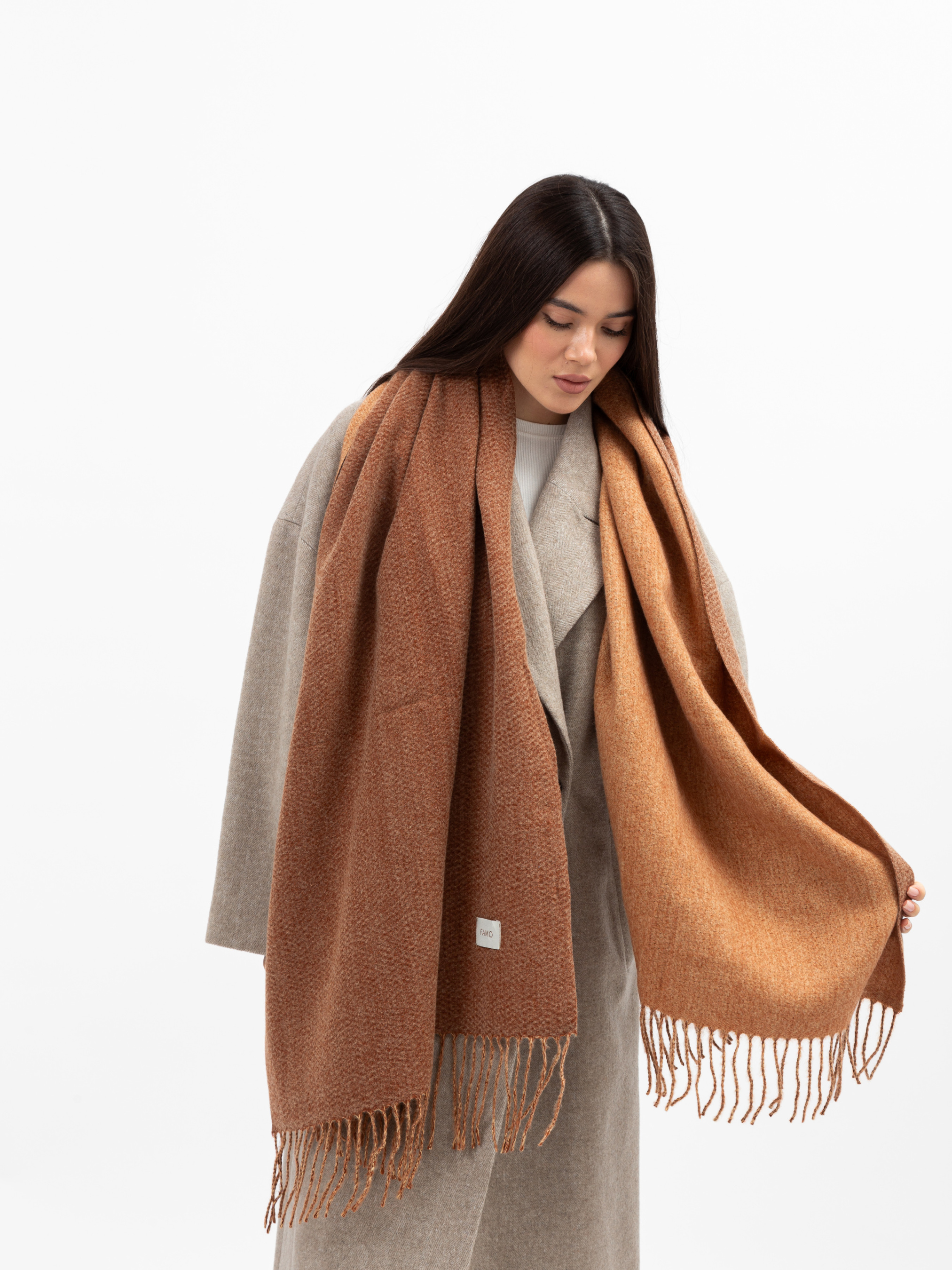 М’який довгий шарф з кашеміру, який стане вашим надійним помічником у прохолодну погоду. Шарф виготовлений з якісного кашеміру. Тканина з кашеміру дуже ніжна та м’яка, вона чудово зігріває, прекрасно тримає форму та не розтягується. Кашемірові волокна менш схильні до утворювання ковтунців і при правильному догляді довго зберігають свій привабливий вигляд. Розмір та особливості моделіРозмір шарфа: 180*65 Довгий шарф з бахромою представлений у класичних варіантах дизайну.Носити цю модель можна різними способами: накинути на плечі поверх куртки, обмотати шию чи зав’язати легкий вузол. Як доглядати• Прати вручну у прохолодній воді (при температурі вище 20°С тканина може втратити свою форму та сісти)• Використовувати рідкі пральні засоби для вовни та кашеміру• Не сушити в сушарці чи під прямими сонячними променями• Не прасувати Замовляйте цей теплий шарф на нашому сайті зі швидкою та зручною доставкою. А для завершення затишного образу ви також можете придбати шапку та рукавички у магазинах Famo.
