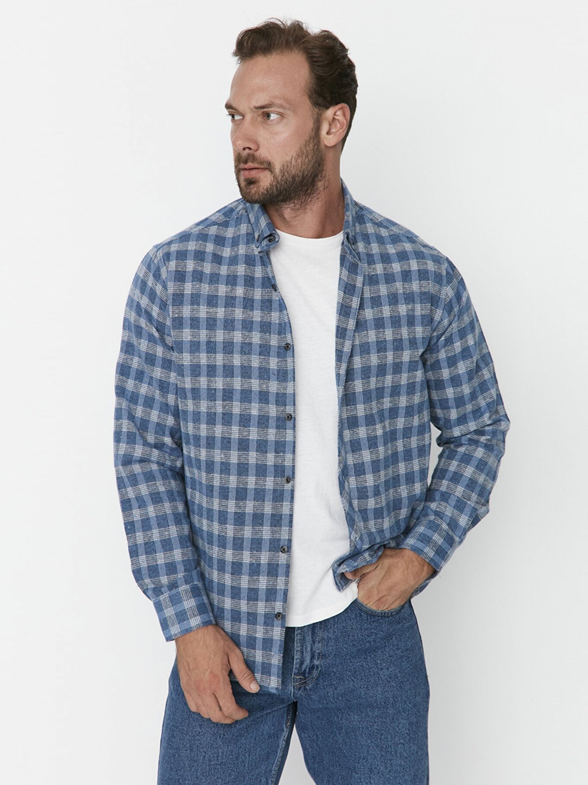 Рубашка повседневная Trendyol модель TMNAW23GO00174/Mavi